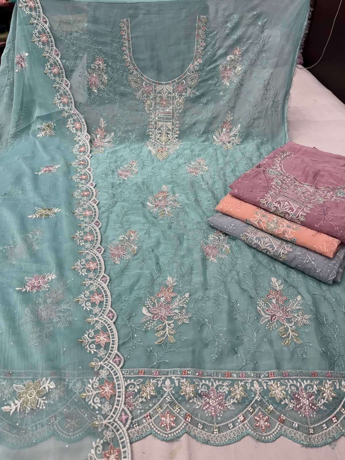 pr gloss organza chiffon 8 colour matching fancy salwar suit online
