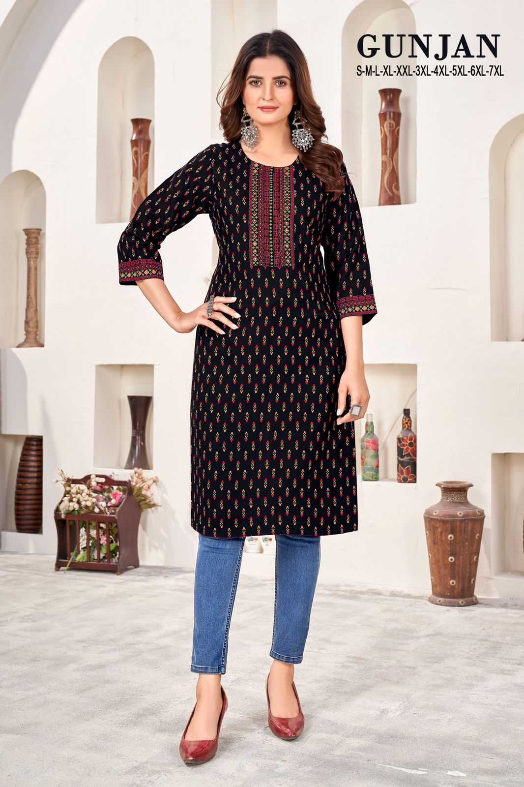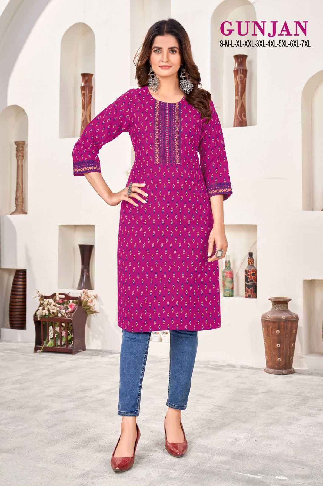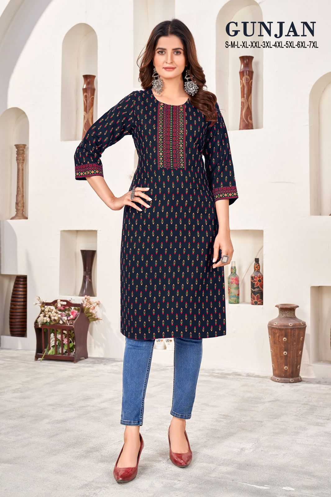 pr gunjan stitched fancy rayon straight kurti in plus sizes