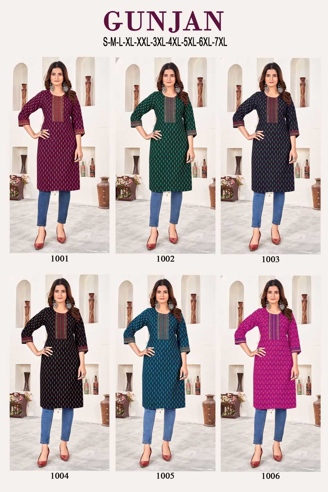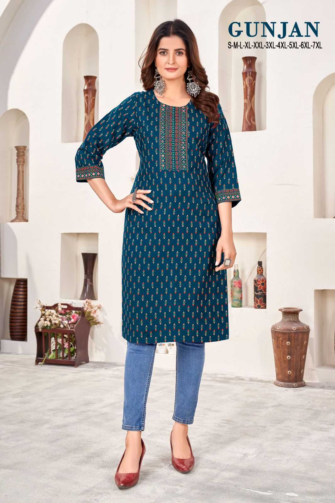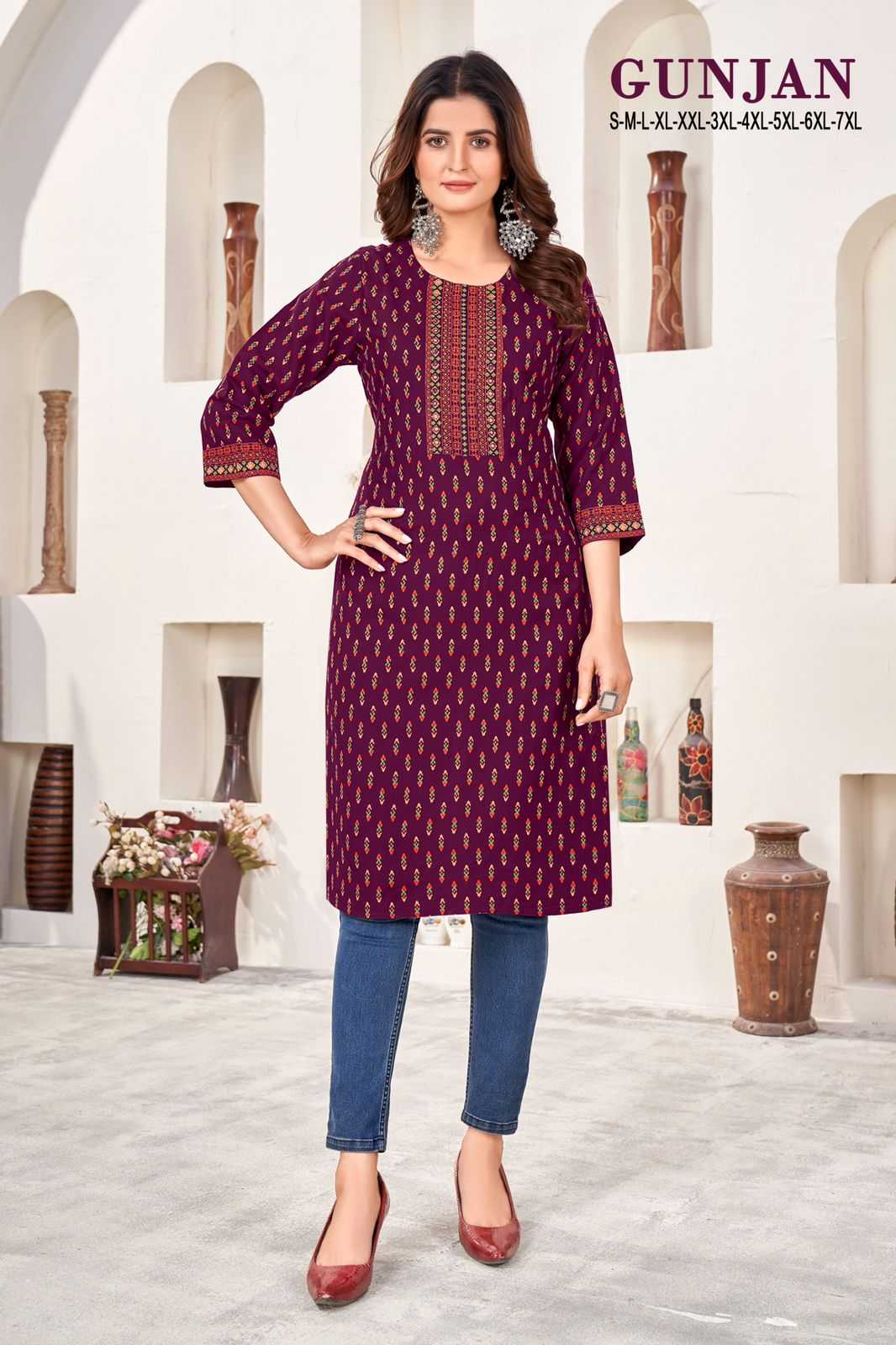 pr gunjan stitched fancy rayon straight kurti in plus sizes
