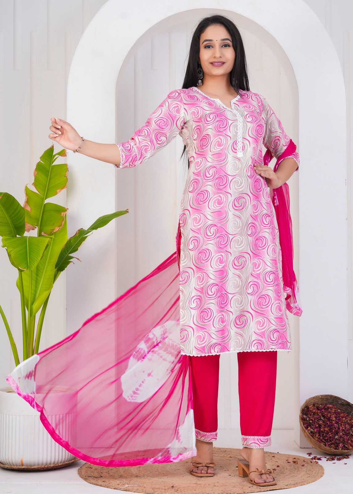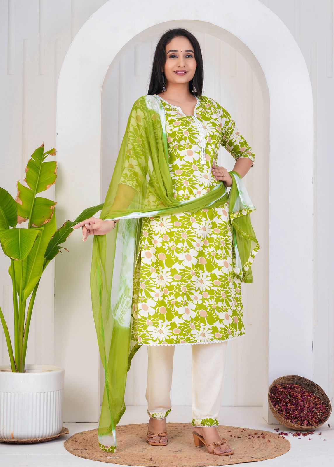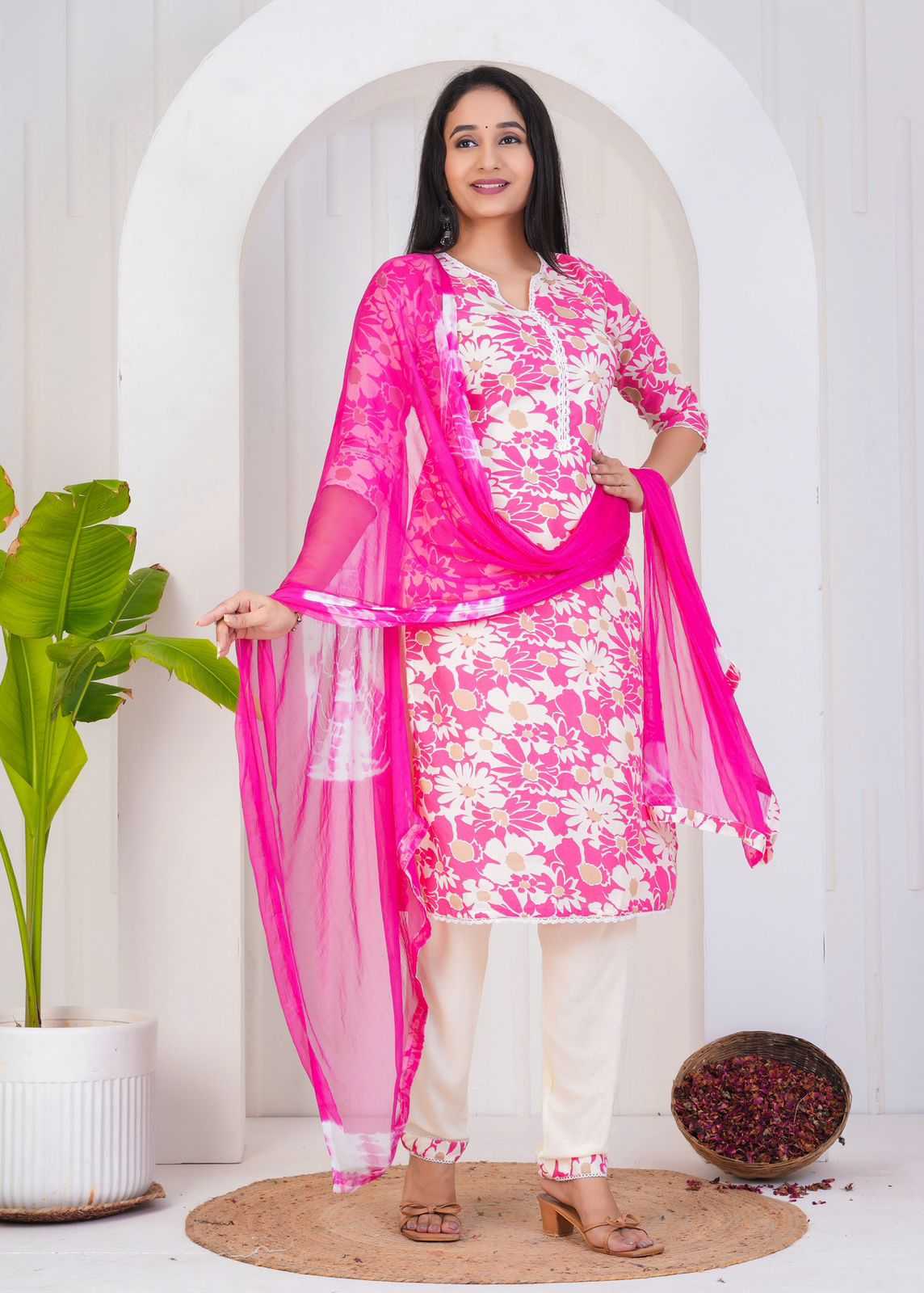pr heritage slub cotton hit design readymade combo set plus size 3pcs dress