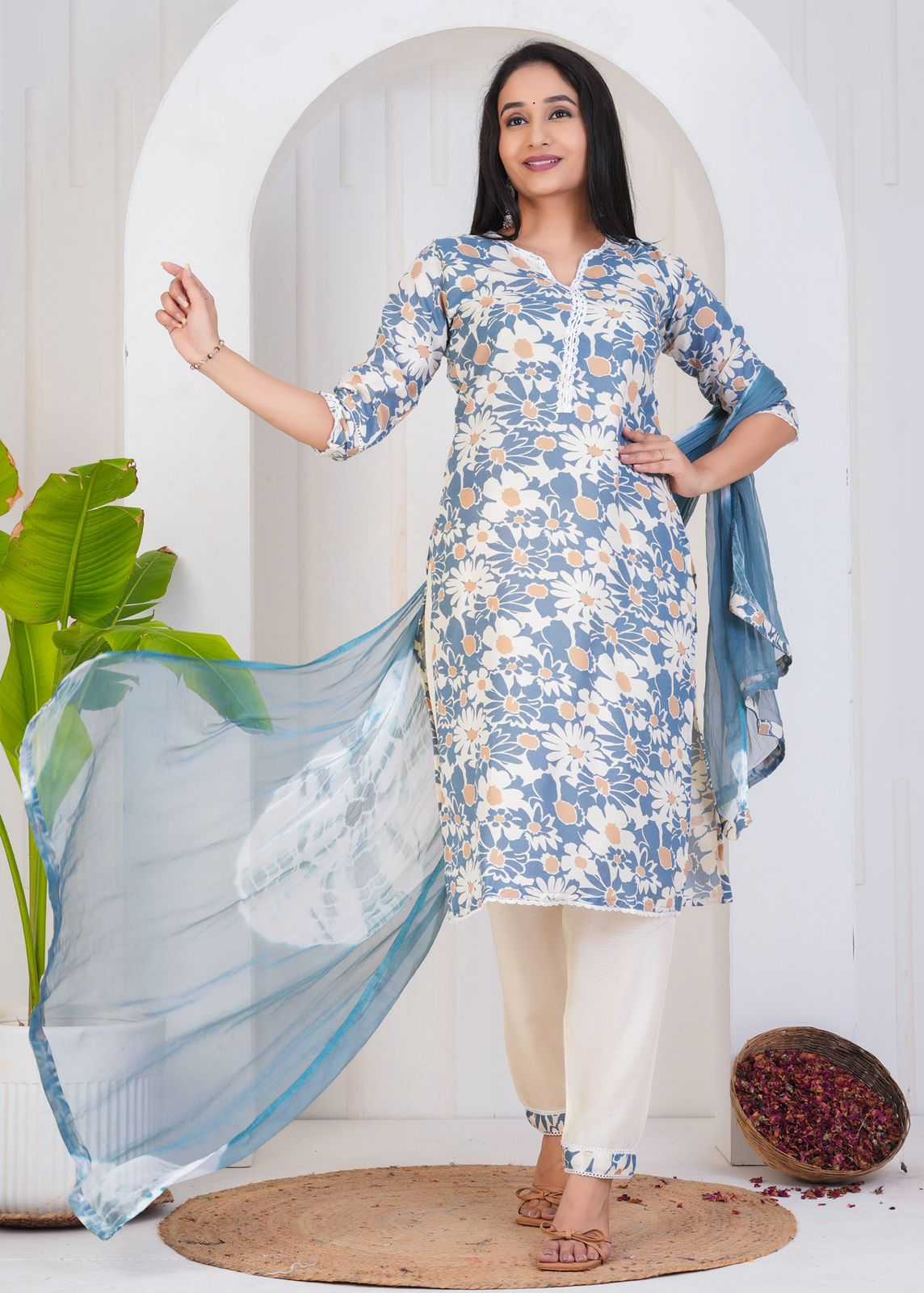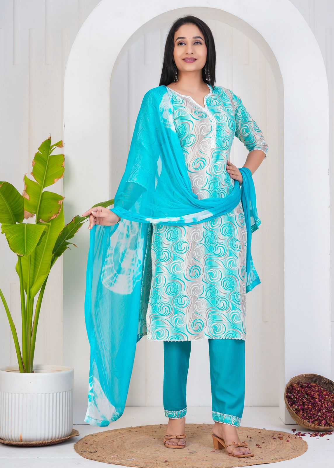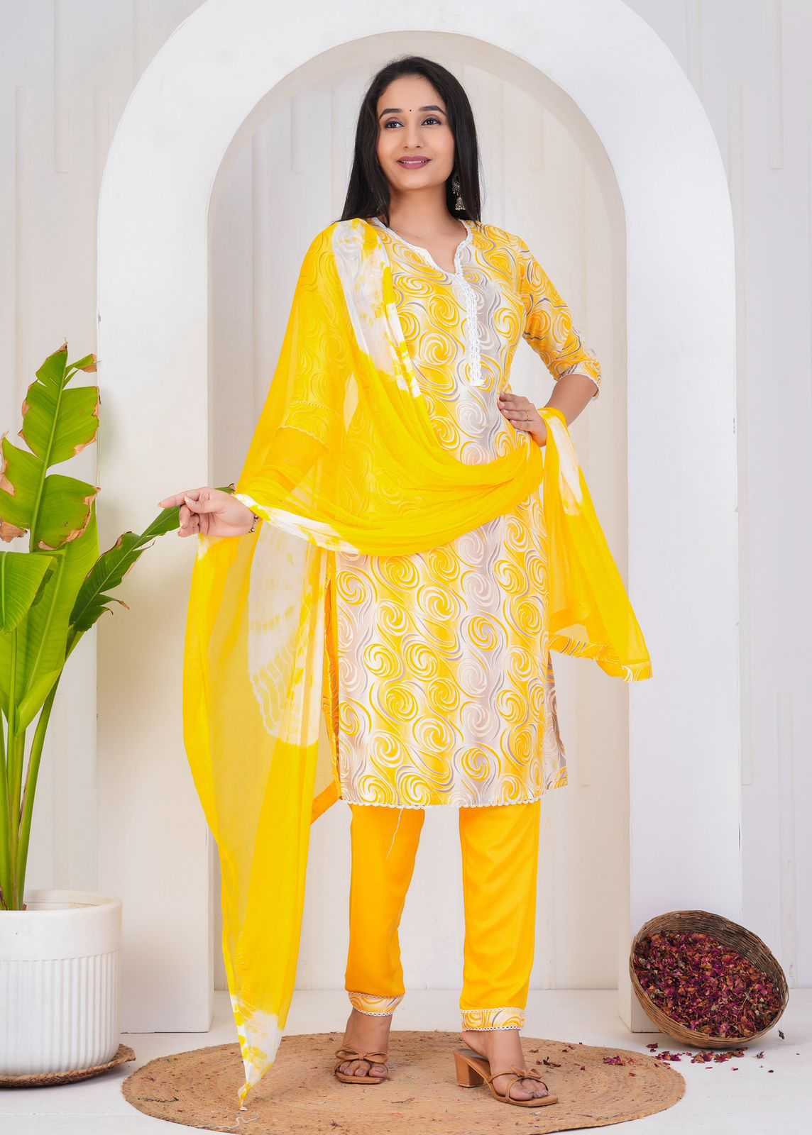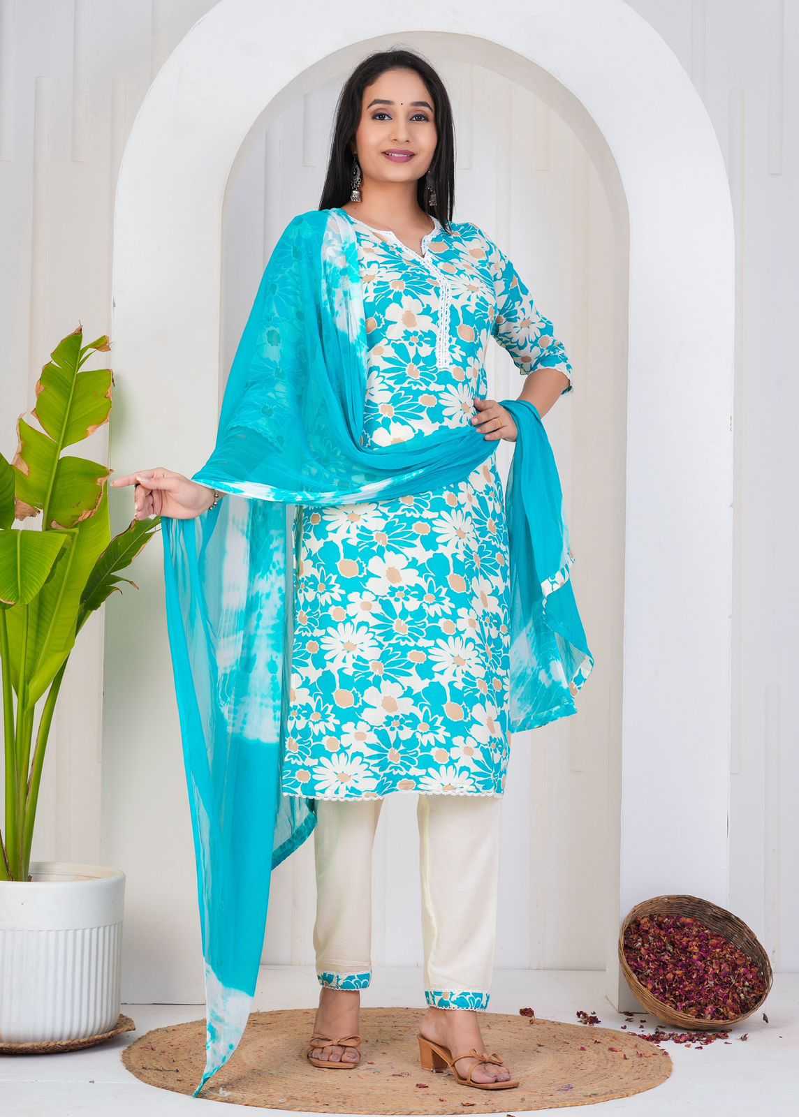 pr heritage slub cotton hit design readymade combo set plus size 3pcs dress