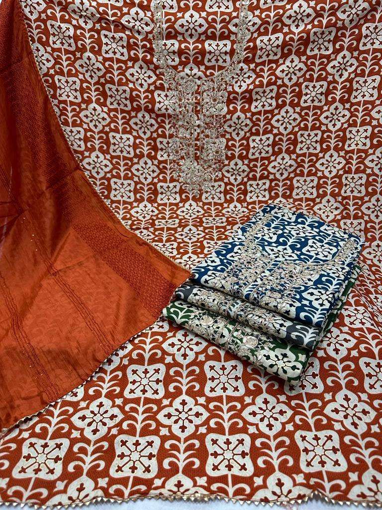 pr hotstar series foil print fancy neck work salwar kameez materials