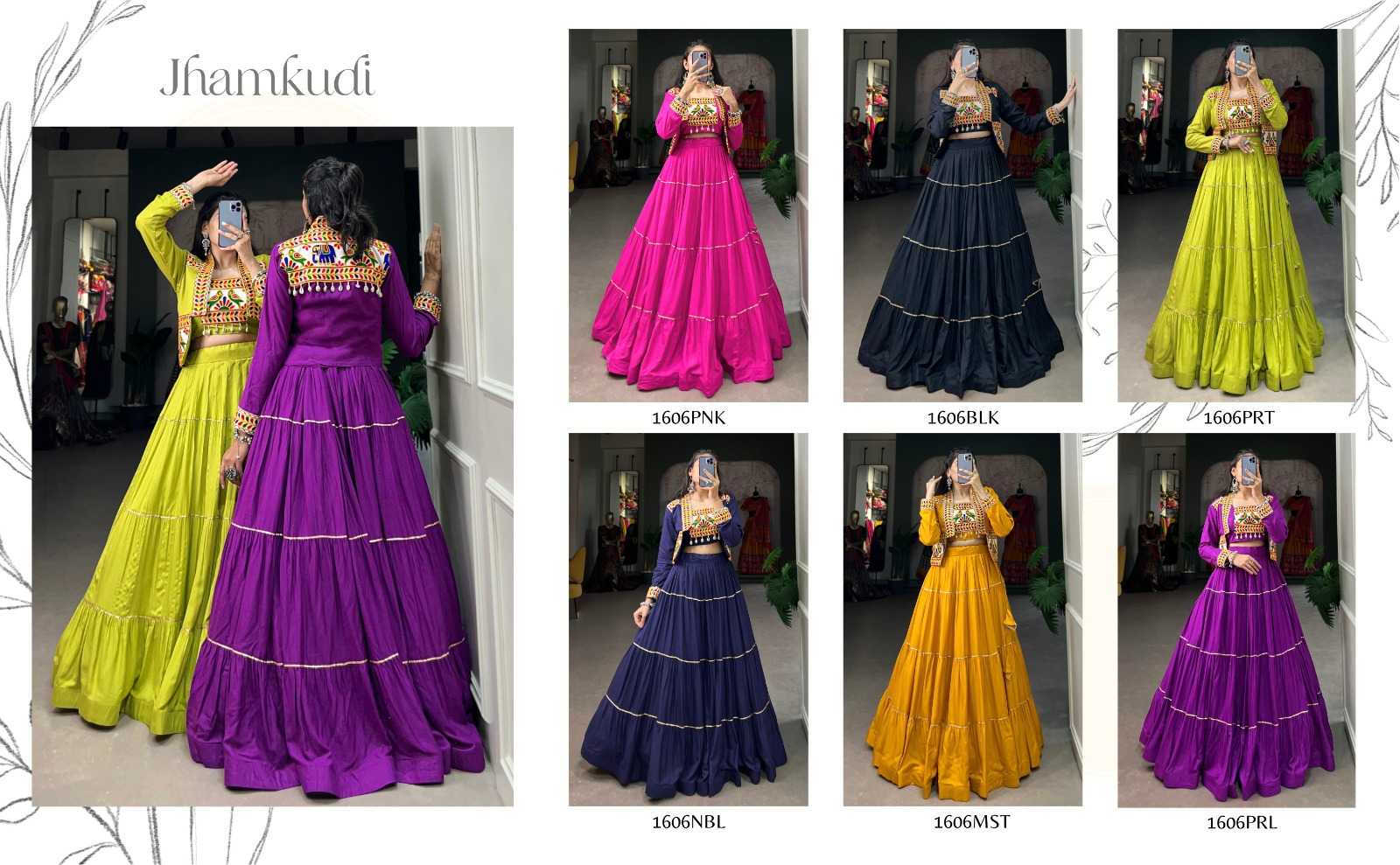 pr jhamkudi navratri style designer rayon gota patti work fully stitch lehenga choli
