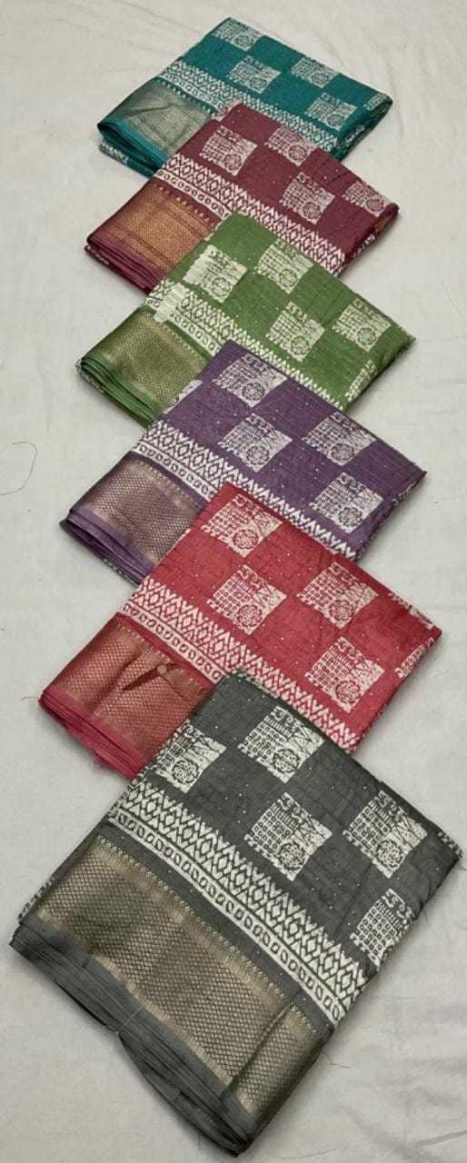 SOFT FABRIC DOLA WITH CROCHEK WORK FANCY SAREE DISGIN KALAMKARI 585/- |