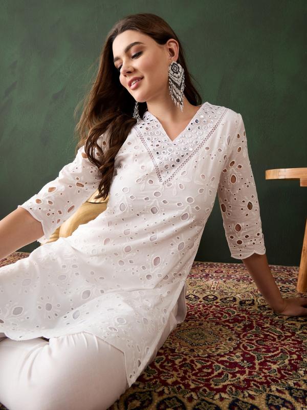 Catalog Name :- Kasturi Fabric Top :- Cotton Fabric Shiffli work With Artificial Mirror Work Neck Line Bottom : Cotton Fabric Inner: Pc Cotton Size : Rate :1195/- +12 %GST Readymade collections SET & SINGLE PIECE AVAILABLE |