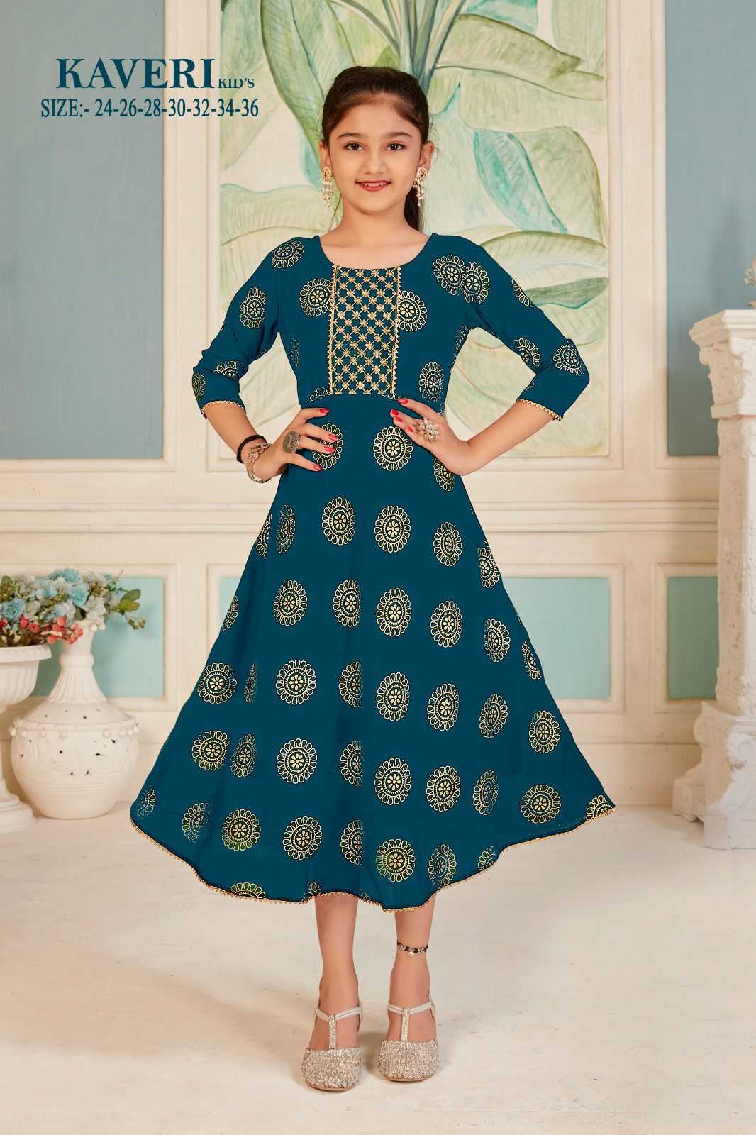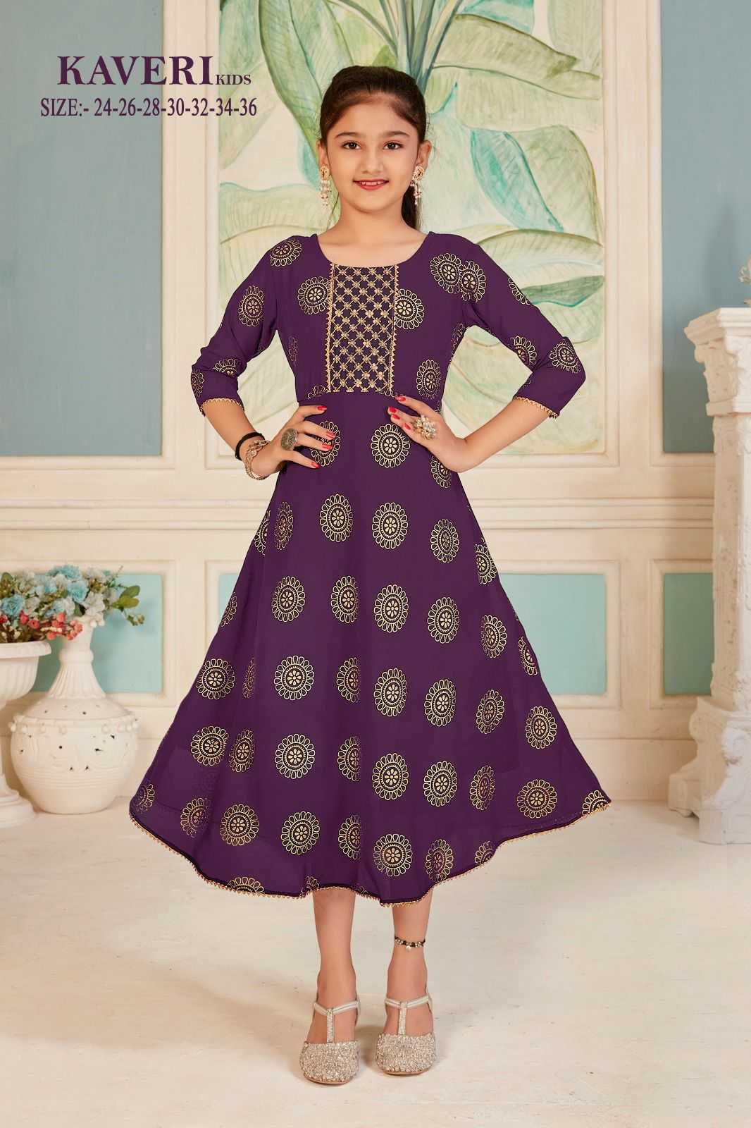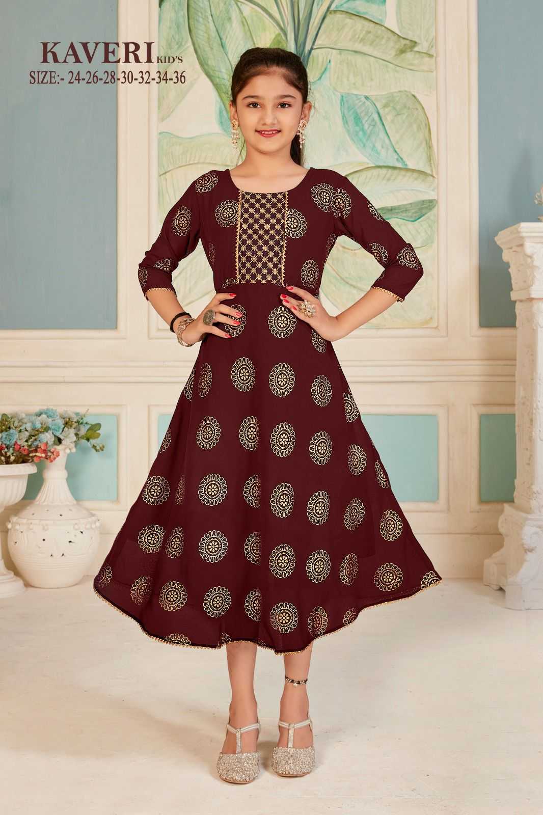 Pr kaveri readymade gold print georgette fancy frock kids wear