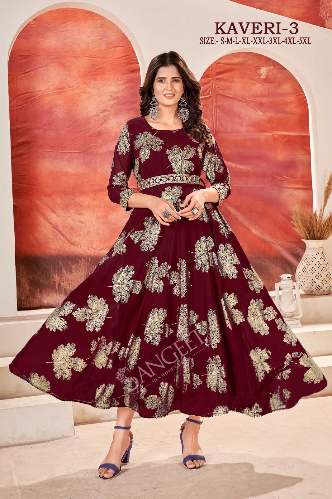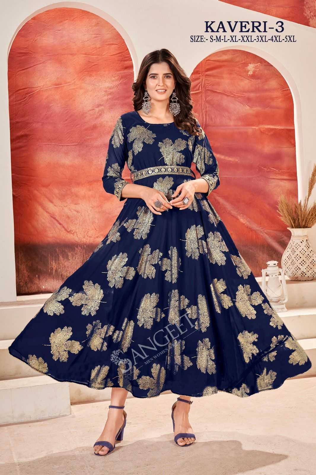 pr kaveri vol 3 readymade beautiful gold print long kurti in plus size