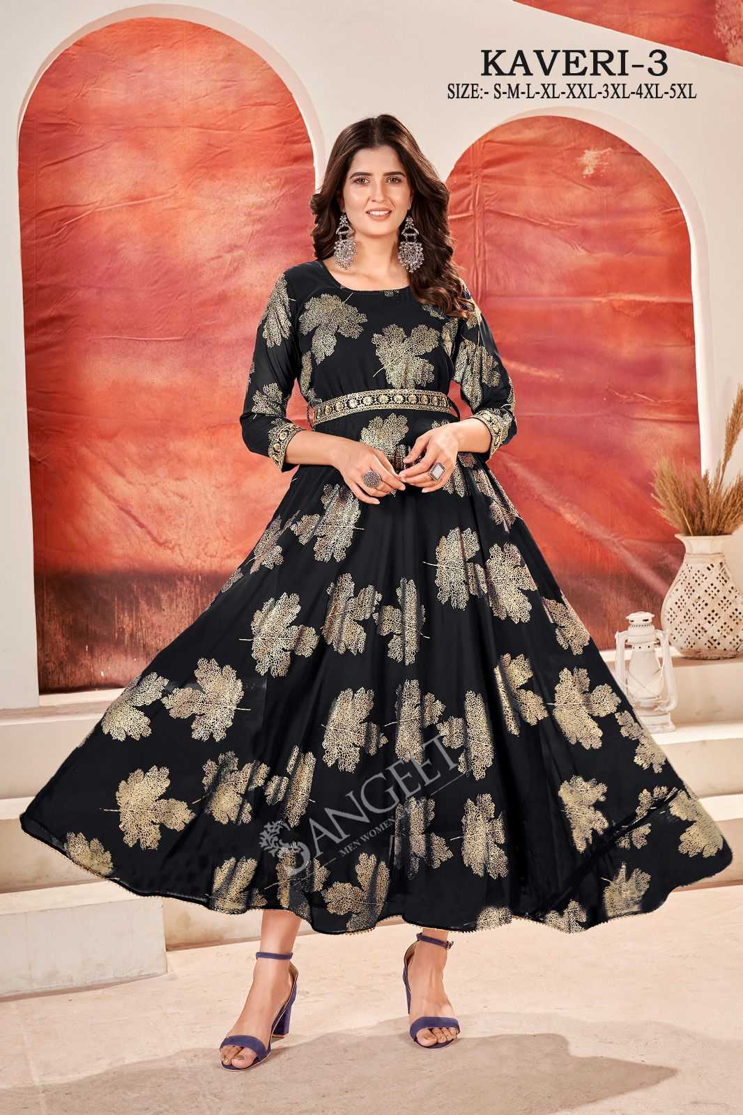 ——KAVERI-3———. Top 👗 - FAUX GEORGETTE FOIL GOLD PRINT WITH COTTON LINING ATTACHED INSIDE EMBROIDERY SEQUENCE WORK LENGTH-50” S-M-L-XL-2XL-3XL-4XL-5XL RATE-600/- |
