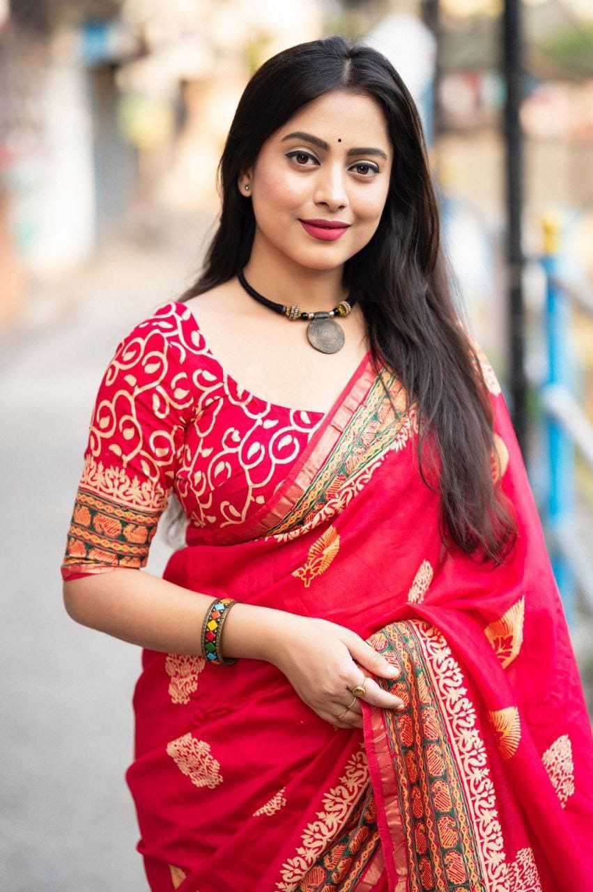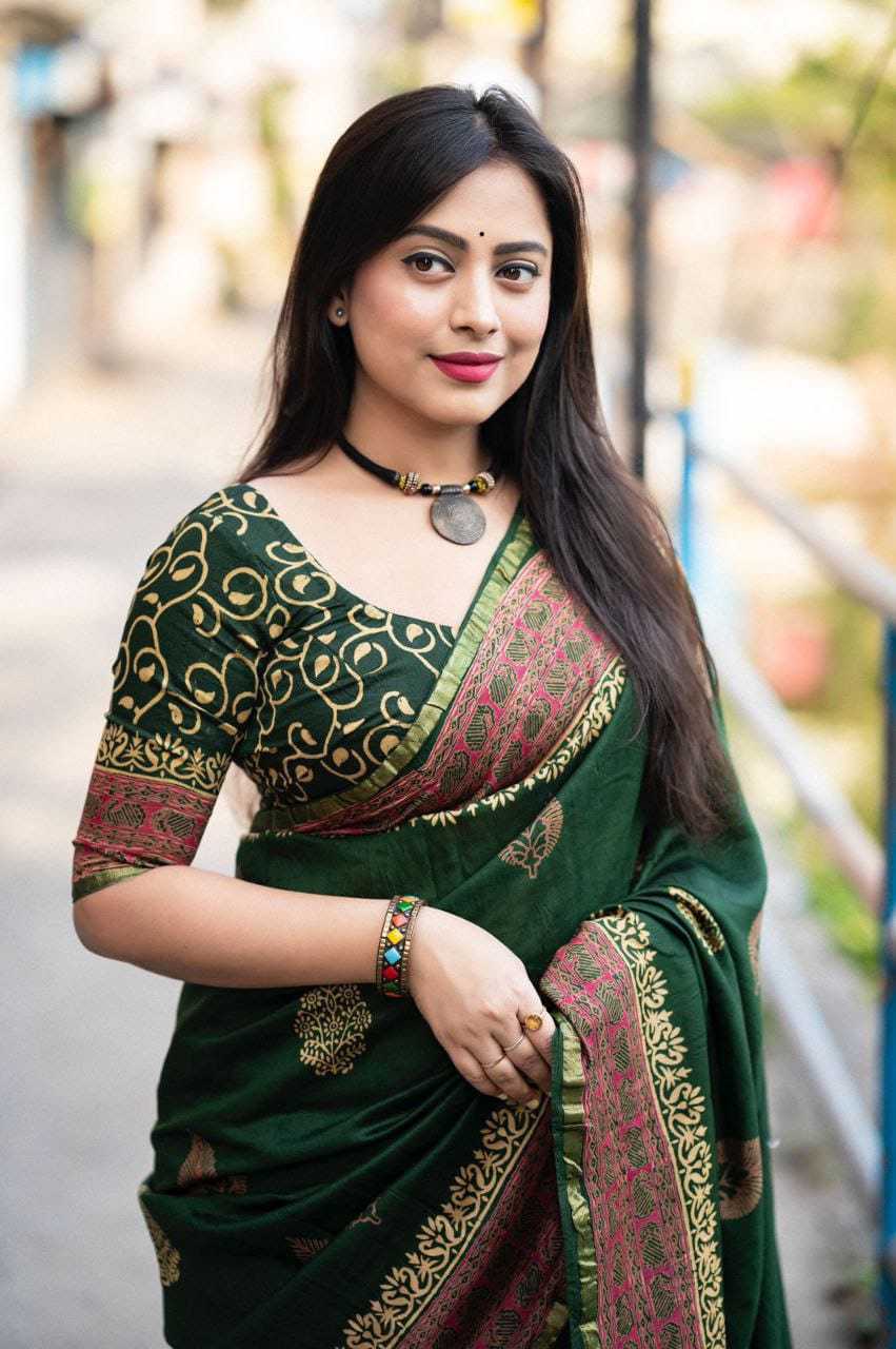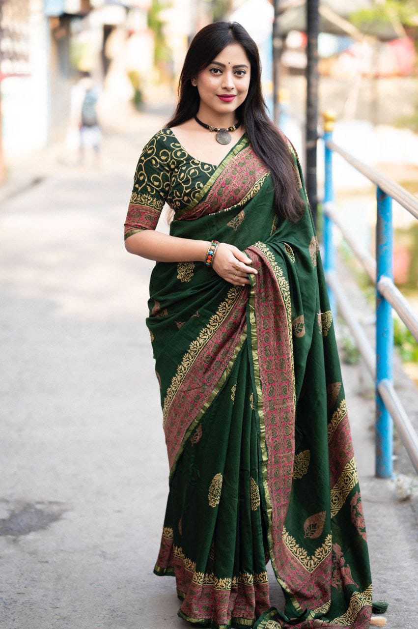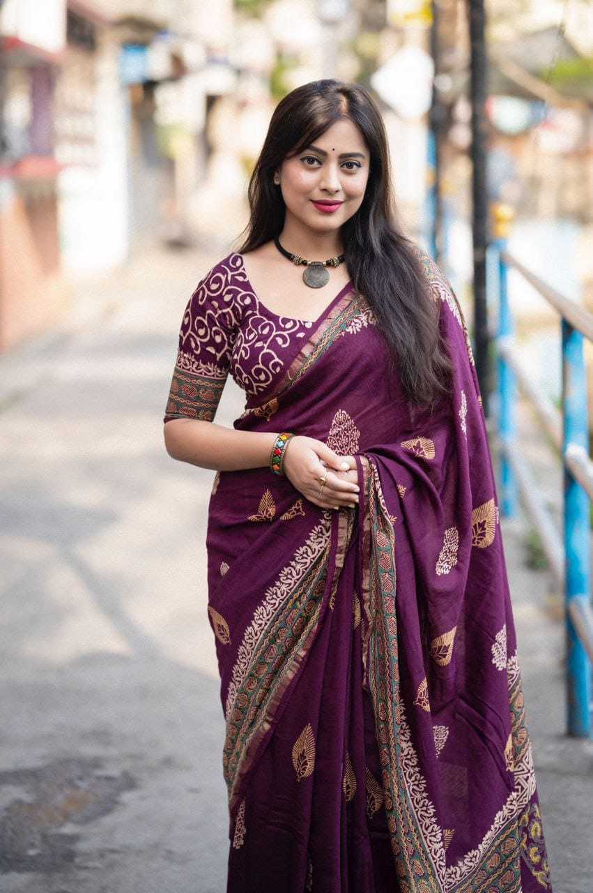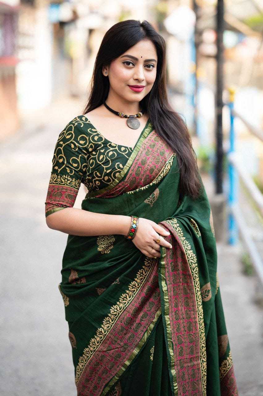 new arrivals New preimum hand block printed anrakh saree. KC- 103 KC- magic Ajrakh (d-2) Quality- pure chanderi cotton zare with zari woven pattu border. Ajrakh butta style hand block prints. Blouse- pure chamderi hand block printed blouse. Rate - 1350+ship Top premium quality |