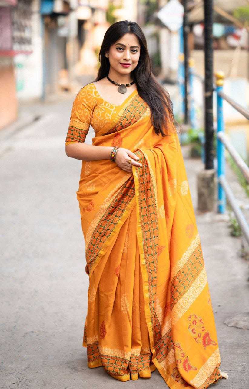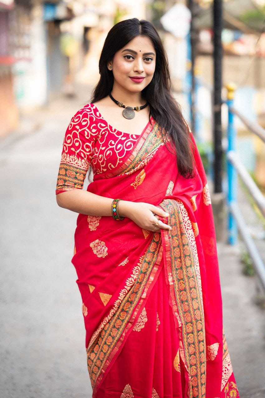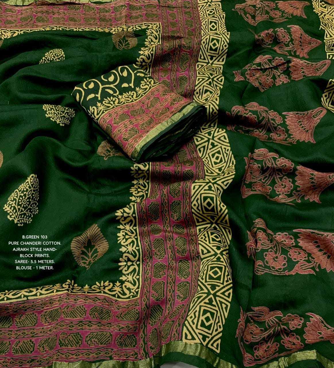 pr kc 103 pure chanderi cotton ajrakh trendy saree