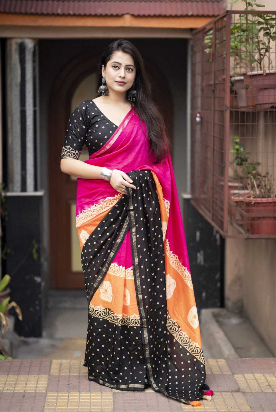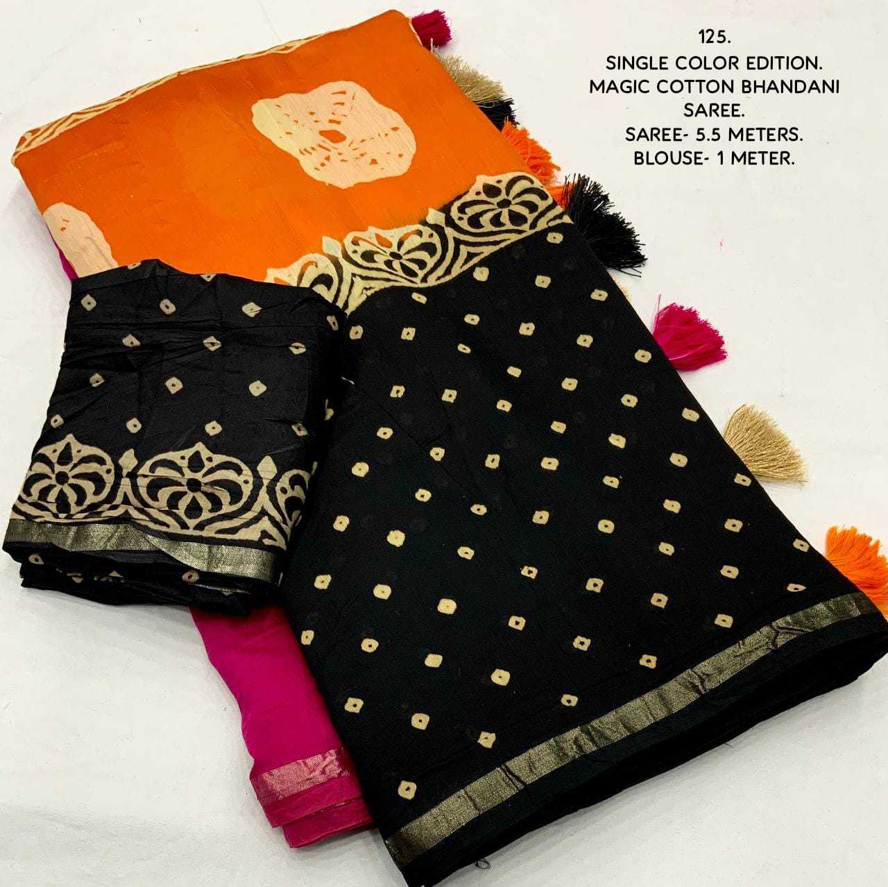 New magic cotton single color edition KC - 125 kc- magic rangoli. Quality- pure chanderi cotton saree with zari pattu border. Multicolor tye and dye with hand block bhandani prints. Blouse- pure chanderi cotton bhandani printed blouse. Rate - 1450+ship Top premium quality |