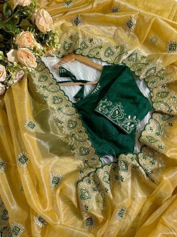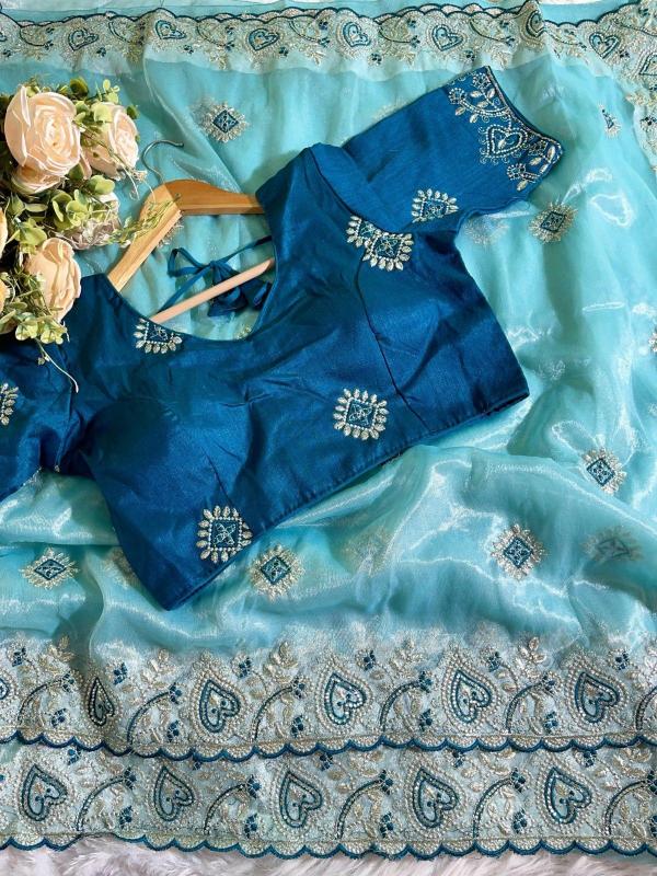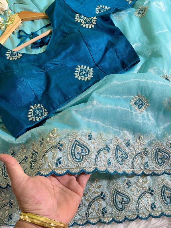 🎉🎉Super Hit Designs Fresh Arrivals 🎉 Pure soft twill net shining fabric sarees with beautiful embroidery thread work border nd butta with hand jharkhand outing in all over saree with aarco.. Paired with fully stiched embroidery work blouse on mono silk fabric 😘 Amazing 6 colours 😘 At Just ₹1399/- ❣️ |