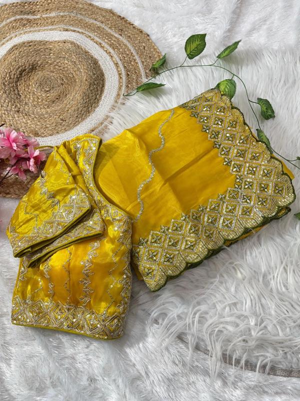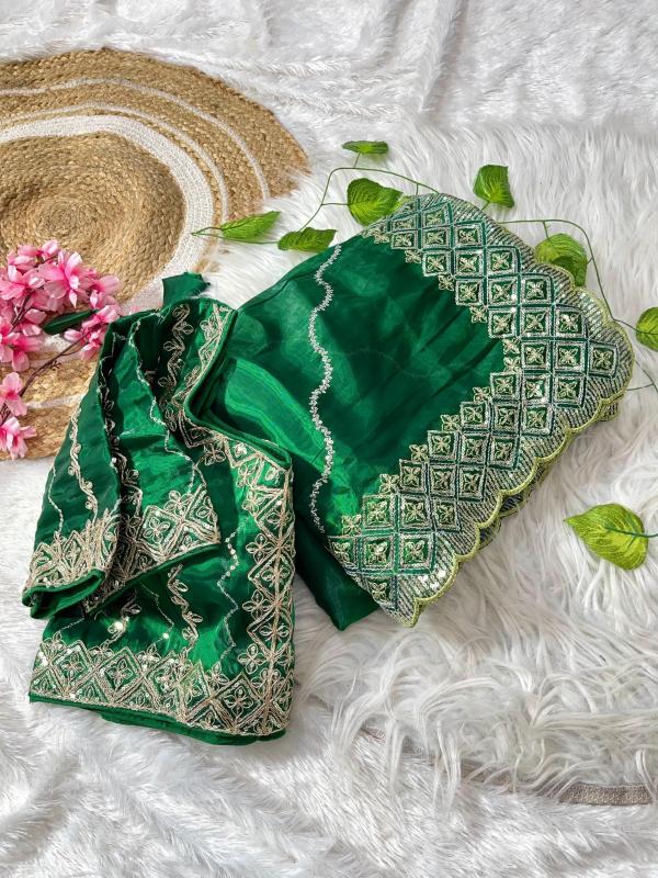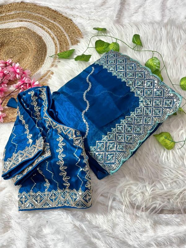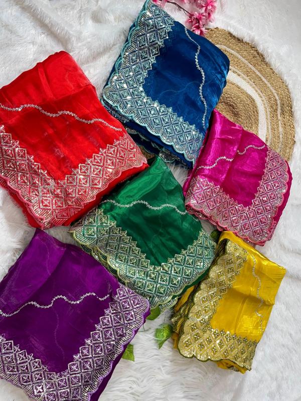 New Arrivals 😻 Pure soft zimmy choo silk saree with beautiful embroidery sequence work heavy borders with lehariya sequence in all over saree nd aarco border Paired with Fully stiched embroidery sequence work blouse on running fabrics 🎉Eye catching 6 colours 🎉 At just ₹1449/- ❤️ |