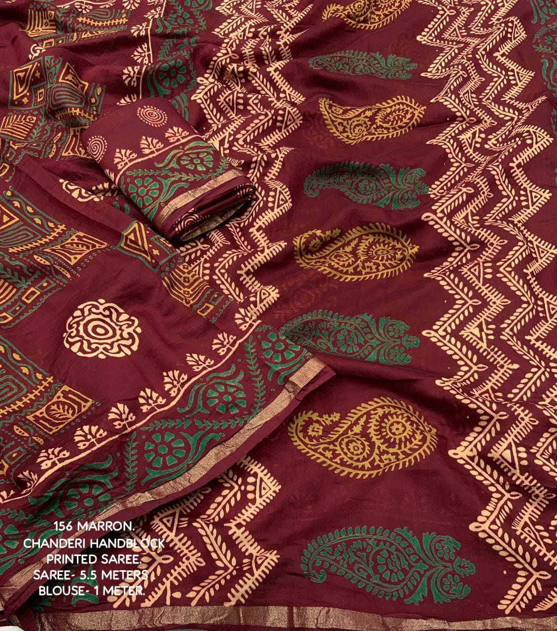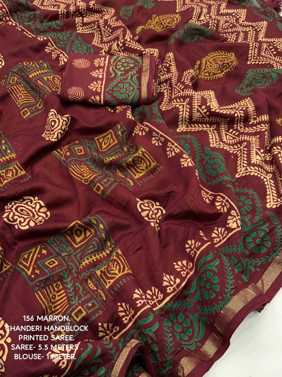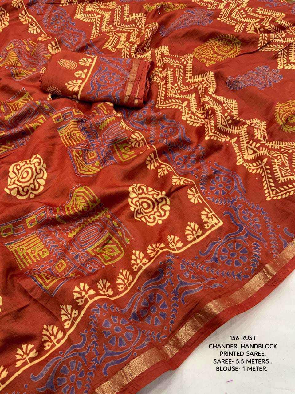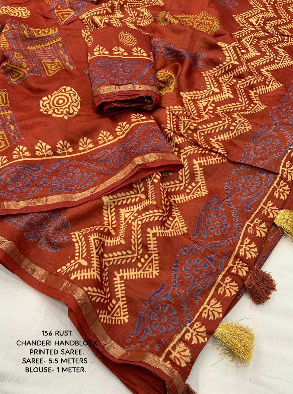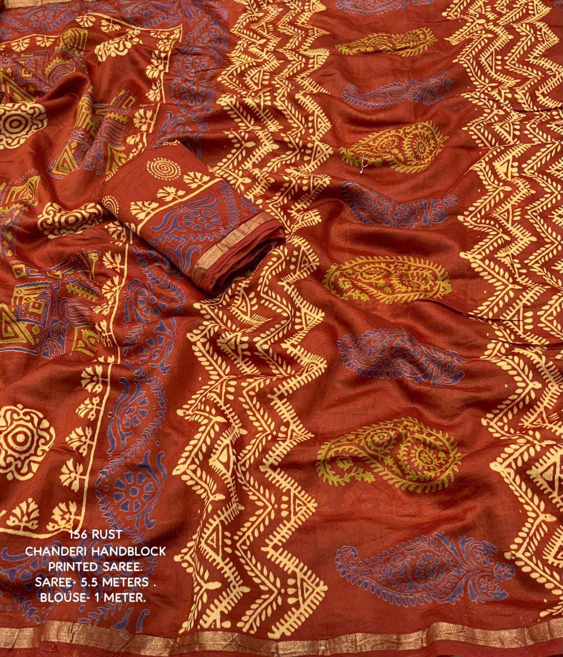 new arrivals New premium hand block printed ajrakh saree. KC- 156. KC- magic Ajrakh (d-3) Quality- pure chanderi cotton zare with zari woven pattu border. Ajrakh butta style hand block prints. Blouse- pure chanderi hand block printed blouse. Rate - 1350+ship Top premium quality |