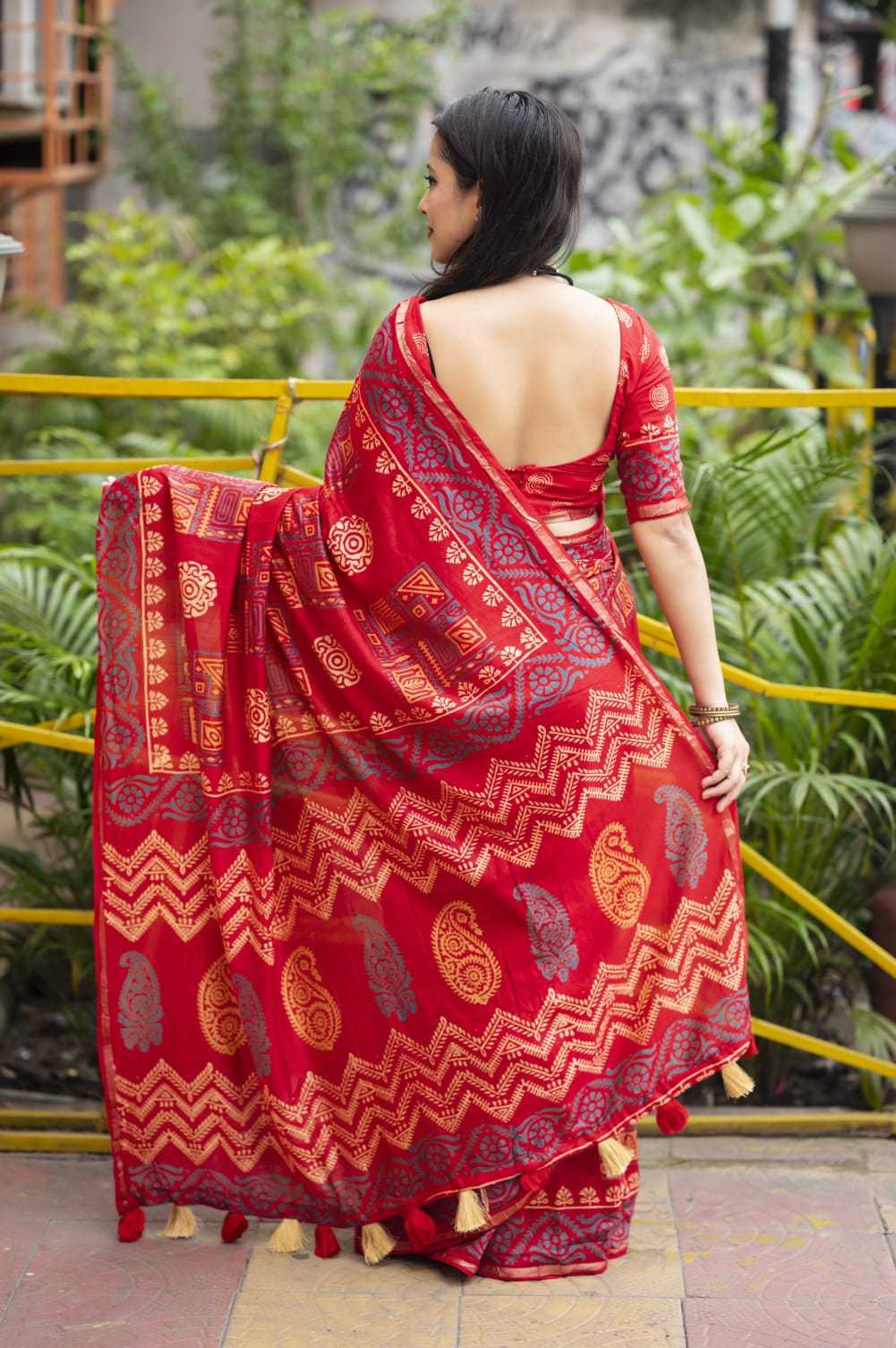 pr kc 156 magic ajrakh zari woven pattu chanderi cotton saree