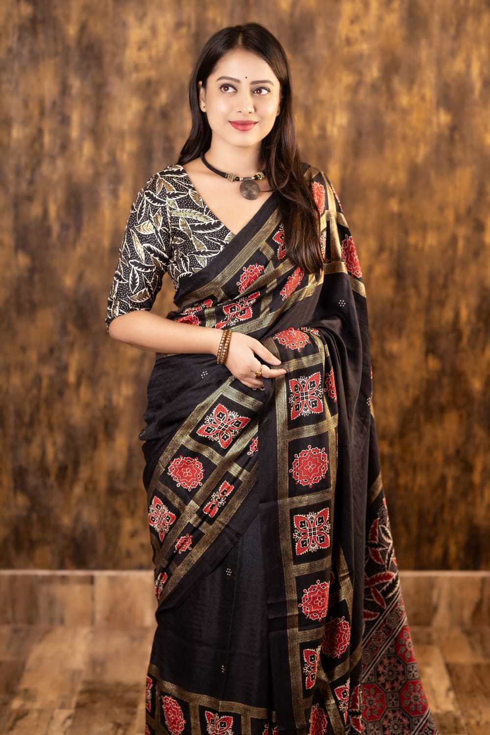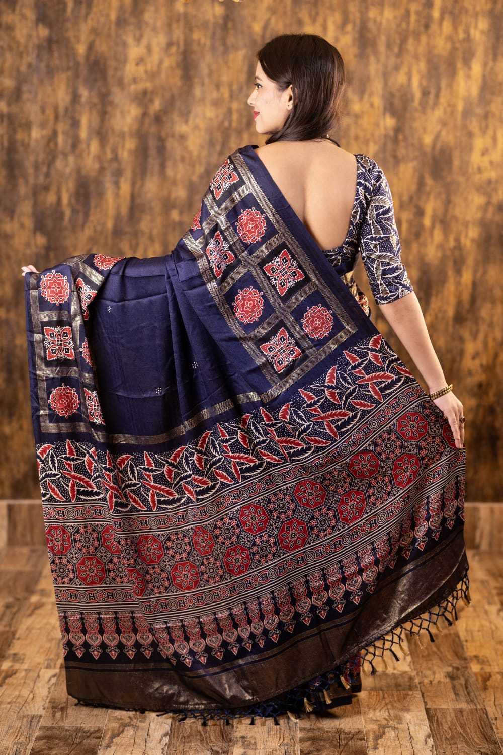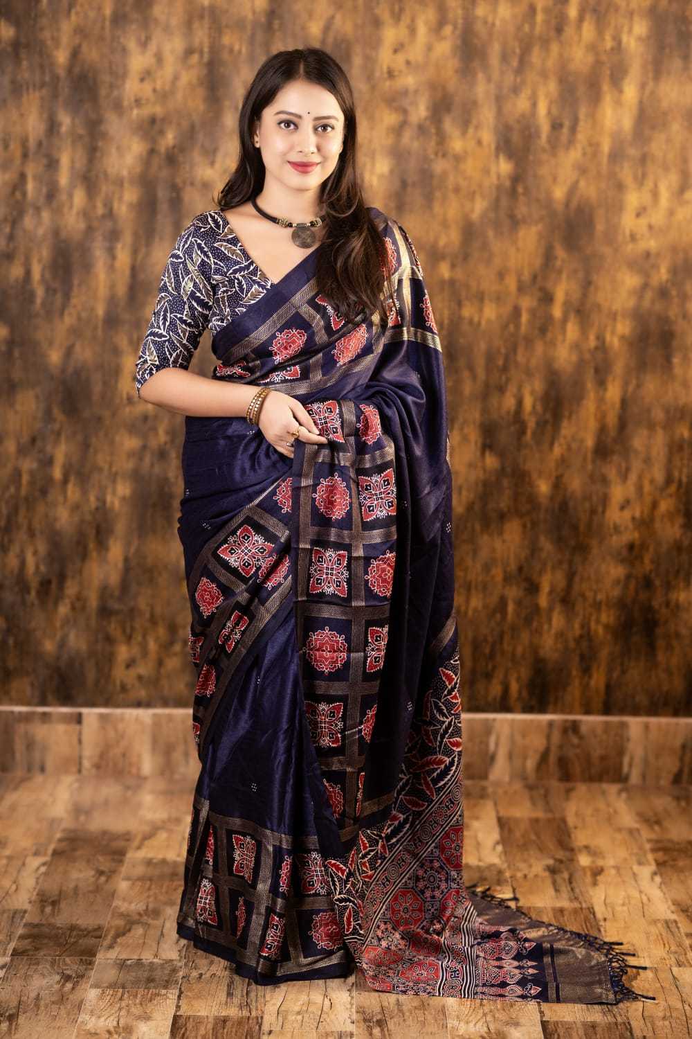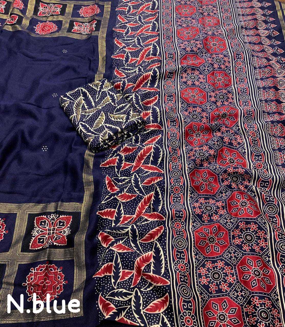 pr kc 160 pashmina silk ajrakh style printed saree collection