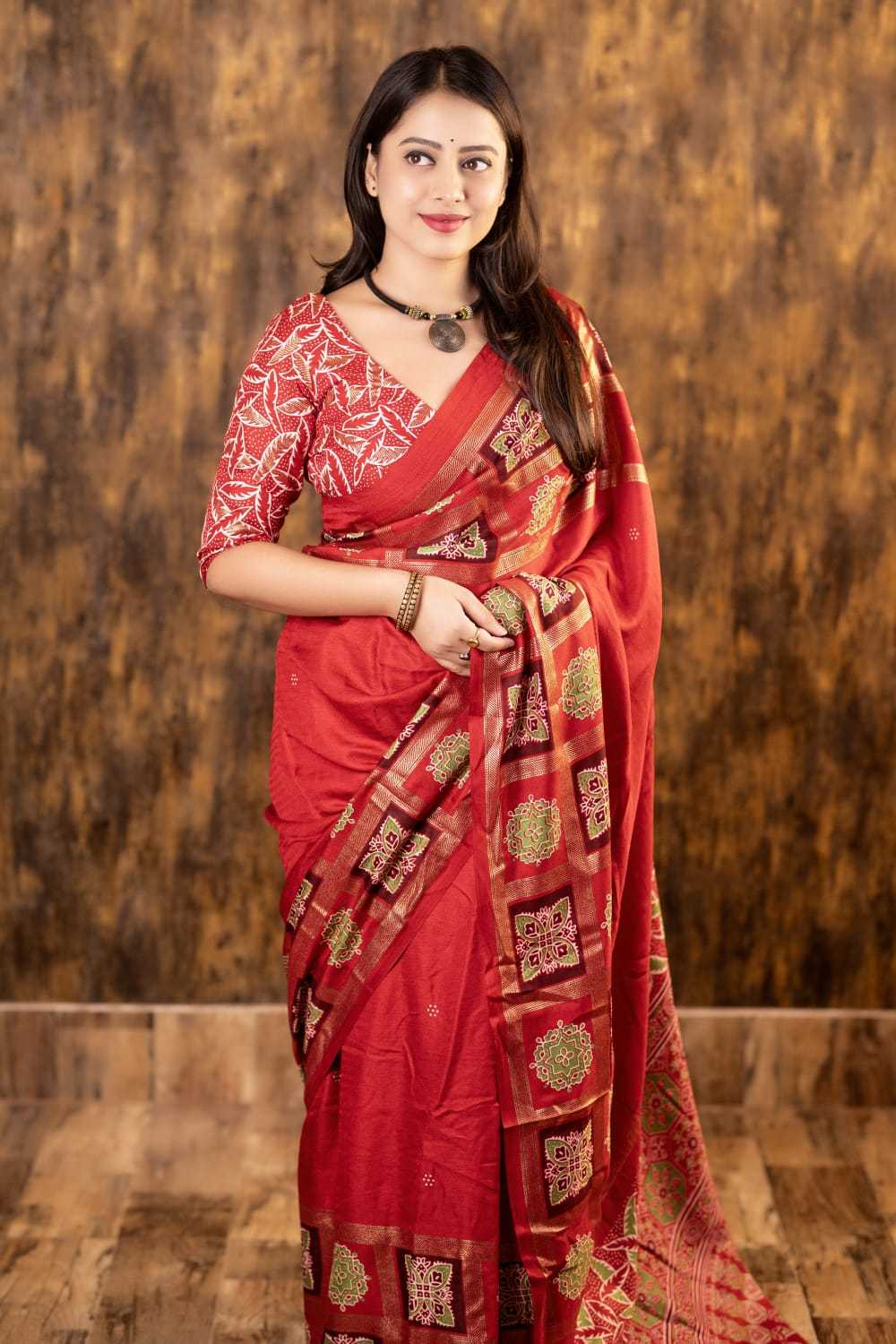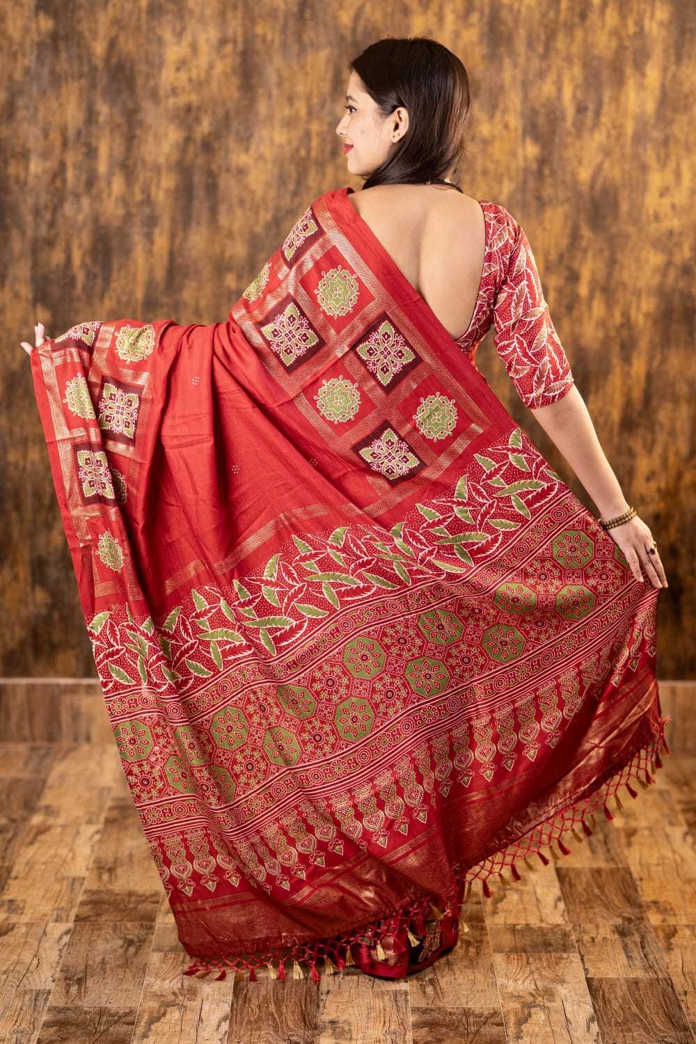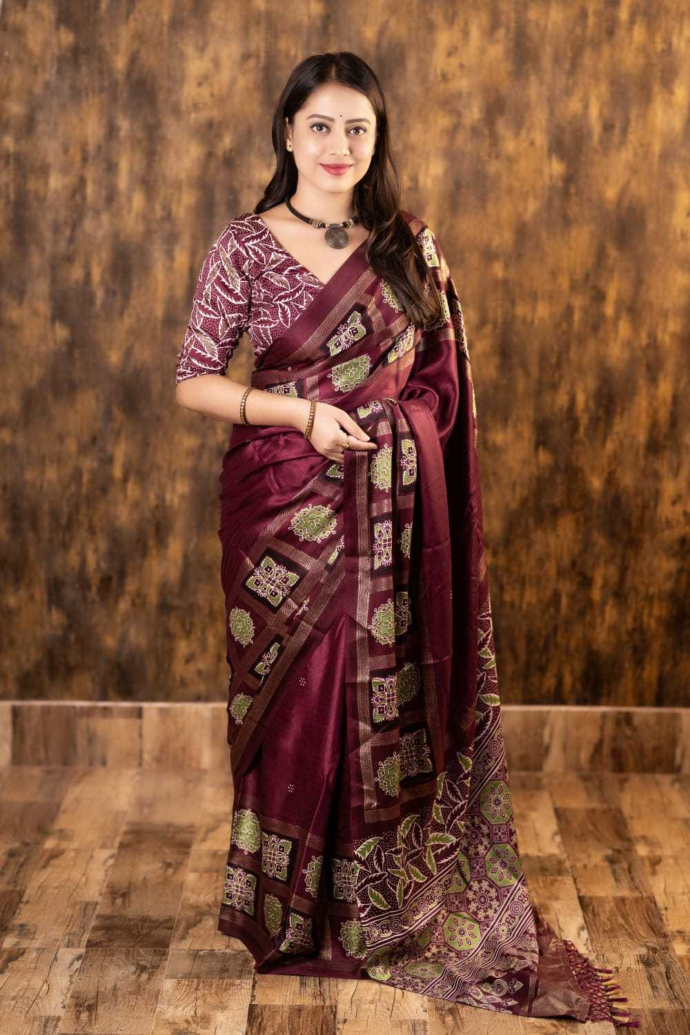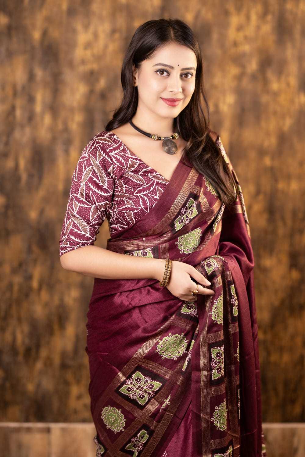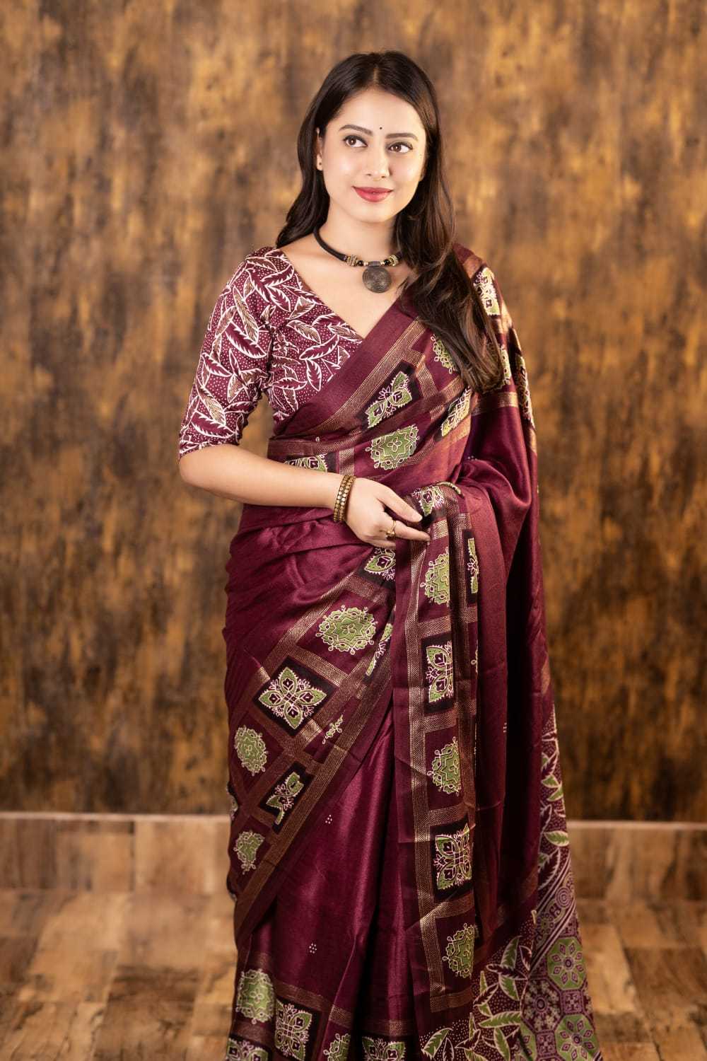 pr kc 160 pashmina silk ajrakh style printed saree collection