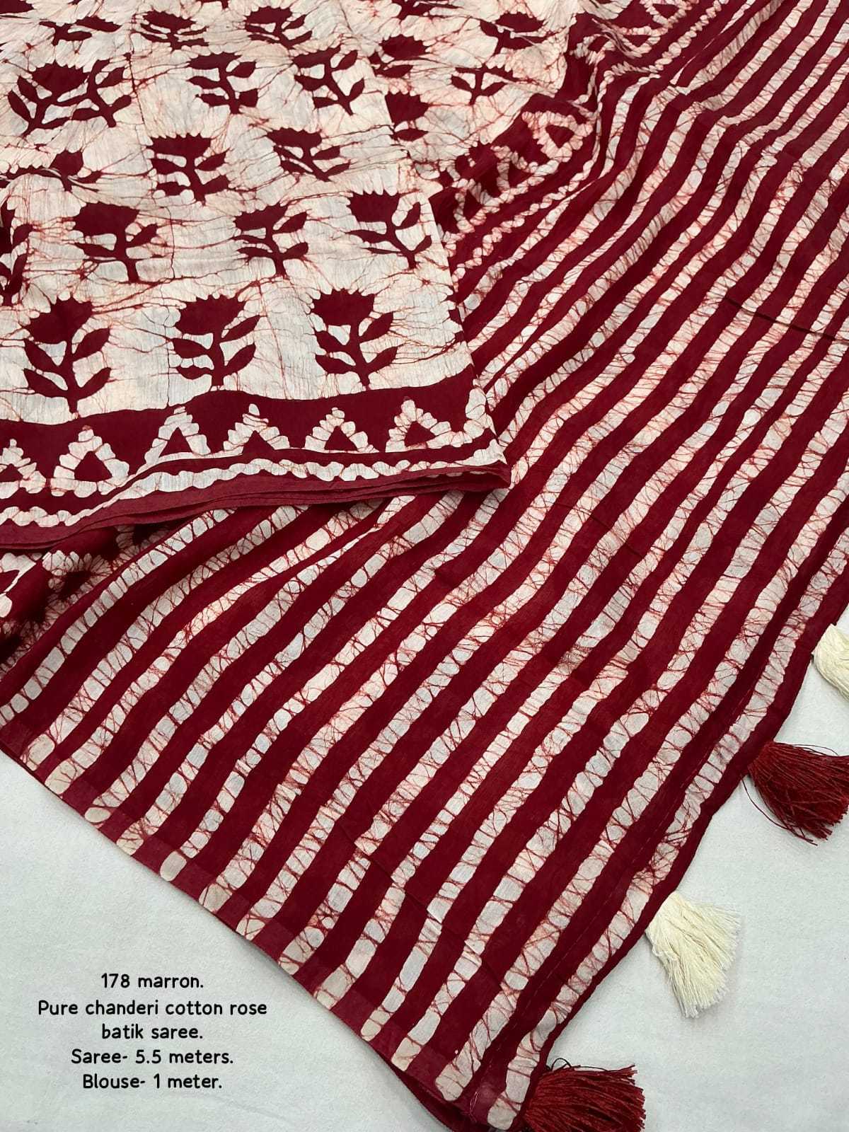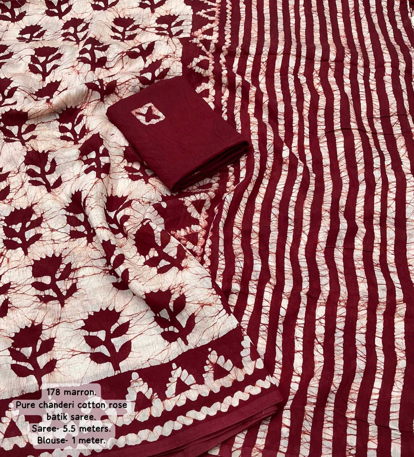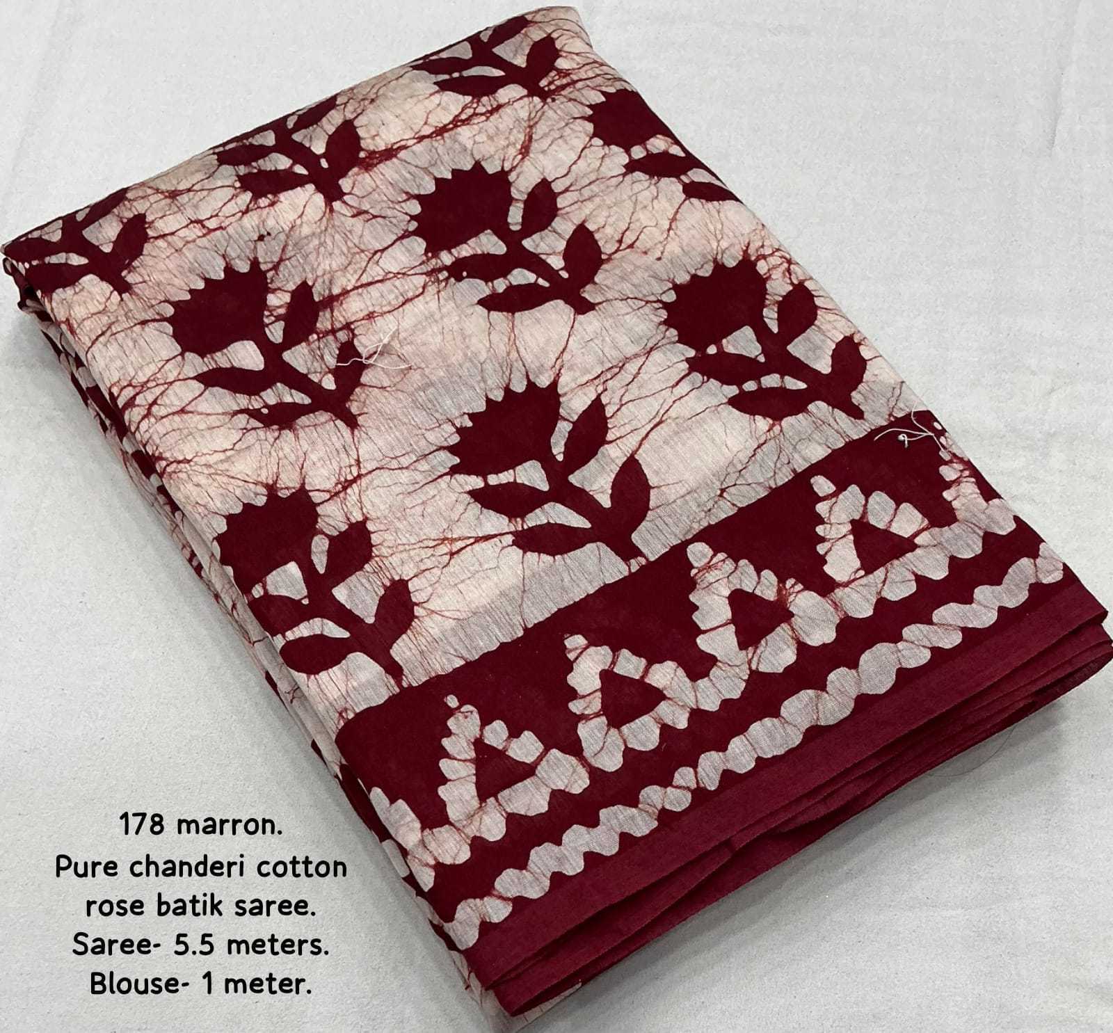 new arrivals New addition to our hand block sarees. KC- 178 KC- magic rose. Quality- soft pure chanderi cotton saree with hand block batik rose prints. Cotton tassles on pallu. Blouse- running hand block printed chanderi cotton blouse. Rate - 950+ship Top trusted quality |