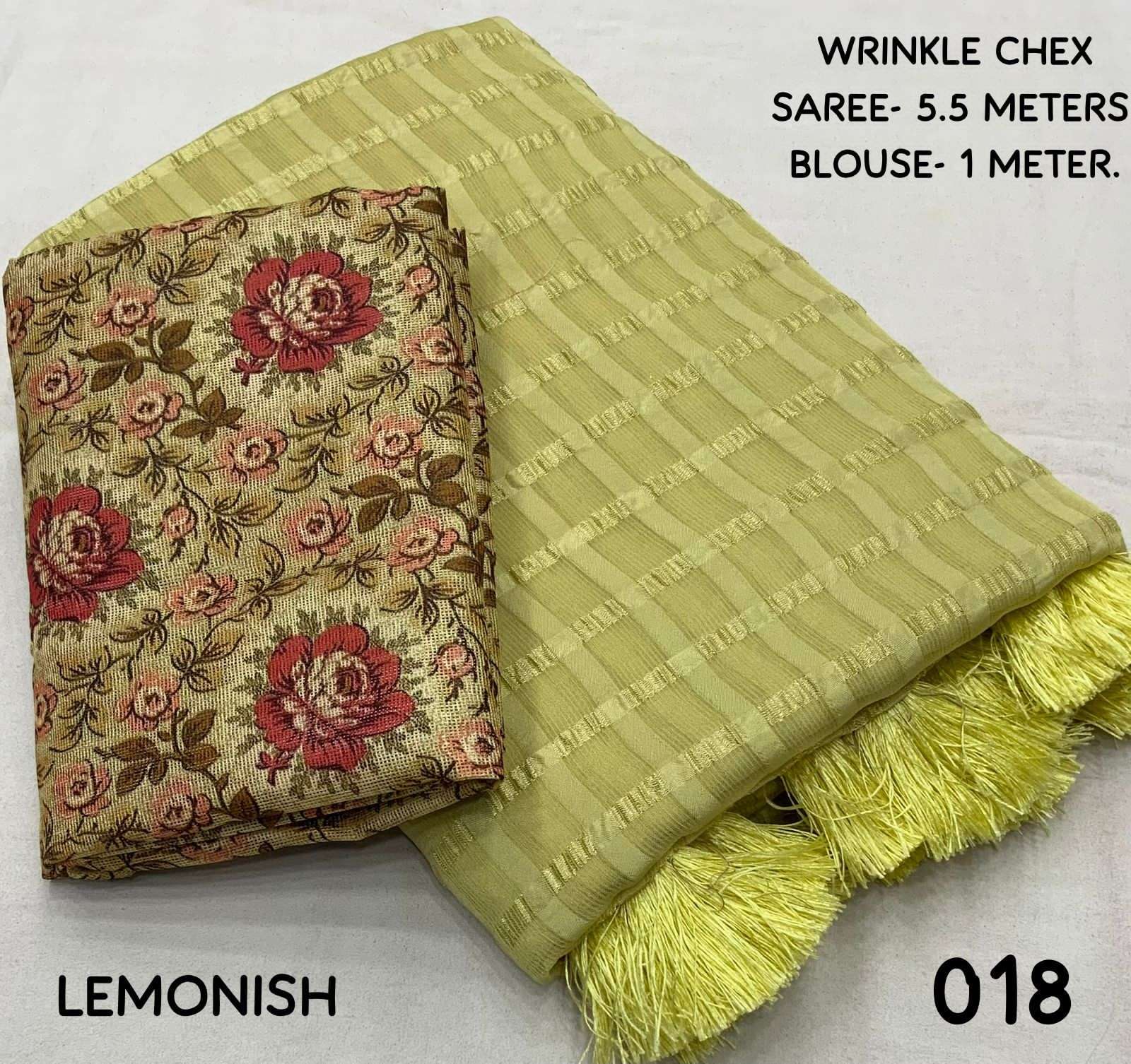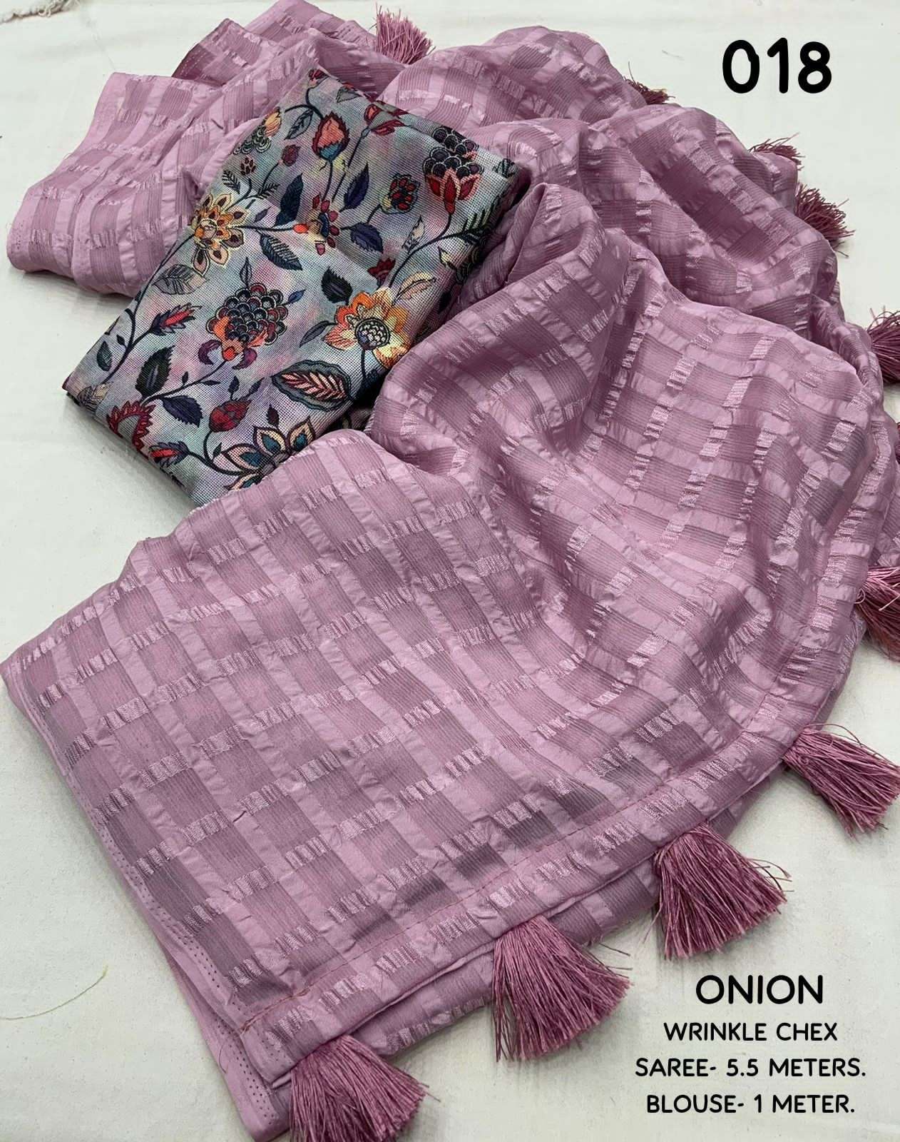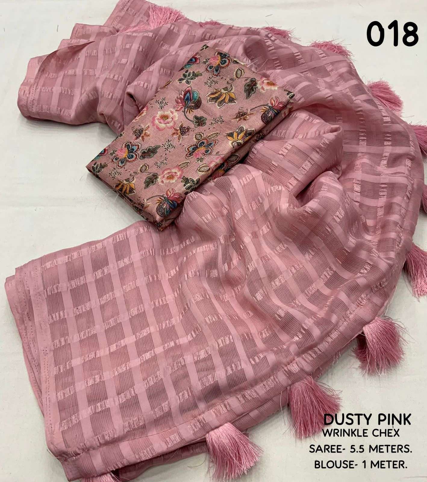 best seller back in stock New chiffon chex saree KC- 18 KC- wringle chex Quality- soft georgette with wrinkle style woven chex. Tassels on pallu. Blouse- perfectly matched jute printed blouse. Rate- 549+ship Top trusted quality |