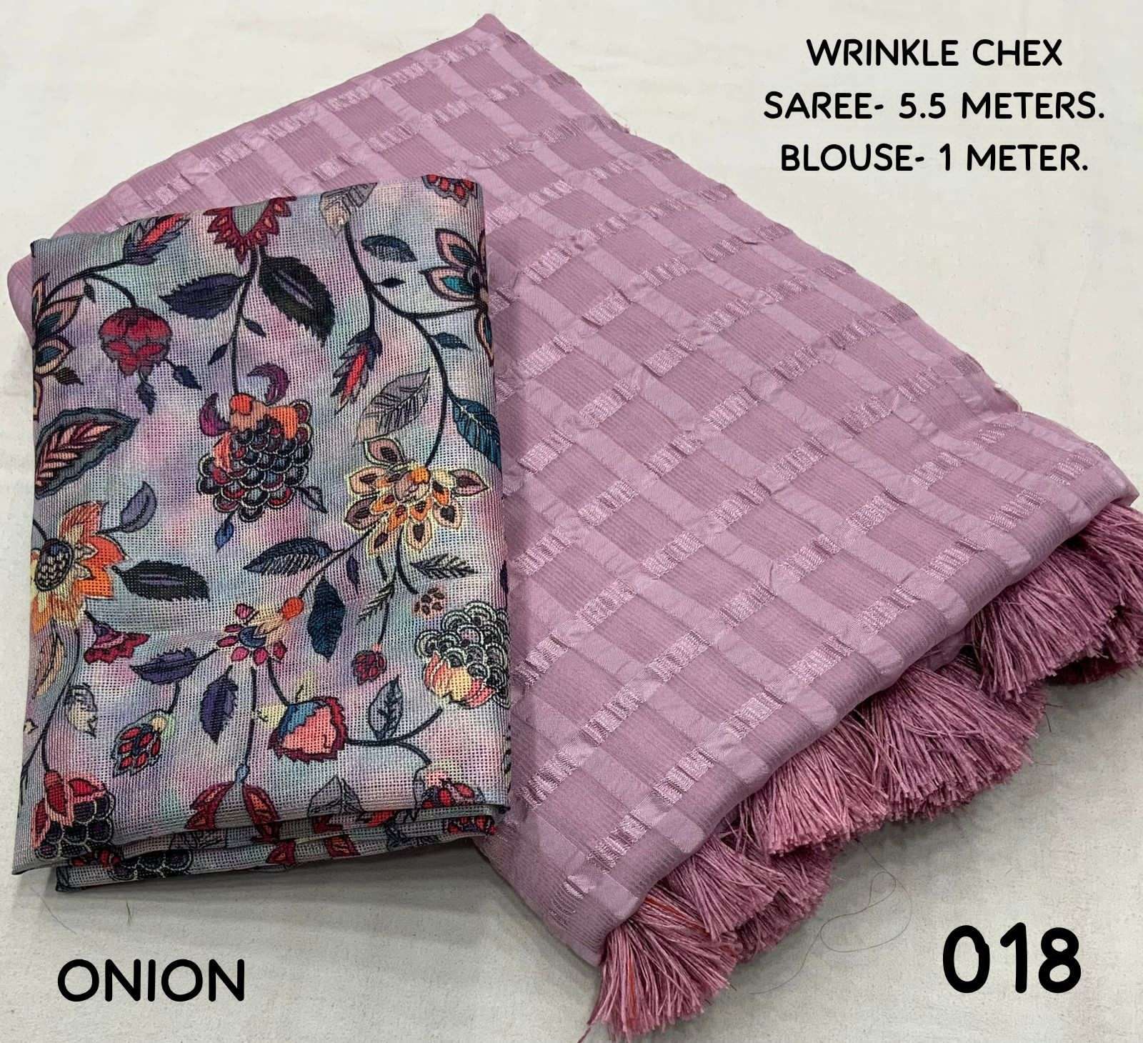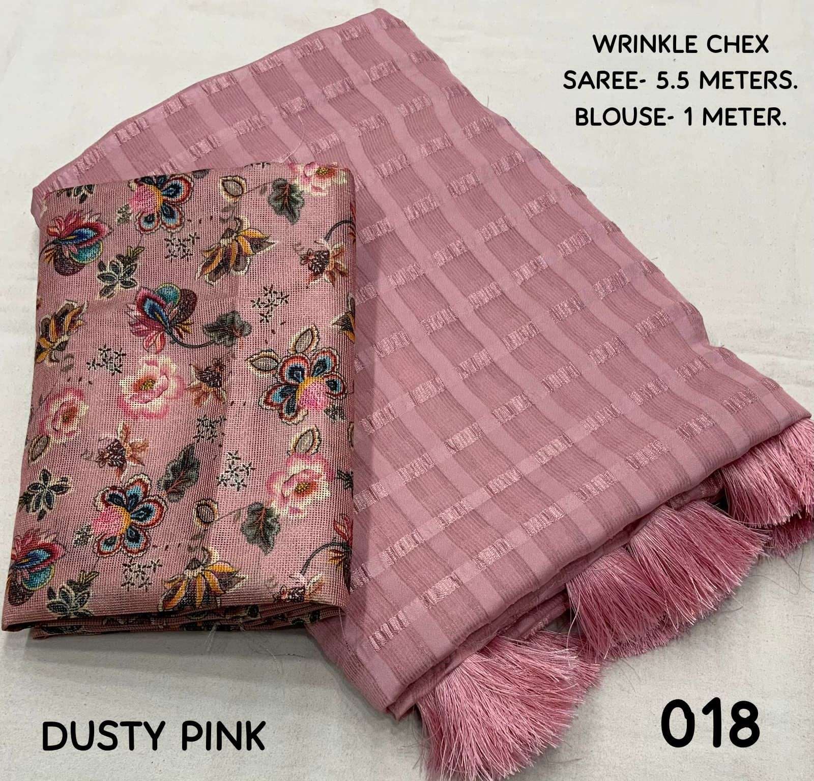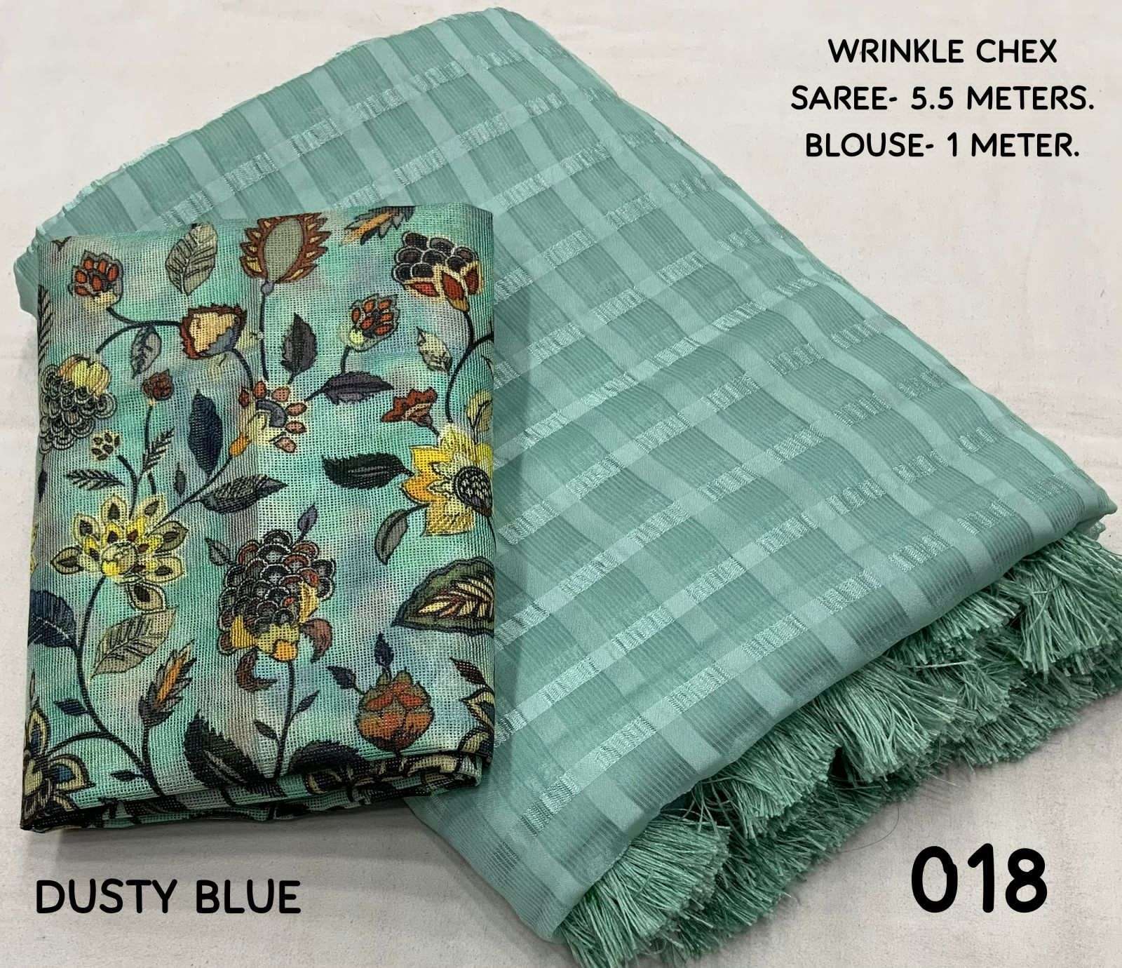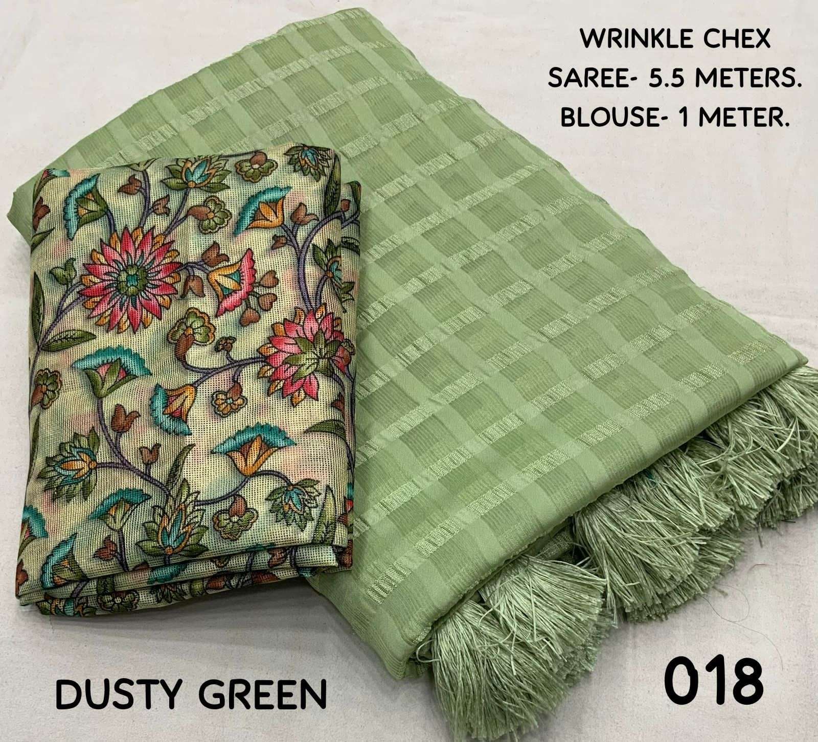 best seller back in stock New chiffon chex saree KC- 18 KC- wringle chex Quality- soft georgette with wrinkle style woven chex. Tassels on pallu. Blouse- perfectly matched jute printed blouse. Rate- 549+ship Top trusted quality |