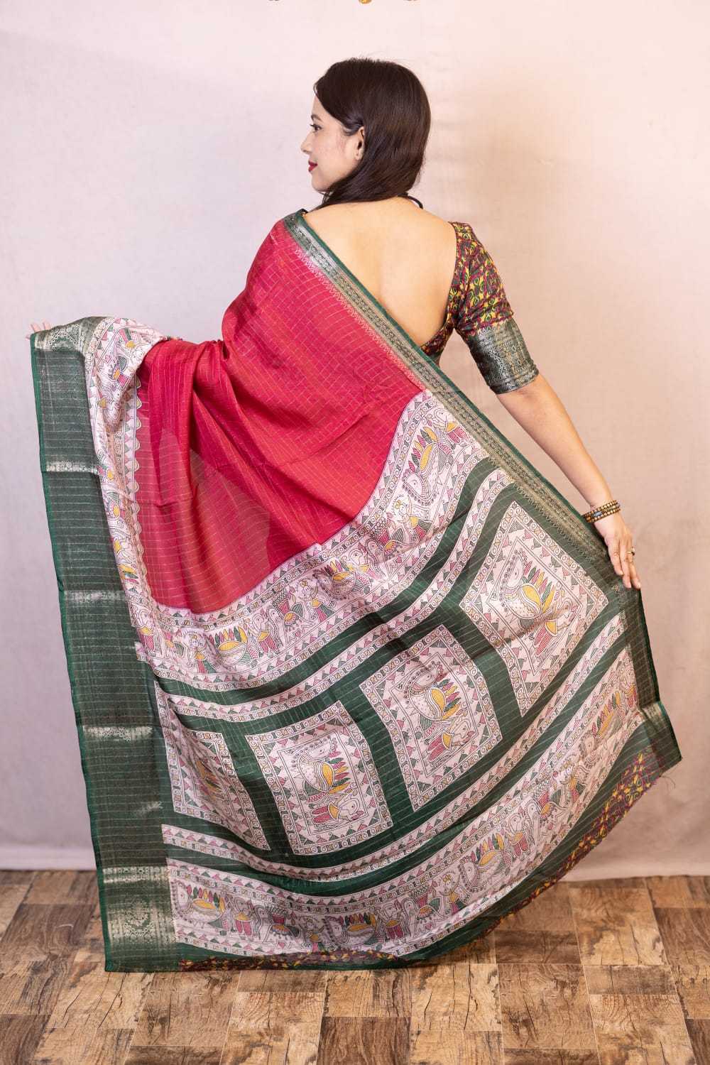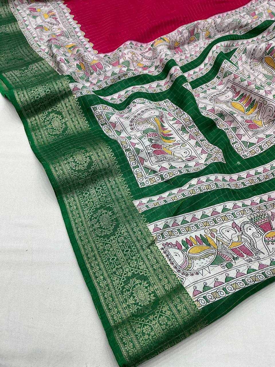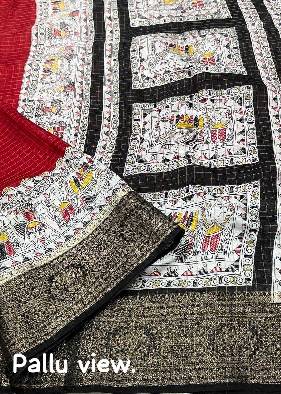 pr kc 189 zari woven cotton crape madhubani chex saree collection