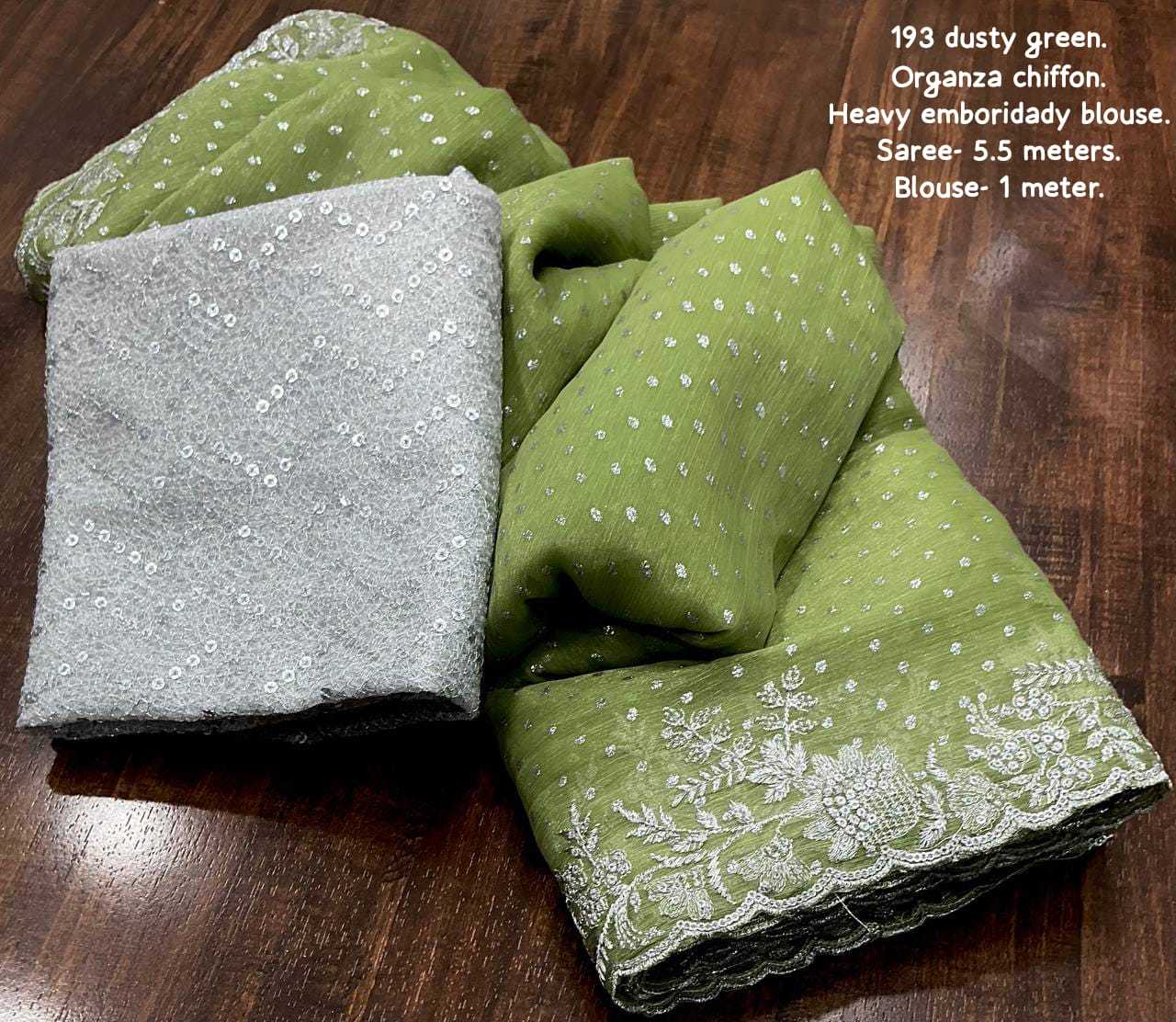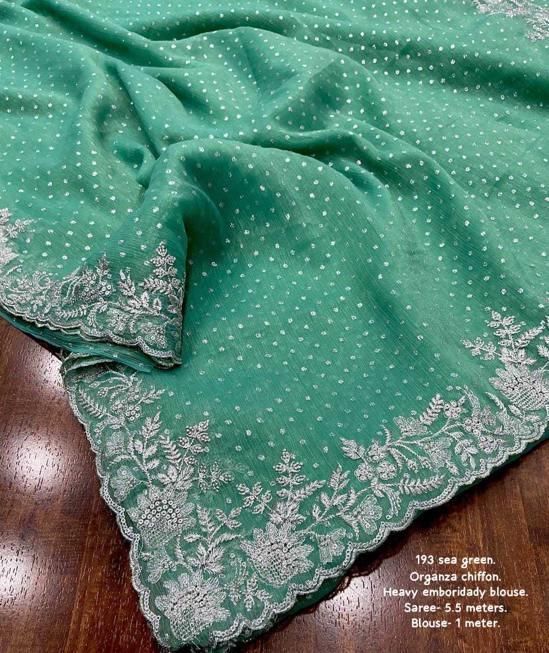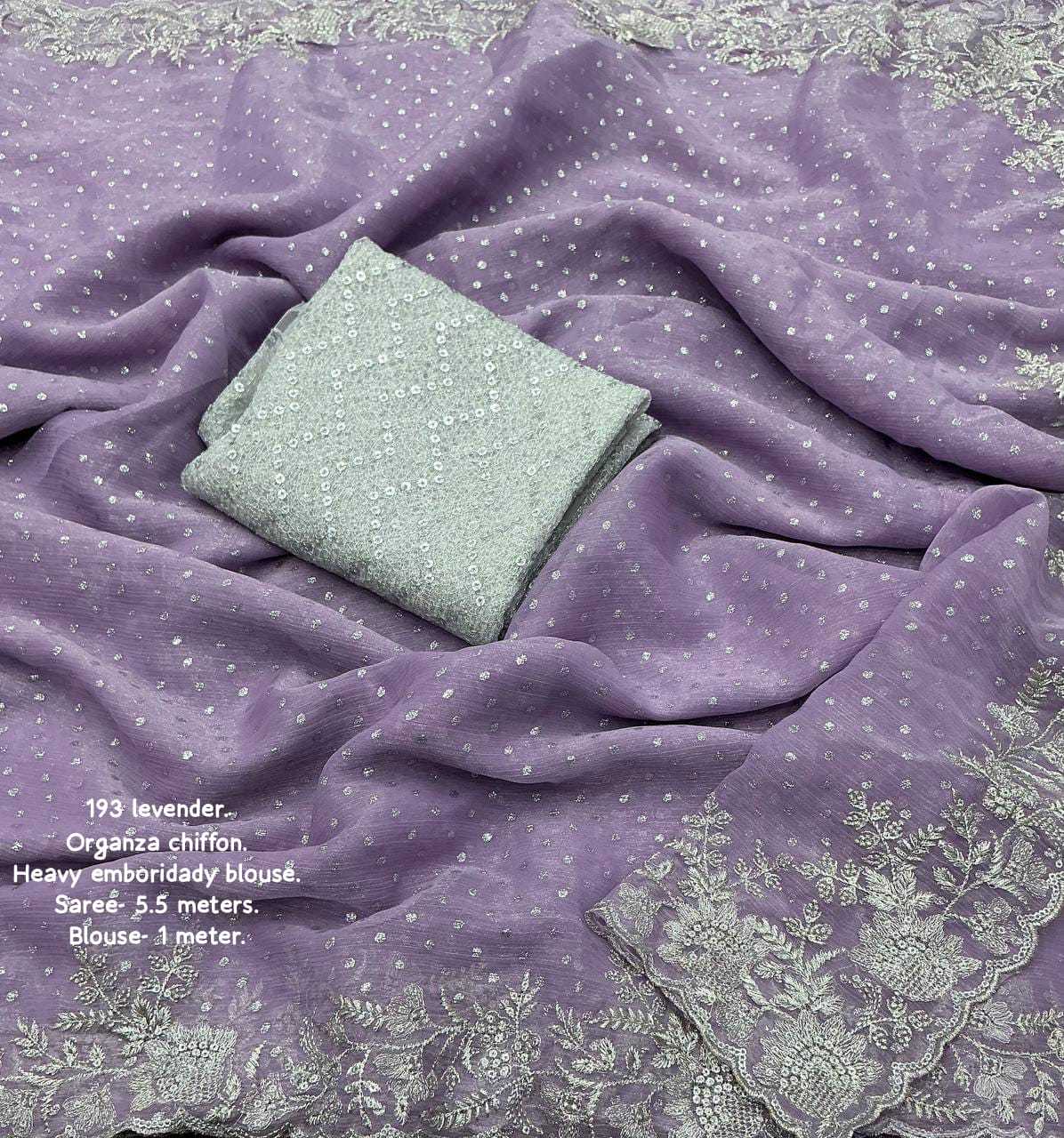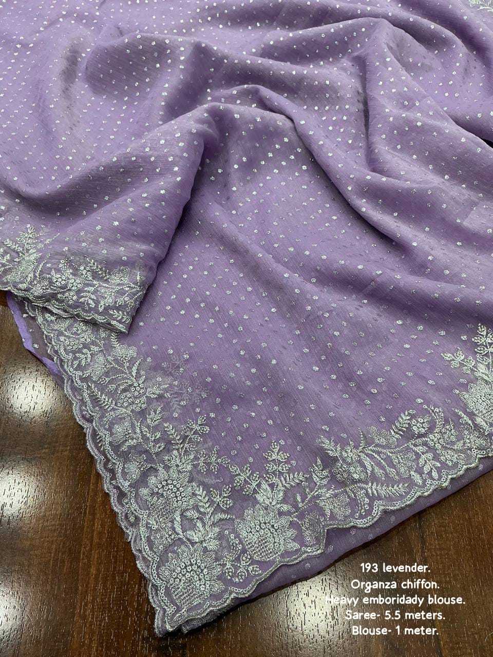 new arrivals New fancy emboridary catalog KC - 193 KC - organza chiffon. Quality- soft organza chiffon saree with silver butti additional work. Silver zari emboridady in c-pallu. Blouse- soft net with super heavy sequence emboridary. Rate - 1650+ship Top trusted quality |