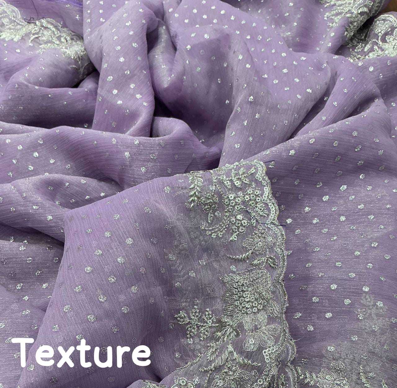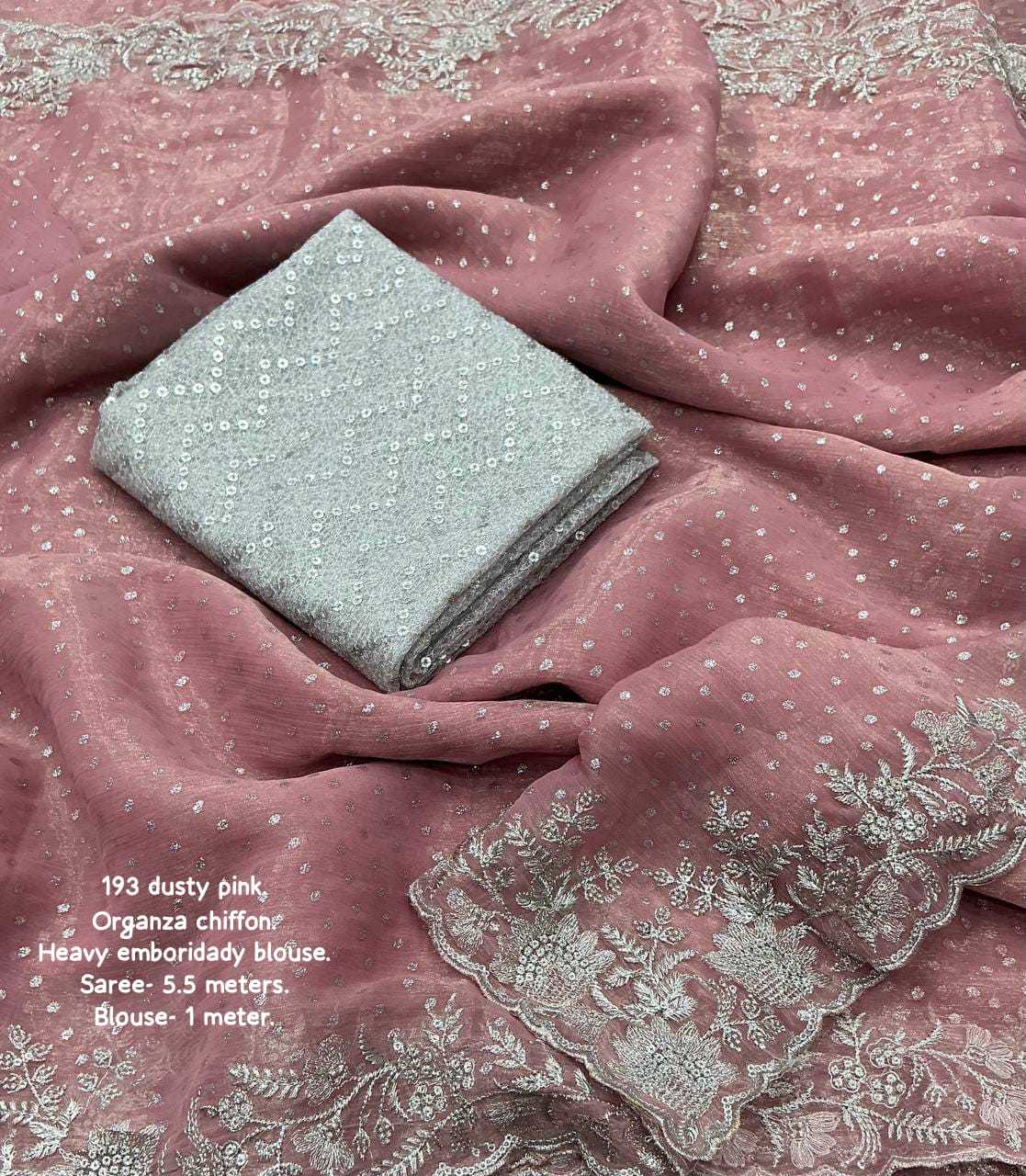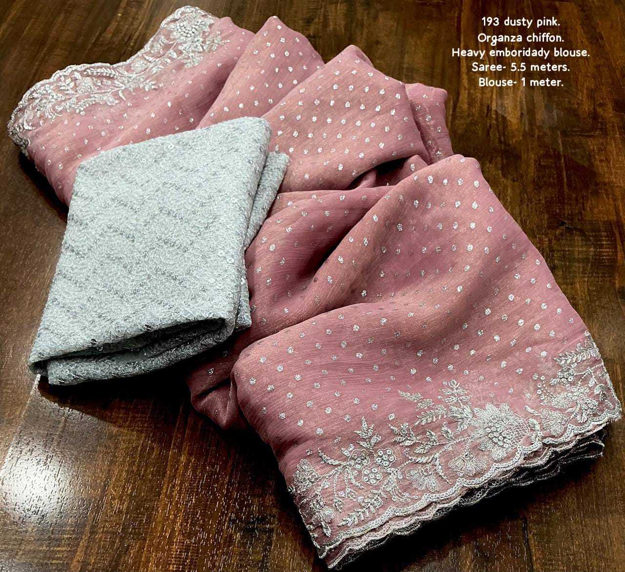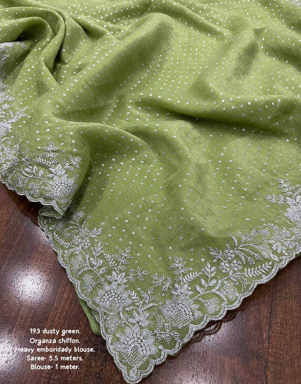 new arrivals New fancy emboridary catalog KC - 193 KC - organza chiffon. Quality- soft organza chiffon saree with silver butti additional work. Silver zari emboridady in c-pallu. Blouse- soft net with super heavy sequence emboridary. Rate - 1650+ship Top trusted quality |