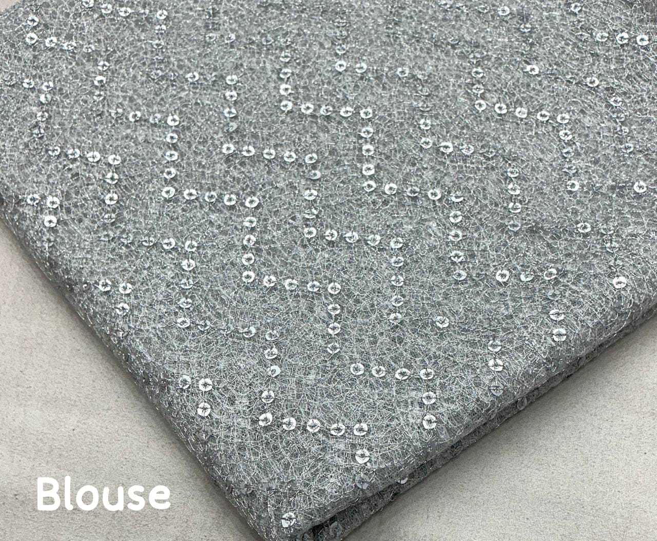 pr kc 193 organza chiffon traditional wear silver butti saree with blouse