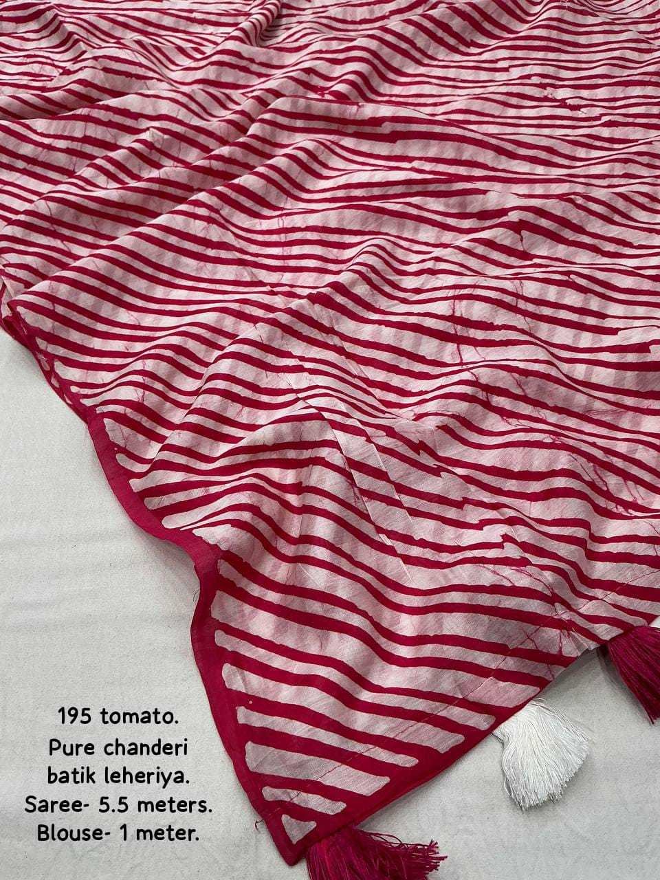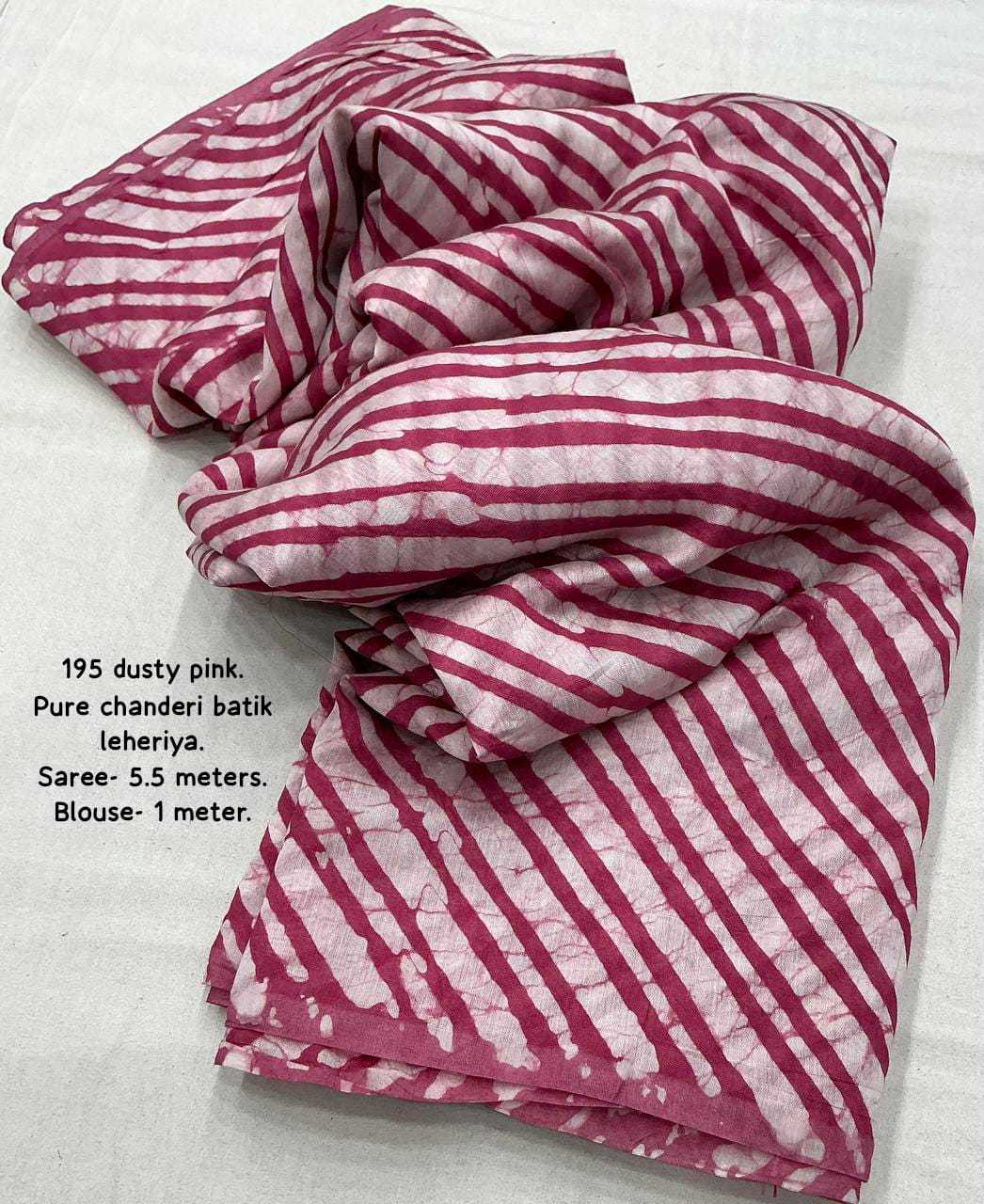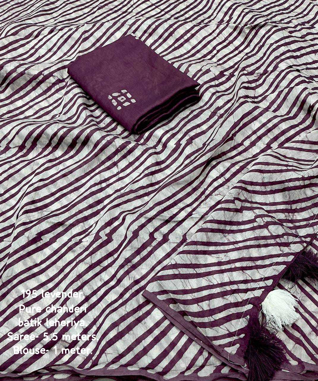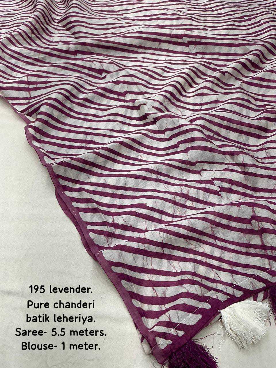 new arrivals New pure chanderi leheriya batik saree. KC - 195. kc - magic leheriya. Quality- soft chanderi cotton saree with leheriya batik design. Cotton tassles on pallu. Blouse- contrast running chanderi cotton blouse. Rate - 1050+ship Top Trusted Quality |