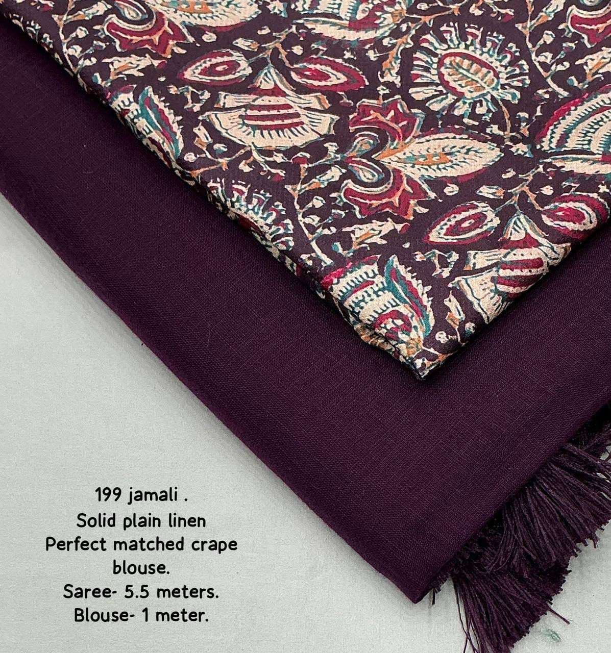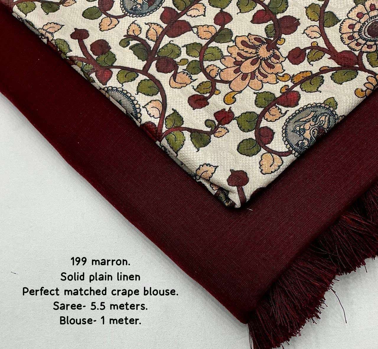 new arrivals New simple linen catalog Kc 199 Quality- soft linen saree in new dark shade. Cotton tassles on pallu. Blouse- perfect matched self tilak woven design crape silk