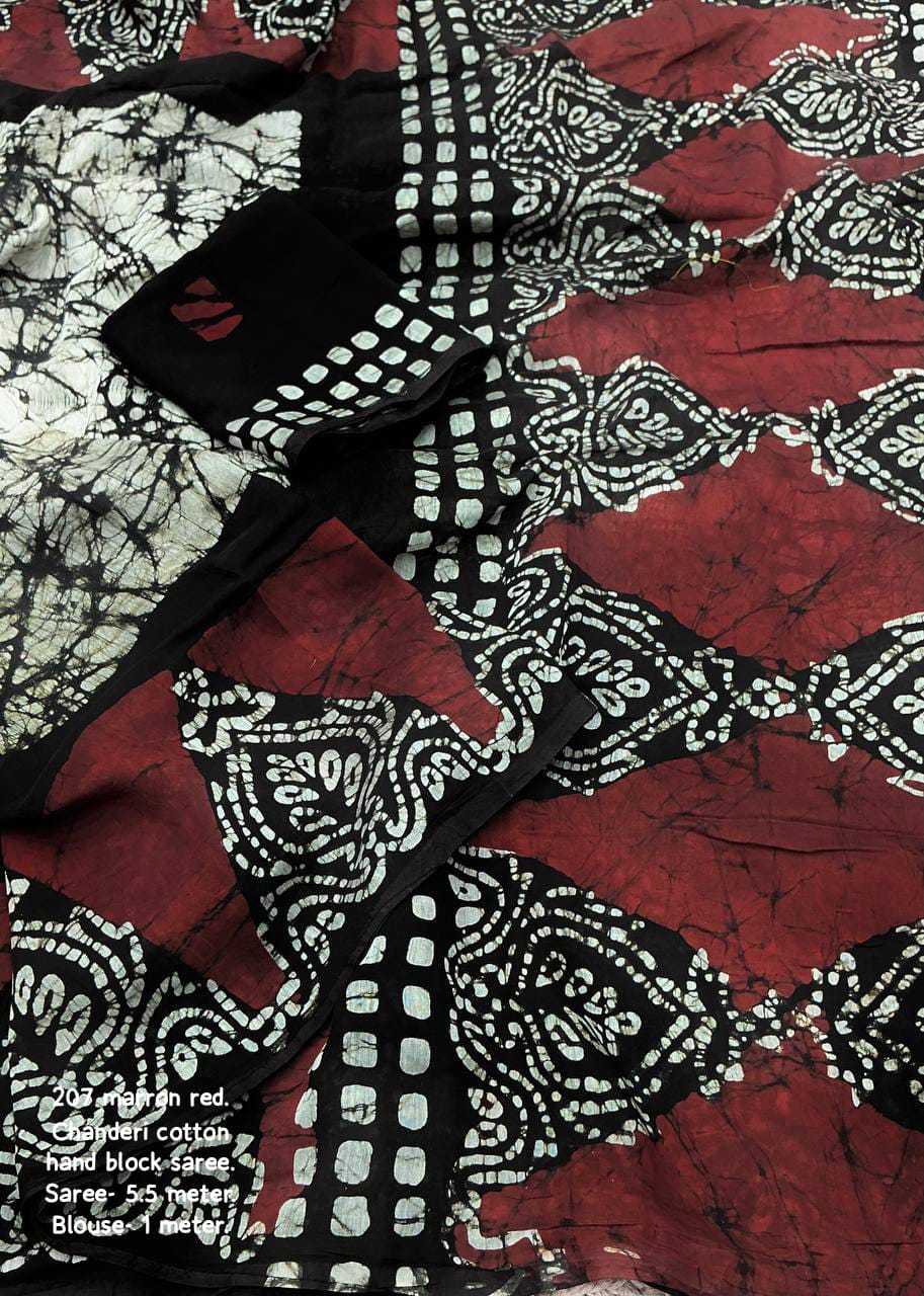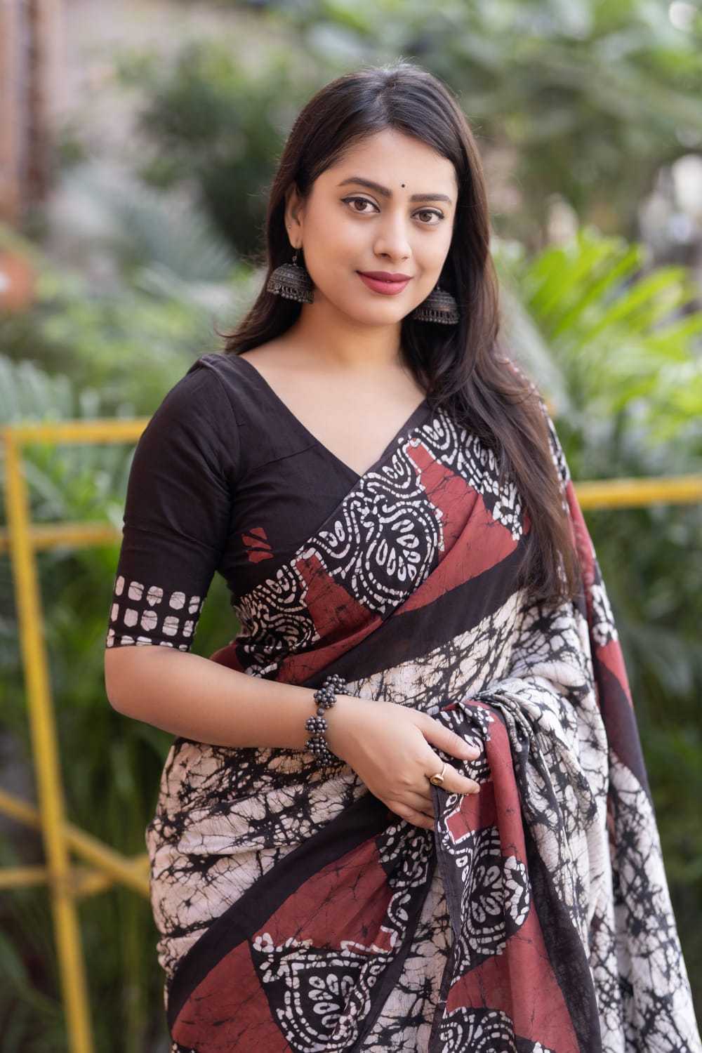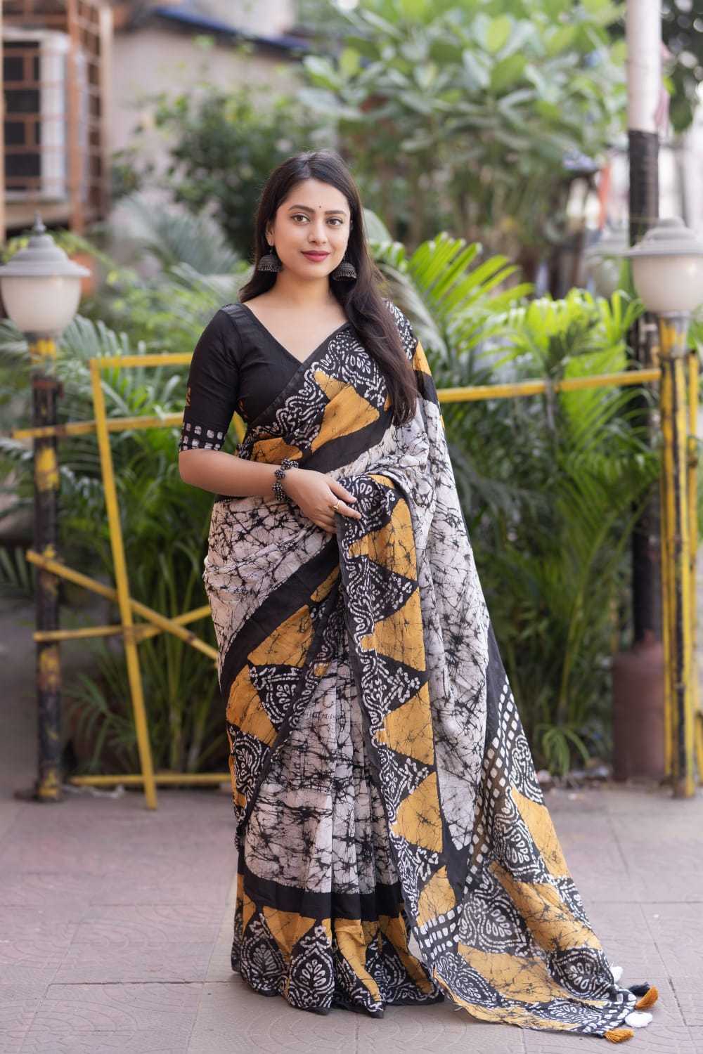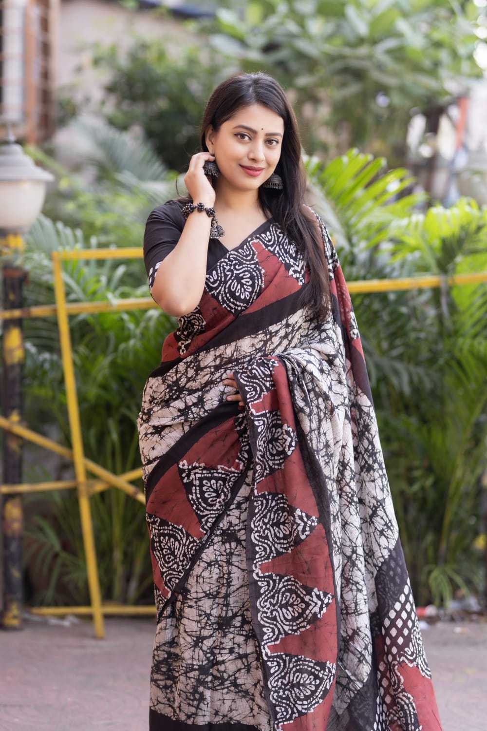 pr kc 207 handblock batik print chanderi cotton saree for women