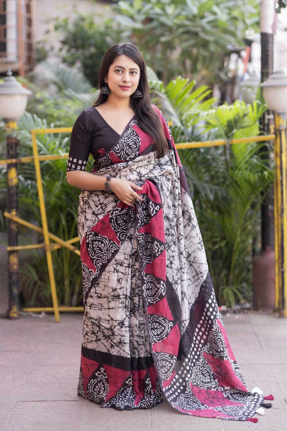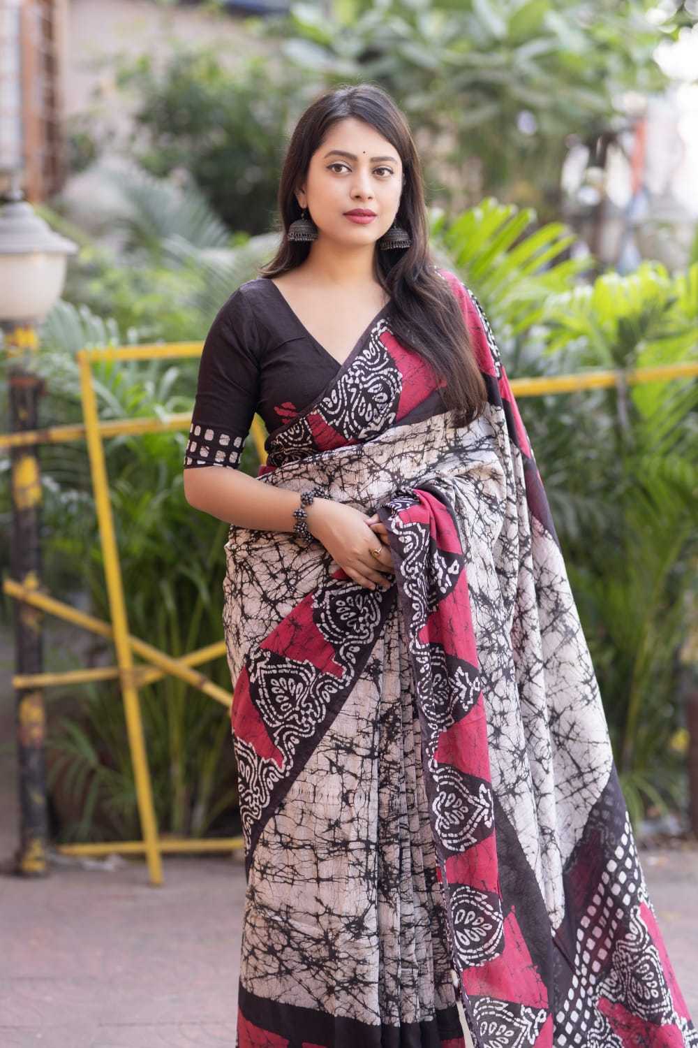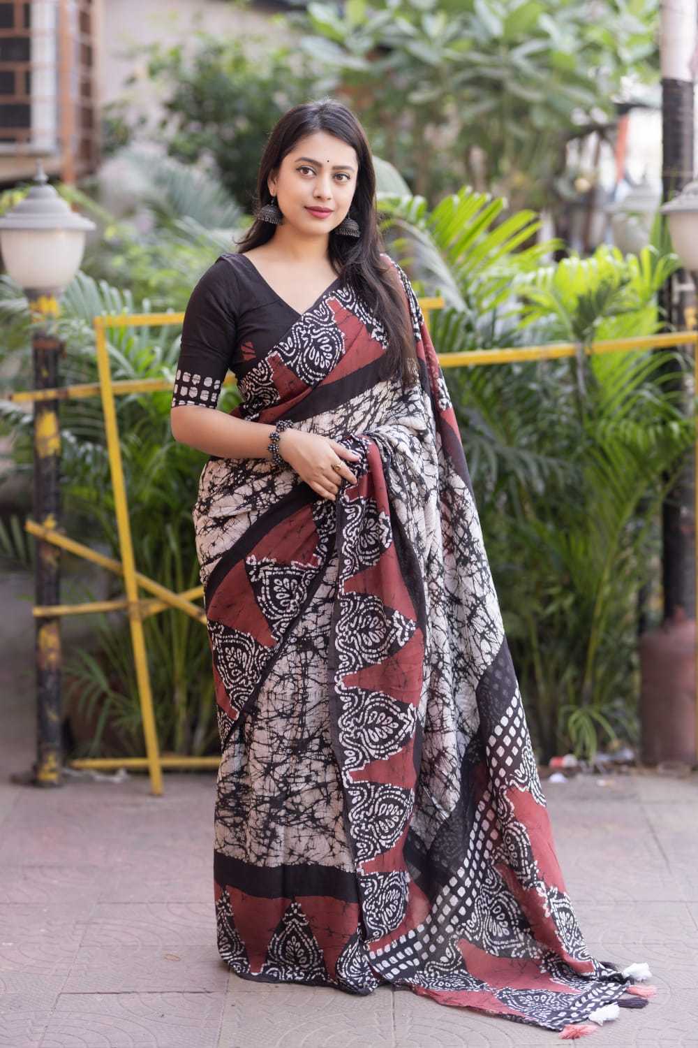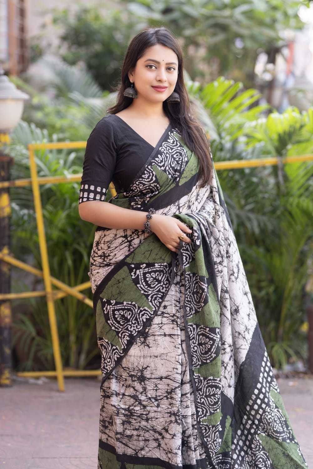 pr kc 207 handblock batik print chanderi cotton saree for women