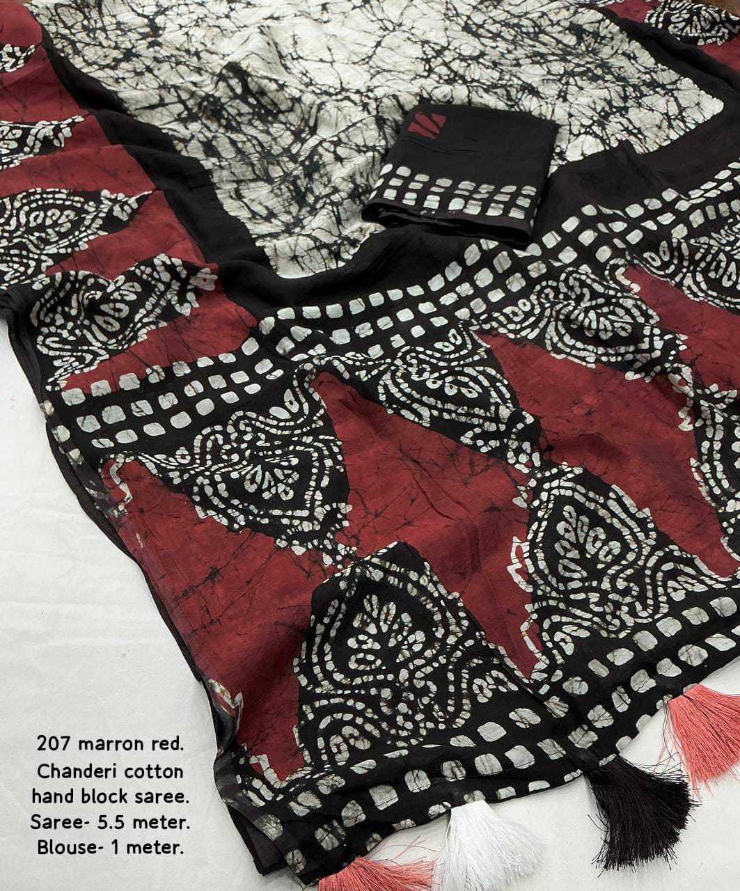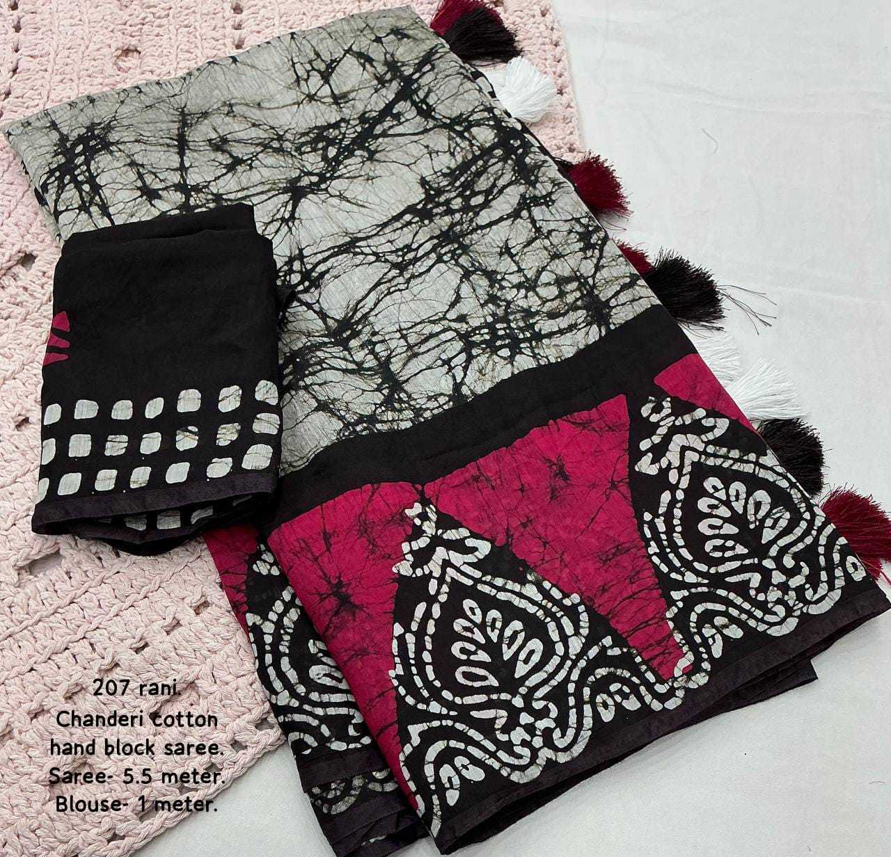 new arrivals New premium shibori batik saree HANDBLOCK BATIK. KC- 207 quality- soft pure chanderi cotton saree . Tye and dye shibori with handblock batik prints. Cotton tassles on pallu. Blouse- pure chanderi cotton hand block blouse. Rate - 1400+ship. Top trusted quality |
