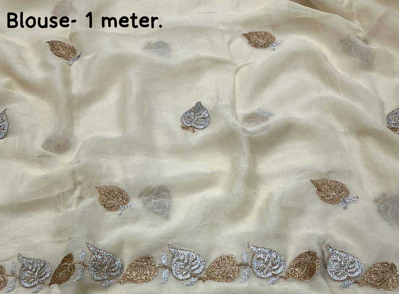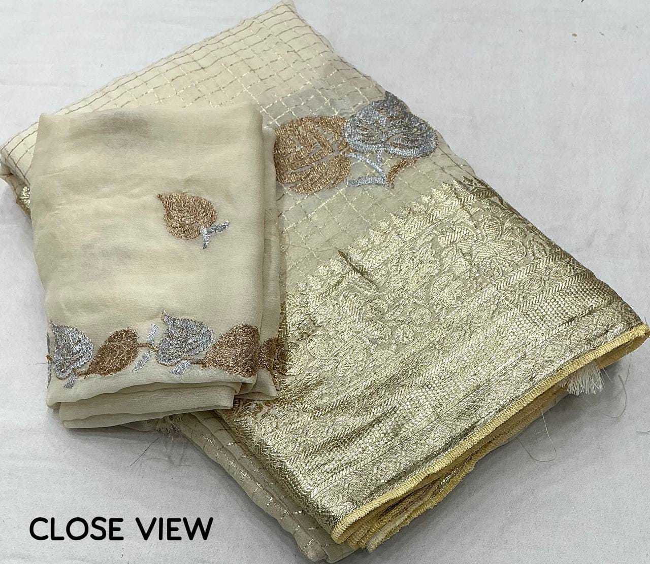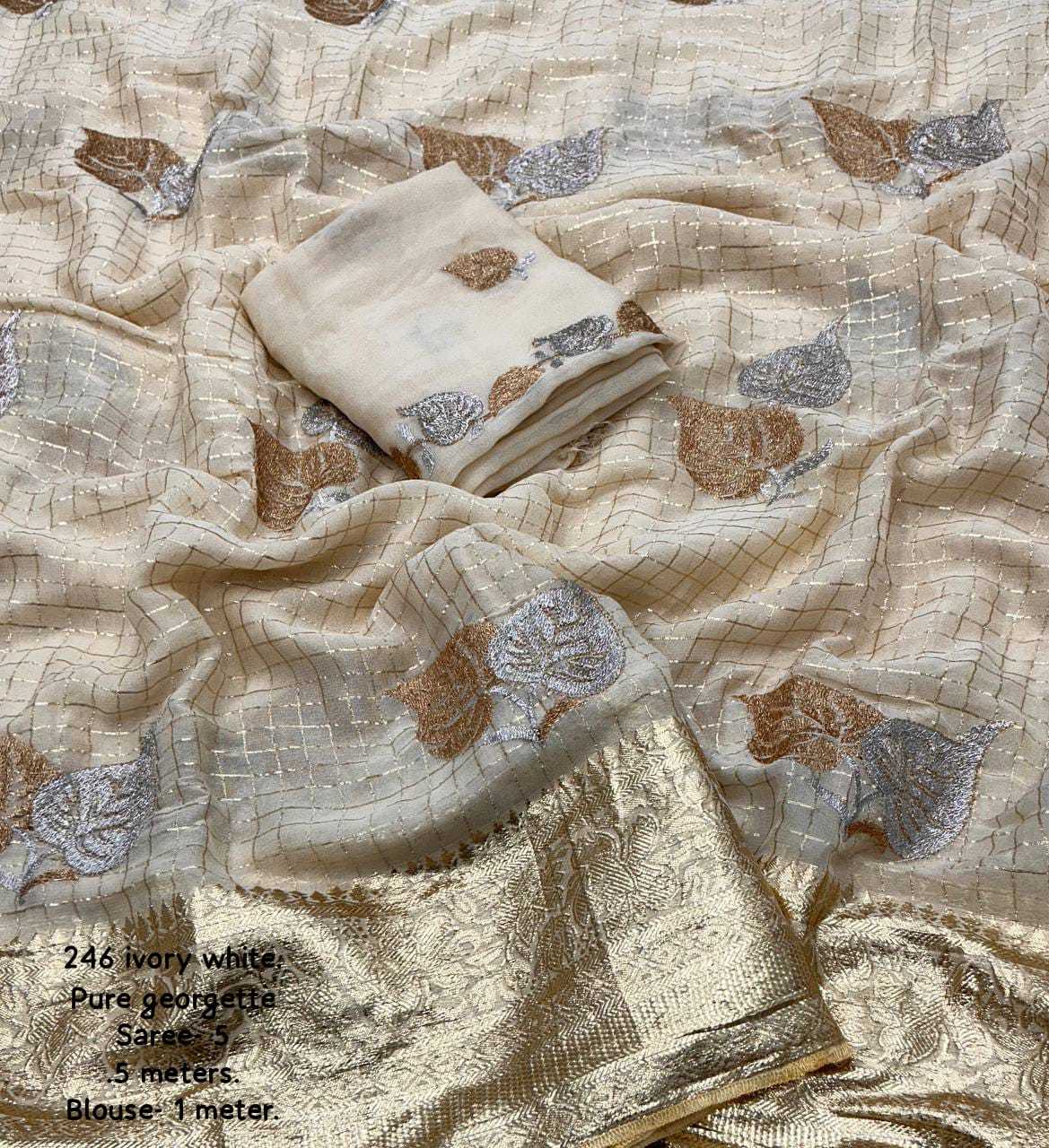pr kc 246 georgette leaf silver & gold zari embroidery saree online