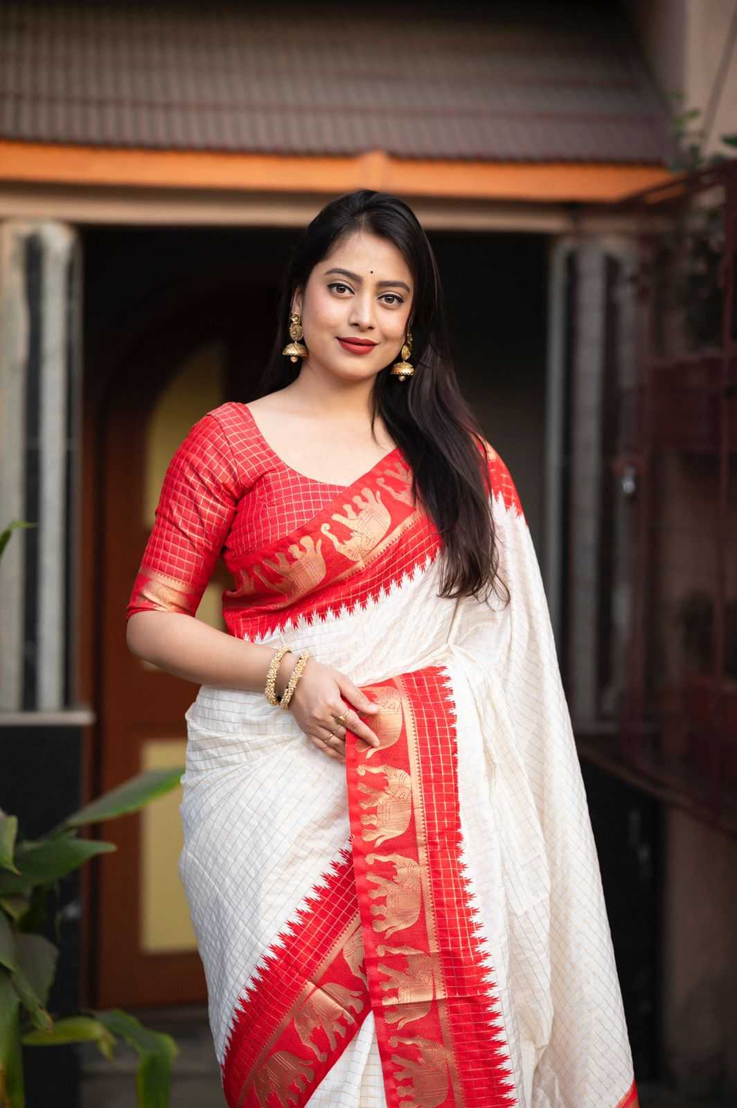 pr kc 25 elephanta chex unique colours silk zari woven saree supplier