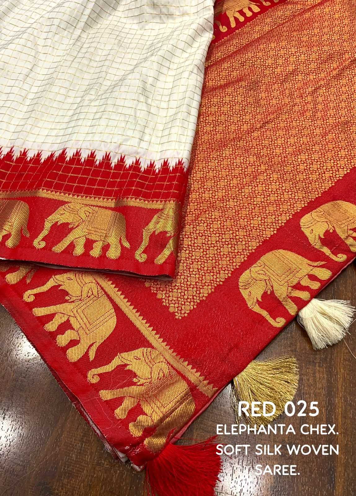 new arrivals New chex woven catalog KC - 25 Quality- sift silk saree with zari woven chex and with elephant border and rich pallu. Cotton tasslels on pallu. Blouse- perfectly matched runing blouse. Rate- 1099/- +ship Top trusted quality |