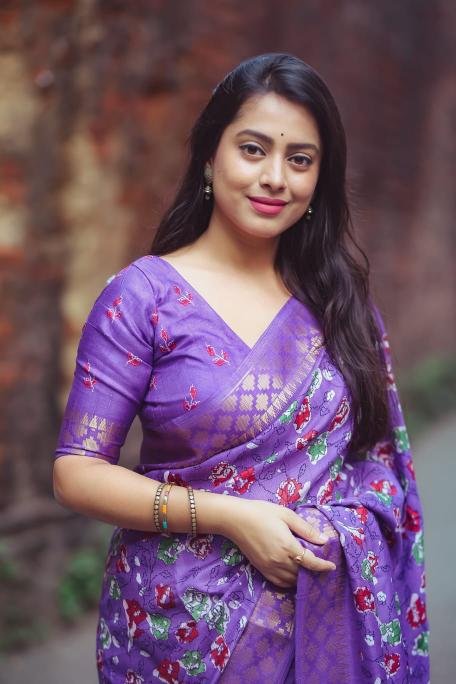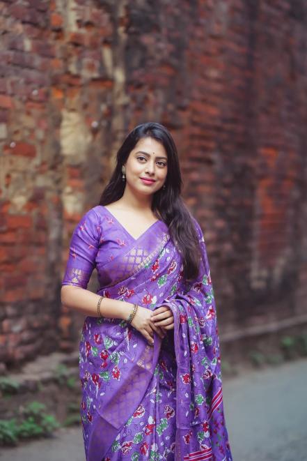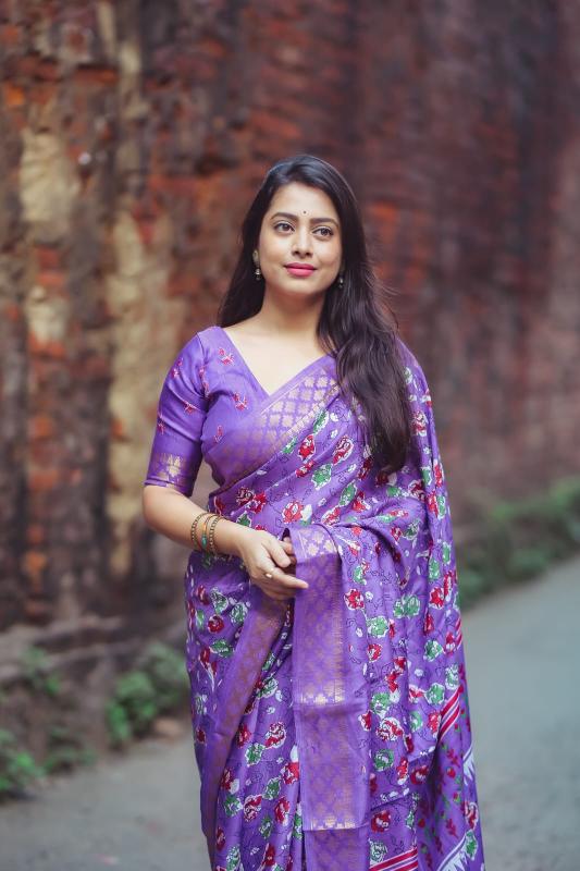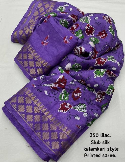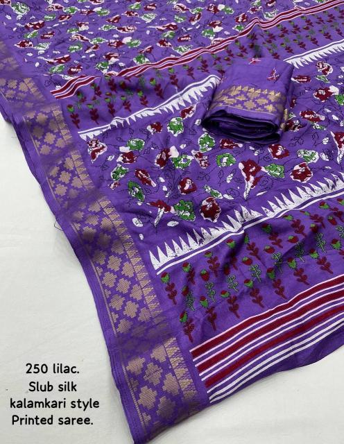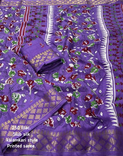 new arrivals New lilac sover printed saree. Single color edition. KC-250 HANDLOOM KALAMKARI. quality- soft silk kalamkari style slub woven saree with zari woven border. Blouse- running slub silk printed blouse. Rate - 670+ship Top trusted quality |