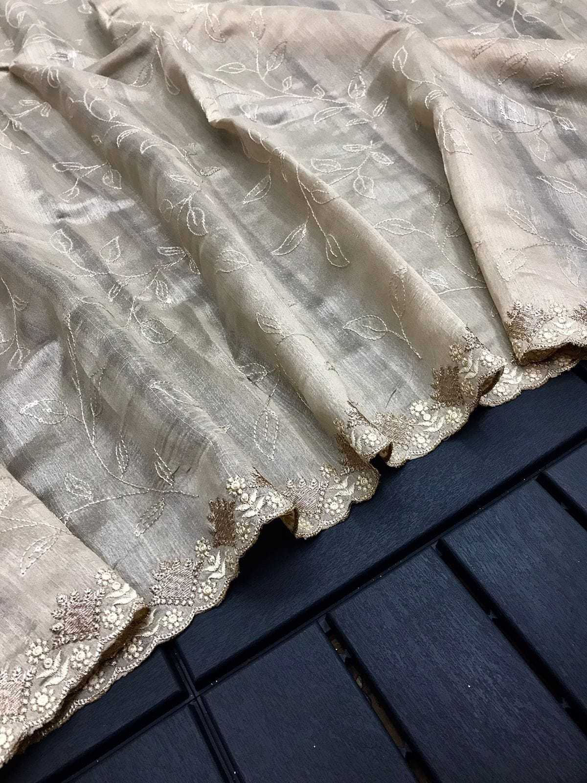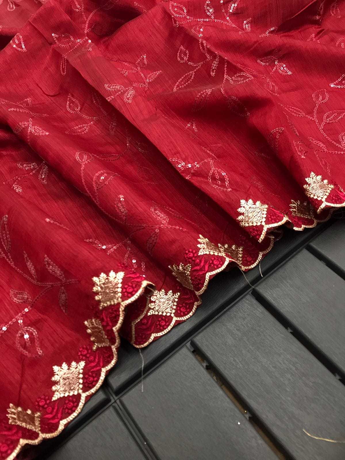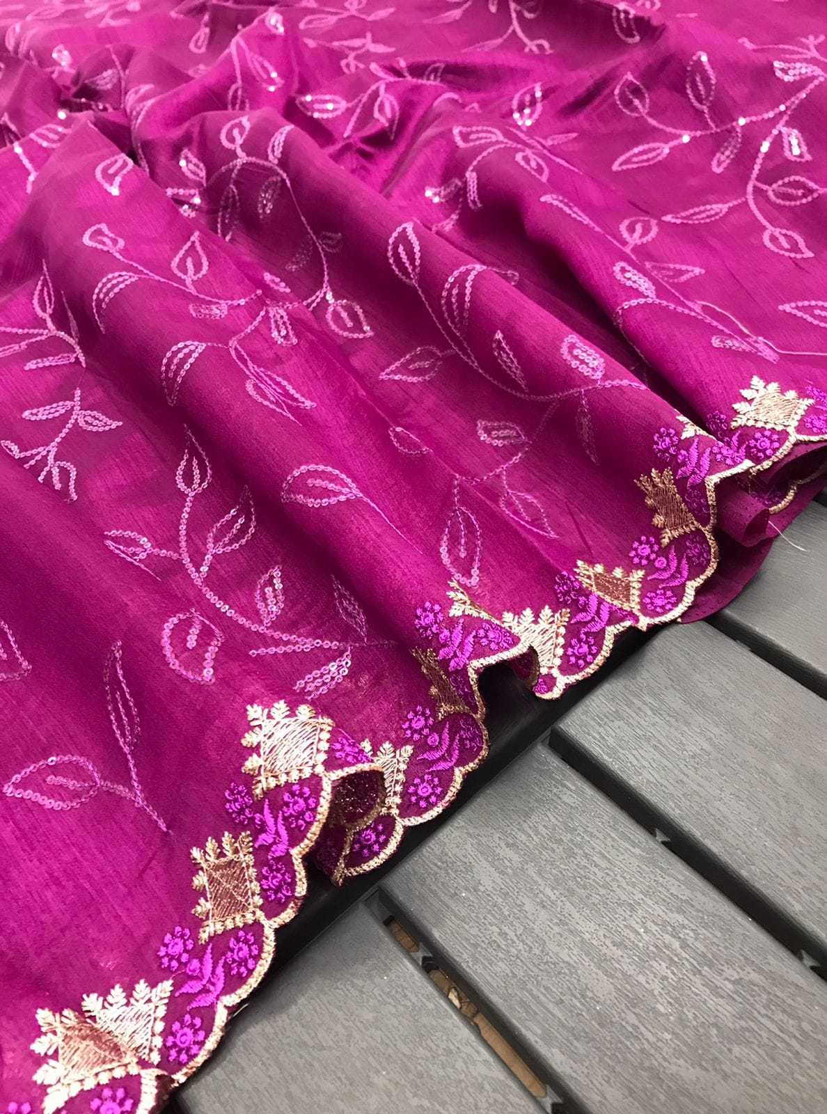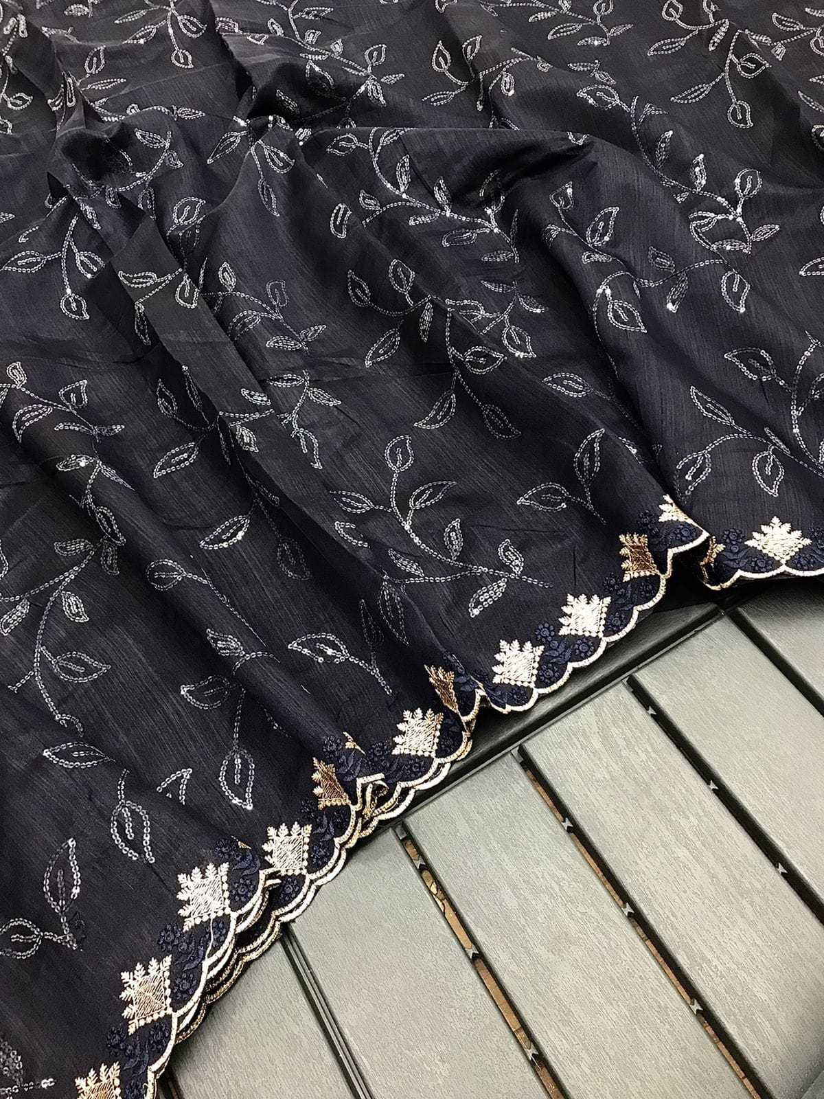 New Catalogue ❣️❣️❣️ KC-3001 Pure Ruhi Silk Saree with all over jal work of water sequence with cutwork fancy border and fancy embroidery running blouse piece. Saree is good for party wear and as well normal regular wear. Price :- 1249/- Ready stock. |