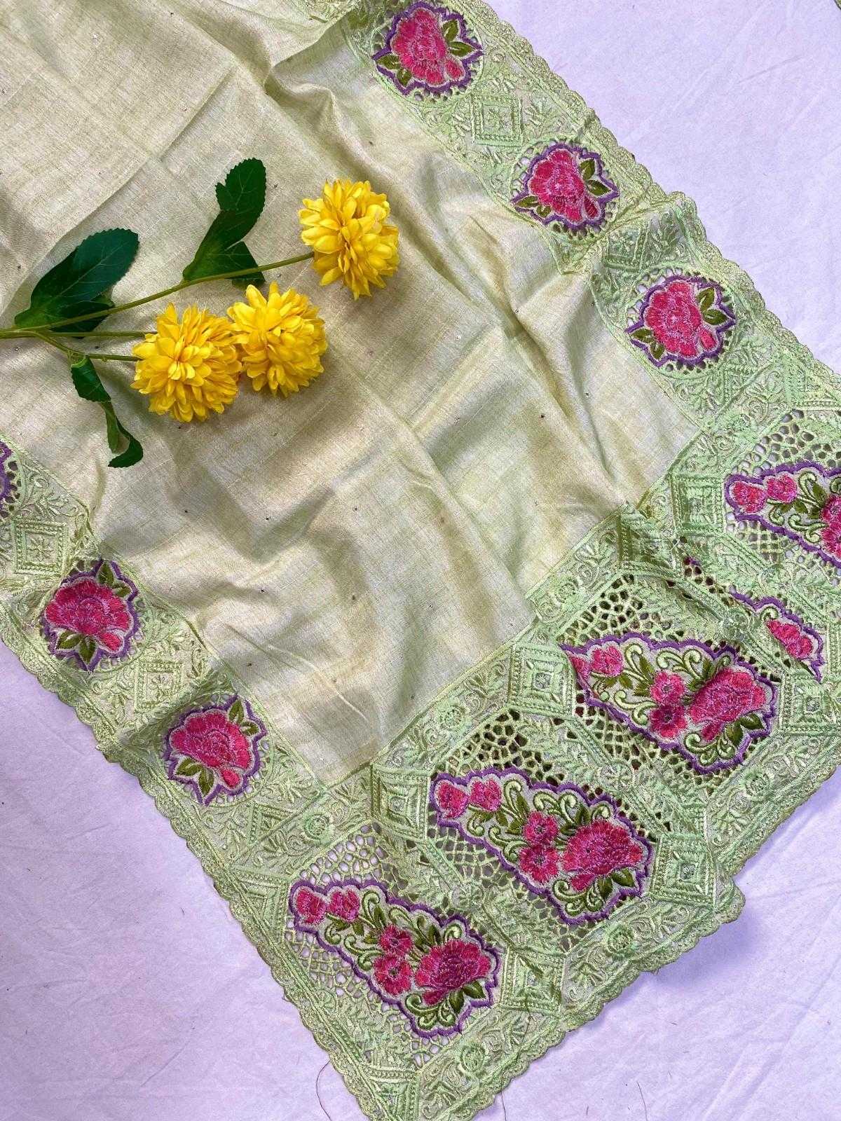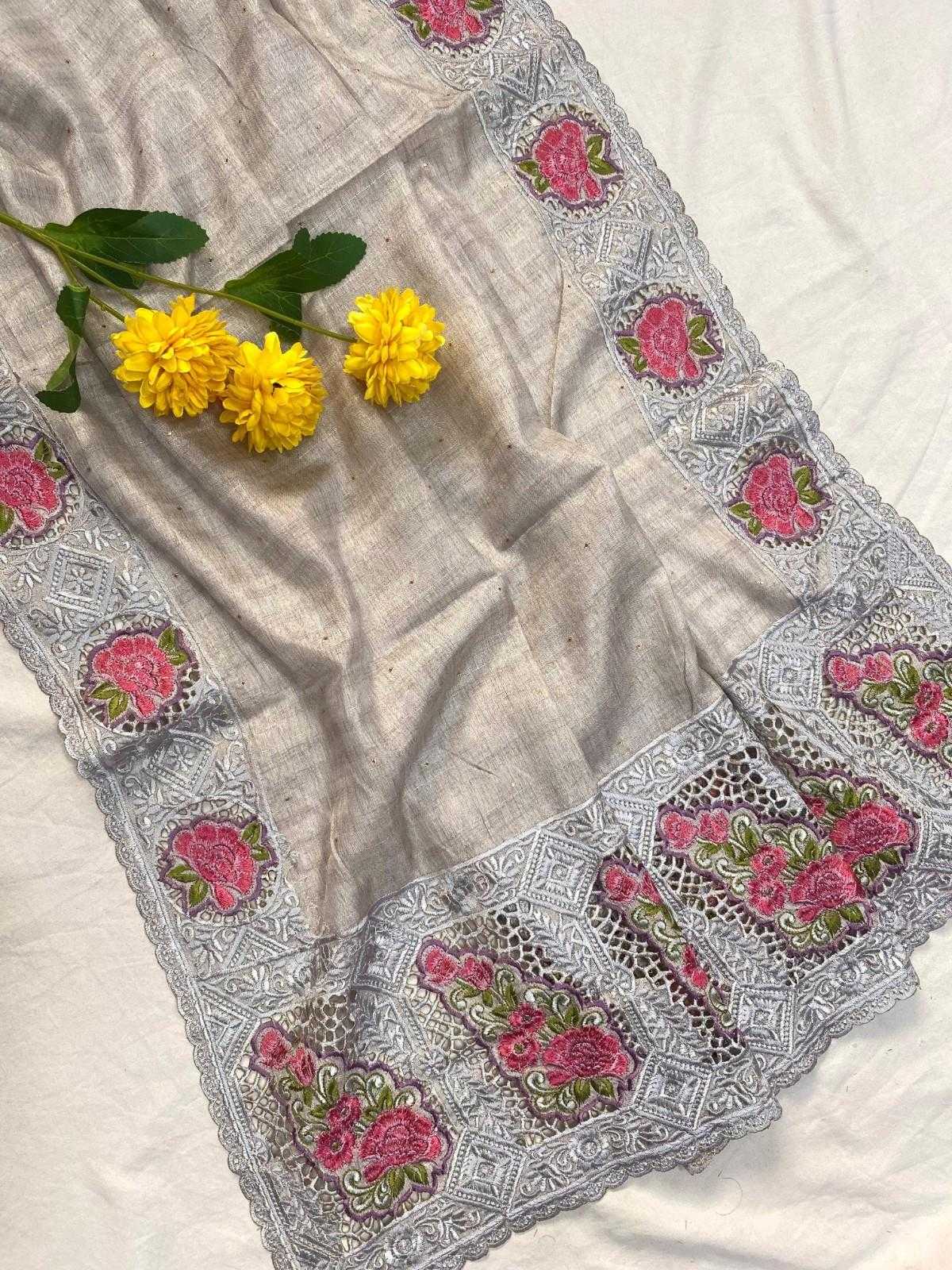 New Catalogue ❣️❣️❣️ KC-3014 Description - soft tussar silk sarees with super fine embroidered pattern with cutwork, contrast embroidered pallu and border with running blouse. Blouse :- as shown in videos ; running blouse. 😍 Price :- 1699/- 😍 |