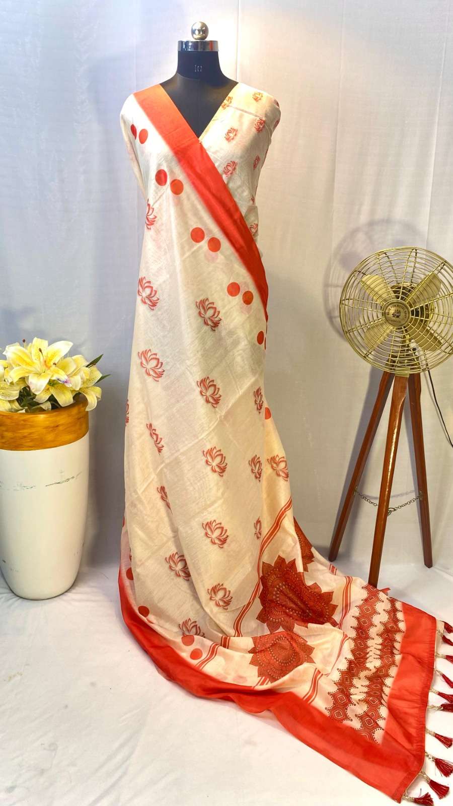 New Catalogue 😍 🥻👉🏻KC-3016 Description - Pure chanderi sarees with digital print, white-red design and tassels over the saree. 👉🏻 Highlight - Intricate printed contrast pallu. 😍. 👉🏻 899/- |
