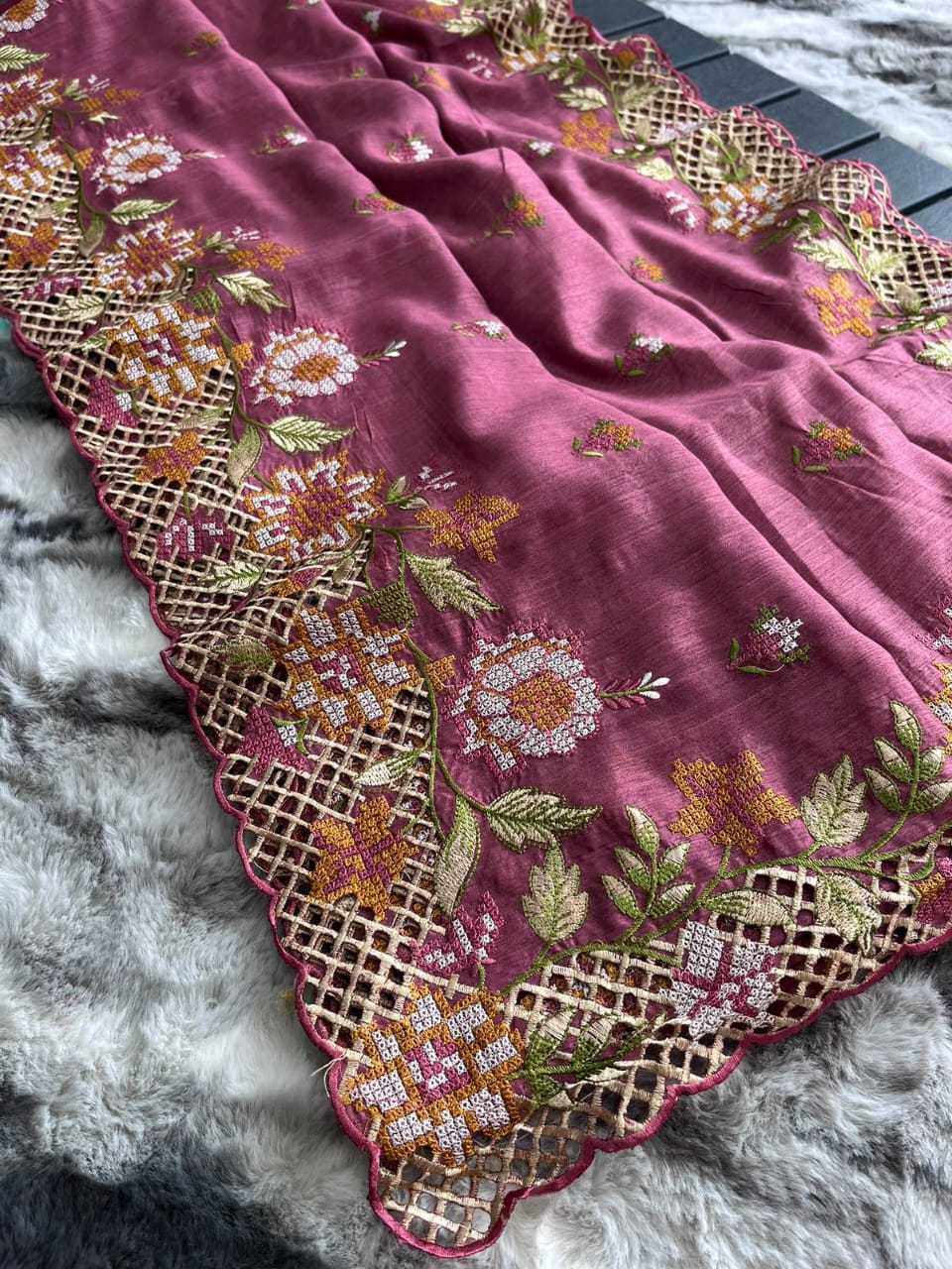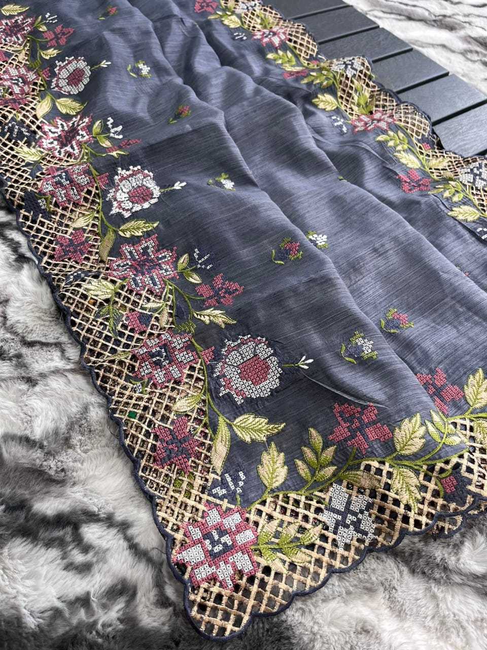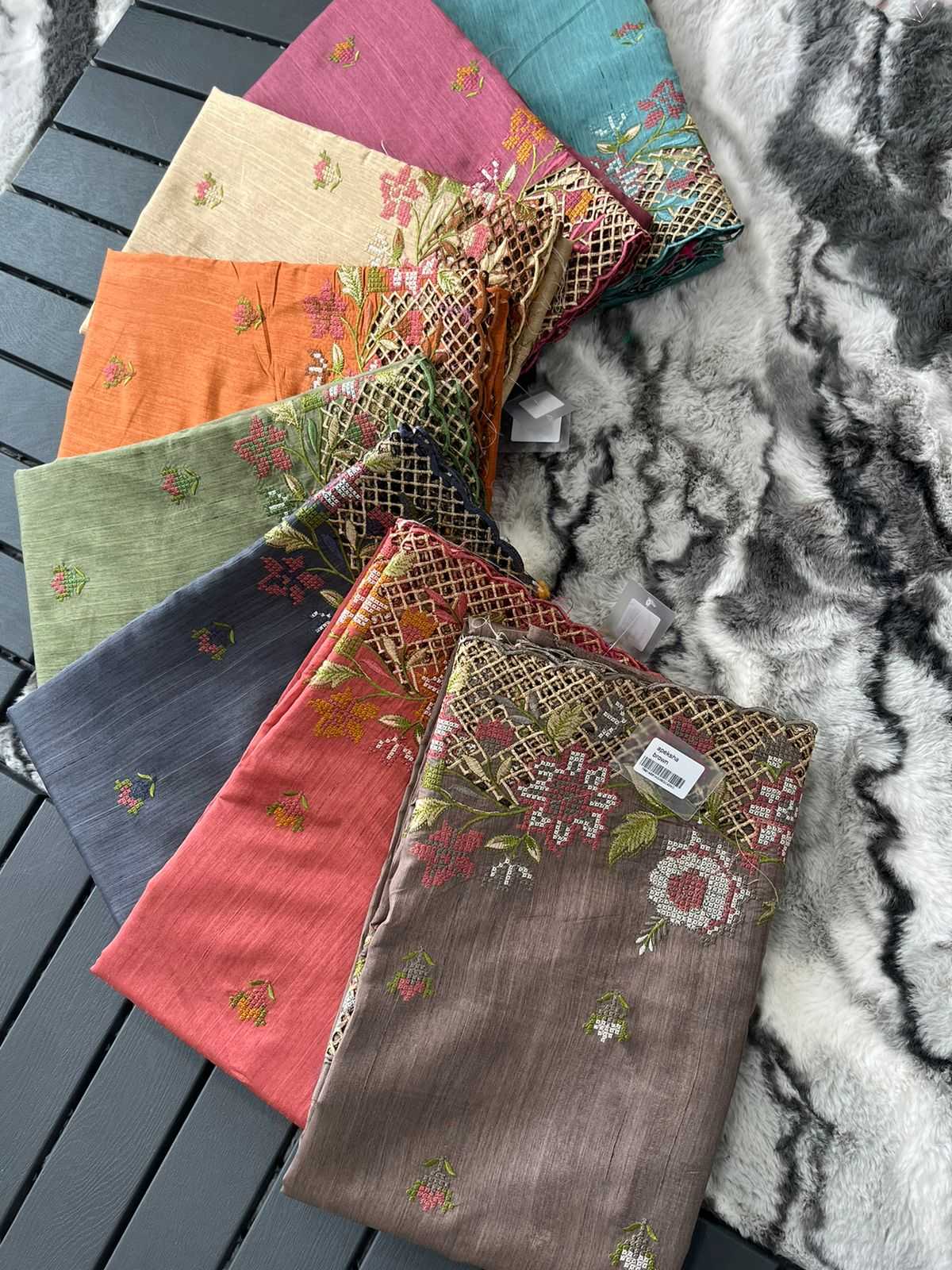 New Catalogue ❣️❣️❣️ 😍Exclusive range of product.😍 KC-3018 Pure marks silk saree with all over beautiful contrast embroidery work and motifs with cutwork border. Price : 1599/- Ready to ship 🚢🚢🚢 |