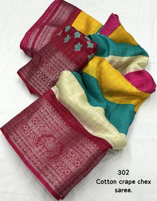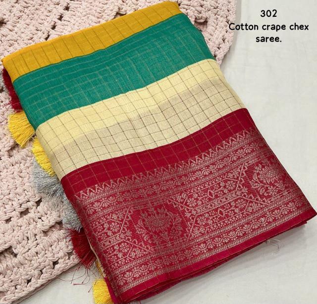 pr kc 302 unique colours cotton crape chex new saree design 2025