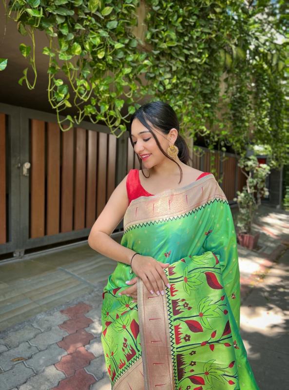 FRESH ARRIVAL❤️ KC-3053 Pure banarasi paithani silk saree with resham weaved zari and 12 inch border with meenakari flower designs and contrast border both sides with rich pallu Price :- 1999 |