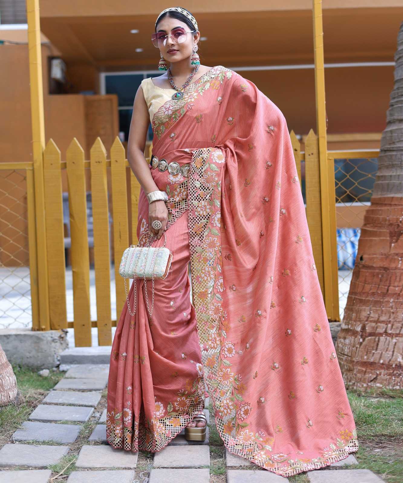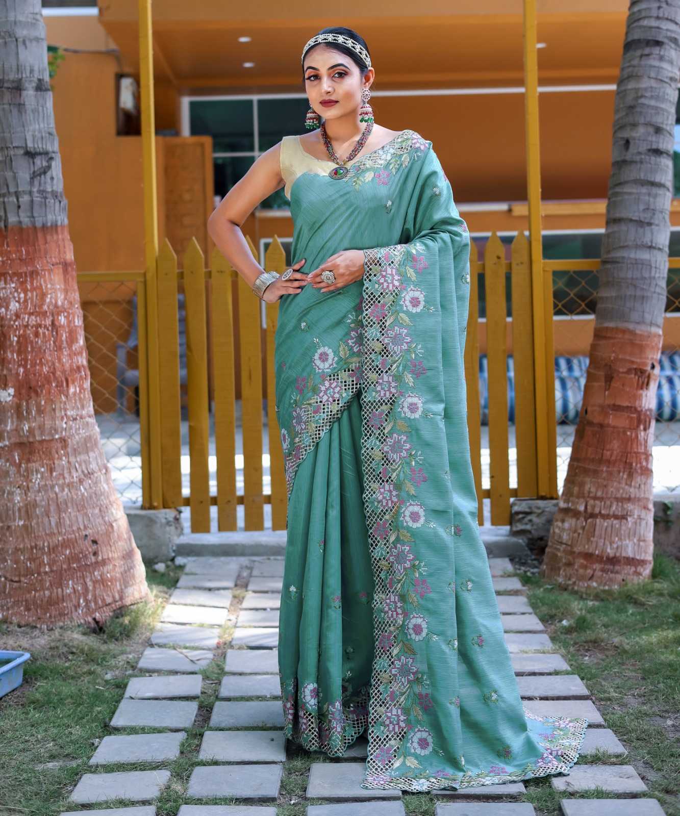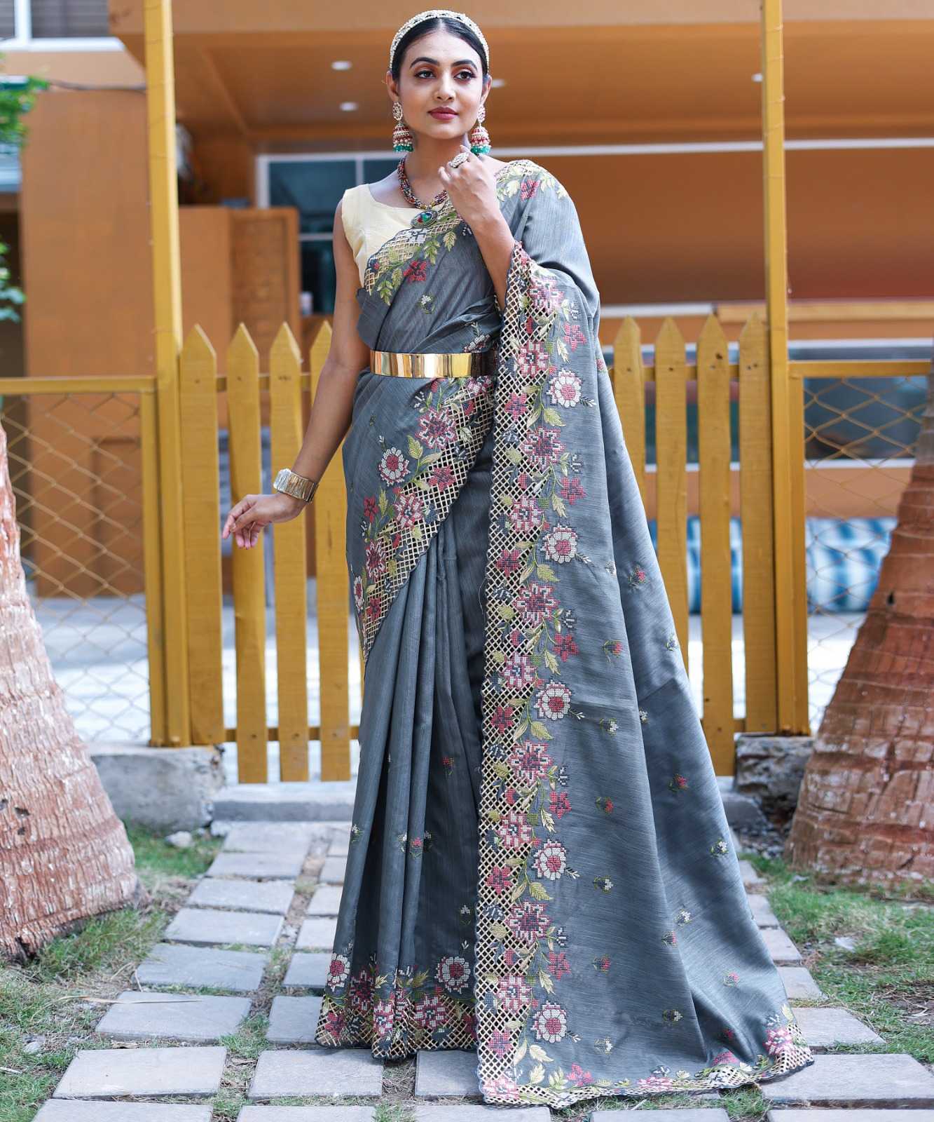 pr kc 3046 beautiful embroidery work stylish silk saree