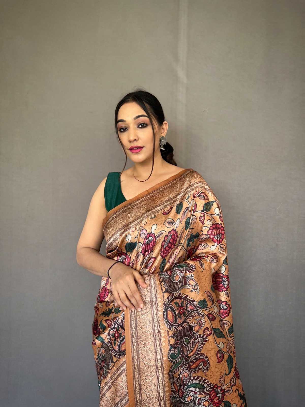 pr kc 3048 kalamkari print soft silk designer saree collection