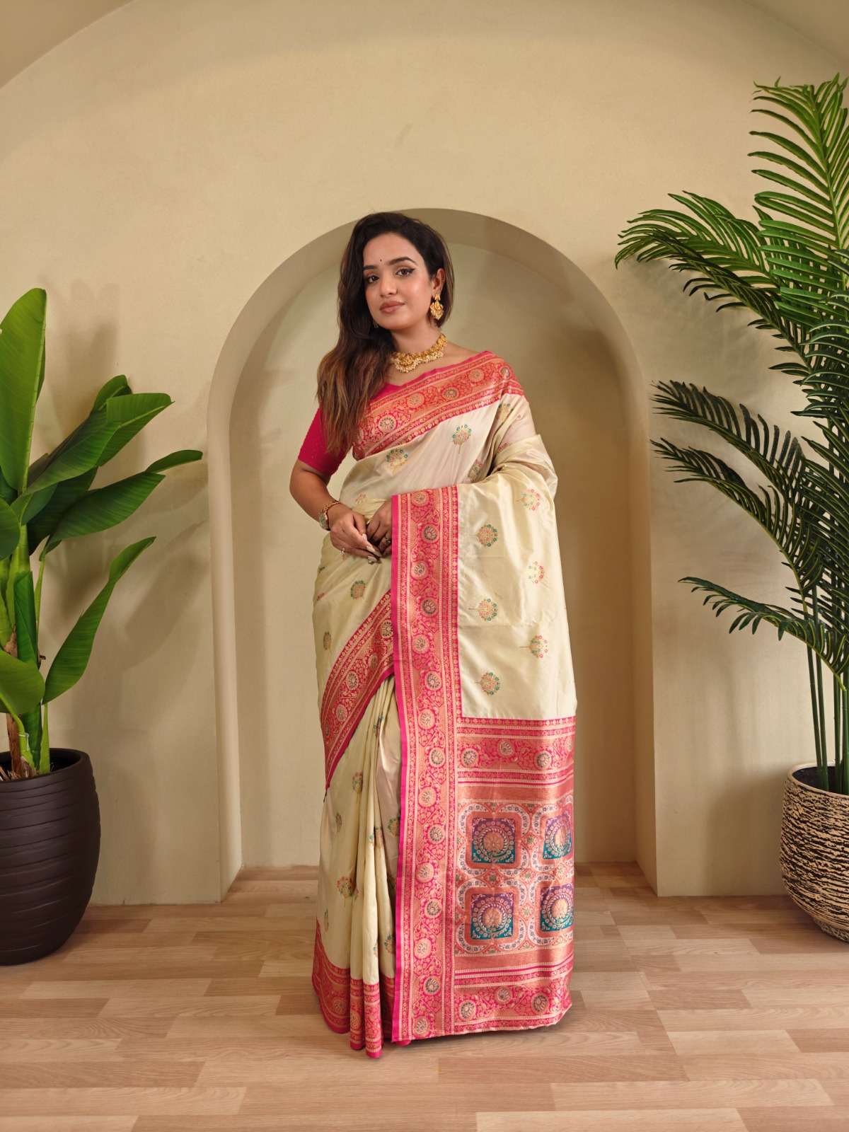 FRESH ARRIVAL❤ KC- 3087 Exquisite and premium Weaving benarasi sarees. 👉🏻🥻Description - Premium benarasi sarees with intricate color thread weaving design , rich weaving pallu. 👉🏻Teamed with contrast blouse Price : 1699/- |