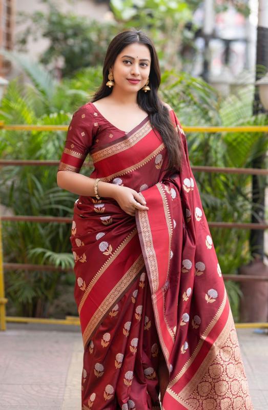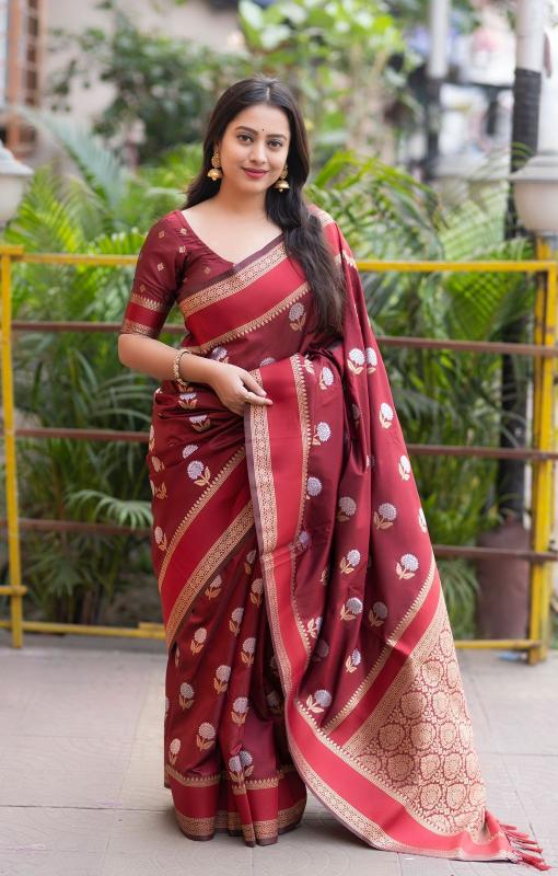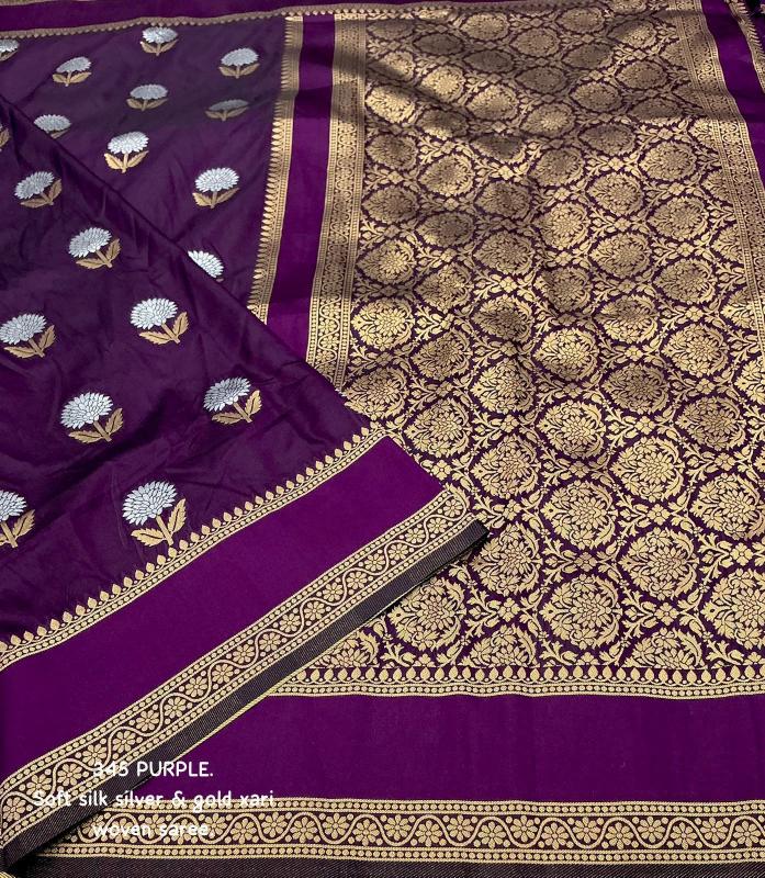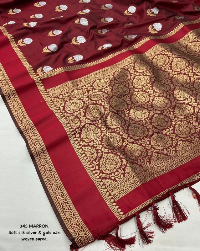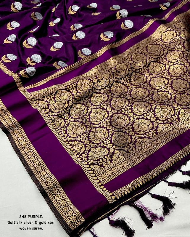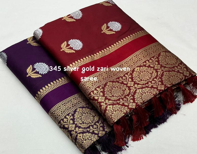 new arrivals New fancy zari woven soft silk saree Soft silk saree with silver and gold zari woven flower butta and bentex border. Tassels on pallu. Running soft silk zari woven butti blouse. Rate - 1400/- +ship. Top trusted quality |