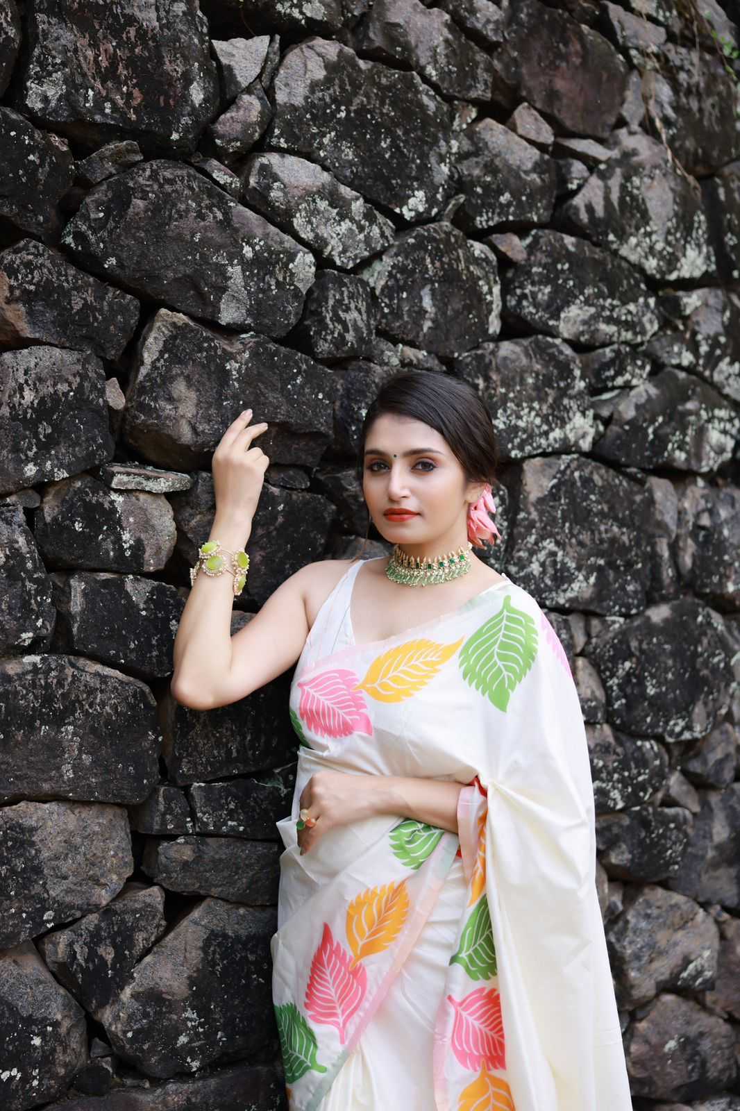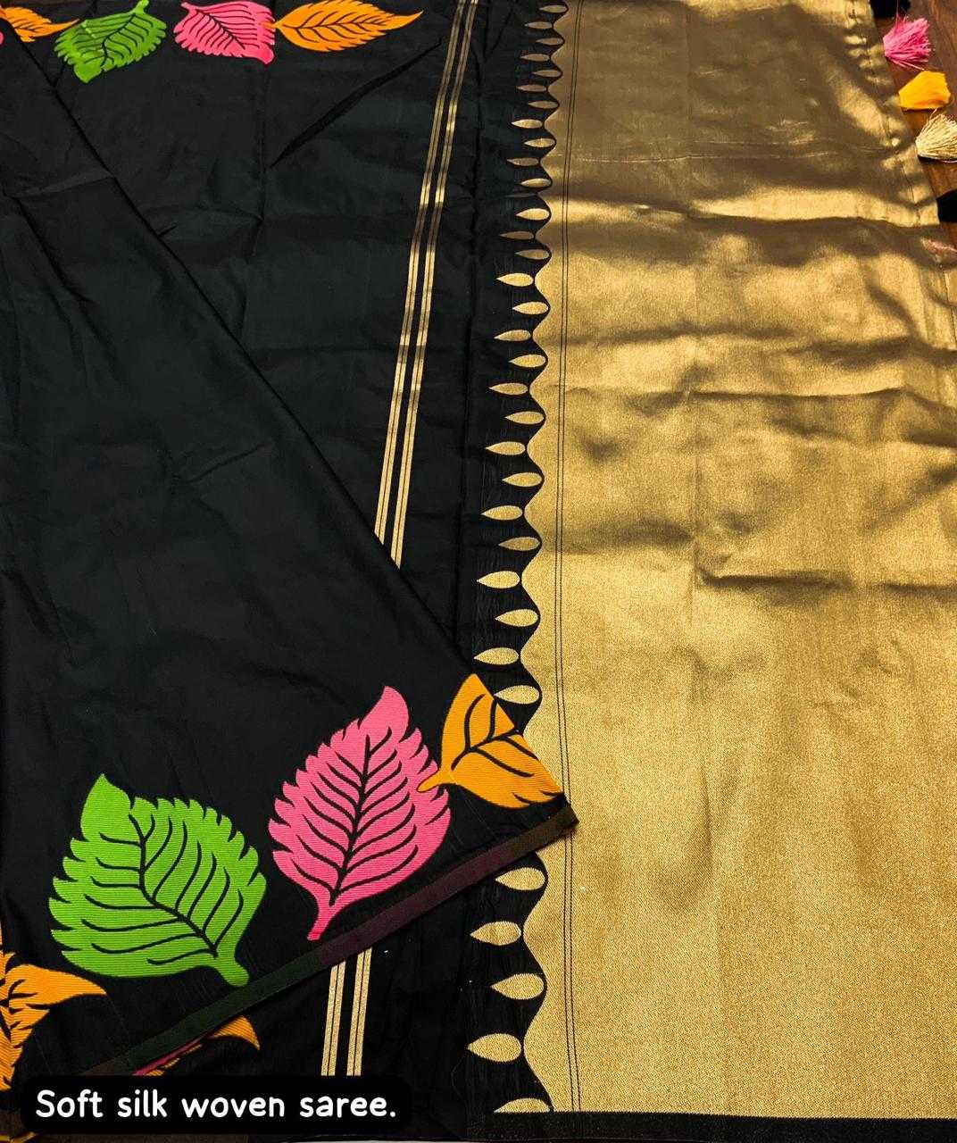 best seller New woven saree catalg KC-4007 beauty leaf Quality- soft silk multicolour leaf woven design with zari woven pallu. Fancy cotton tassels Blouse- running multicolor woven line blouse. Rate- 1100/- |