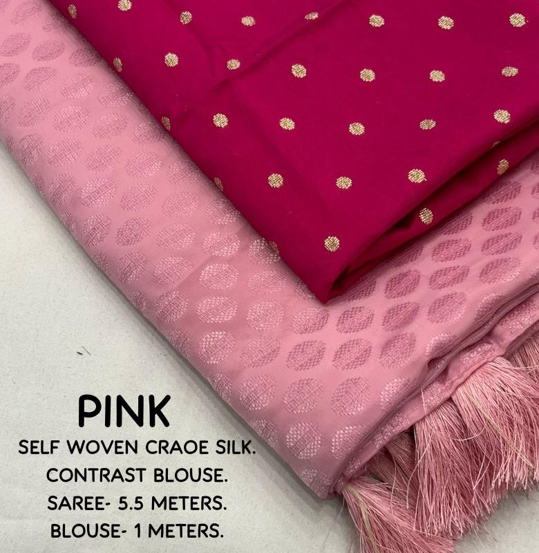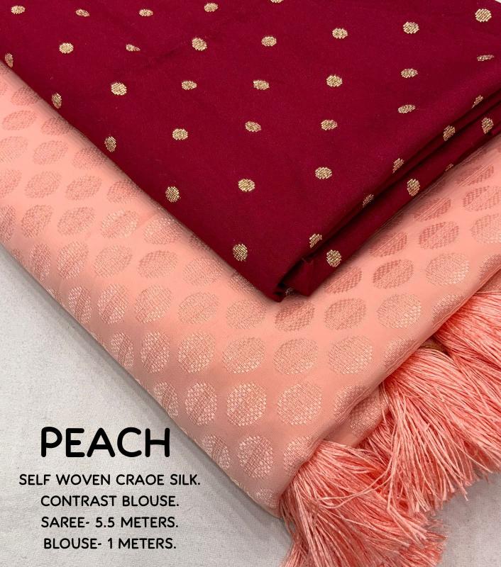 best seller New budget friendly catalog KC- 005 KC- Cadbury crape Quality- soft carpe silk saree with self woven design. Cotton tassels on pallu. Blouse- contrast Chanderi woven butti. Rate- 560/- +ship Top trusted quality |