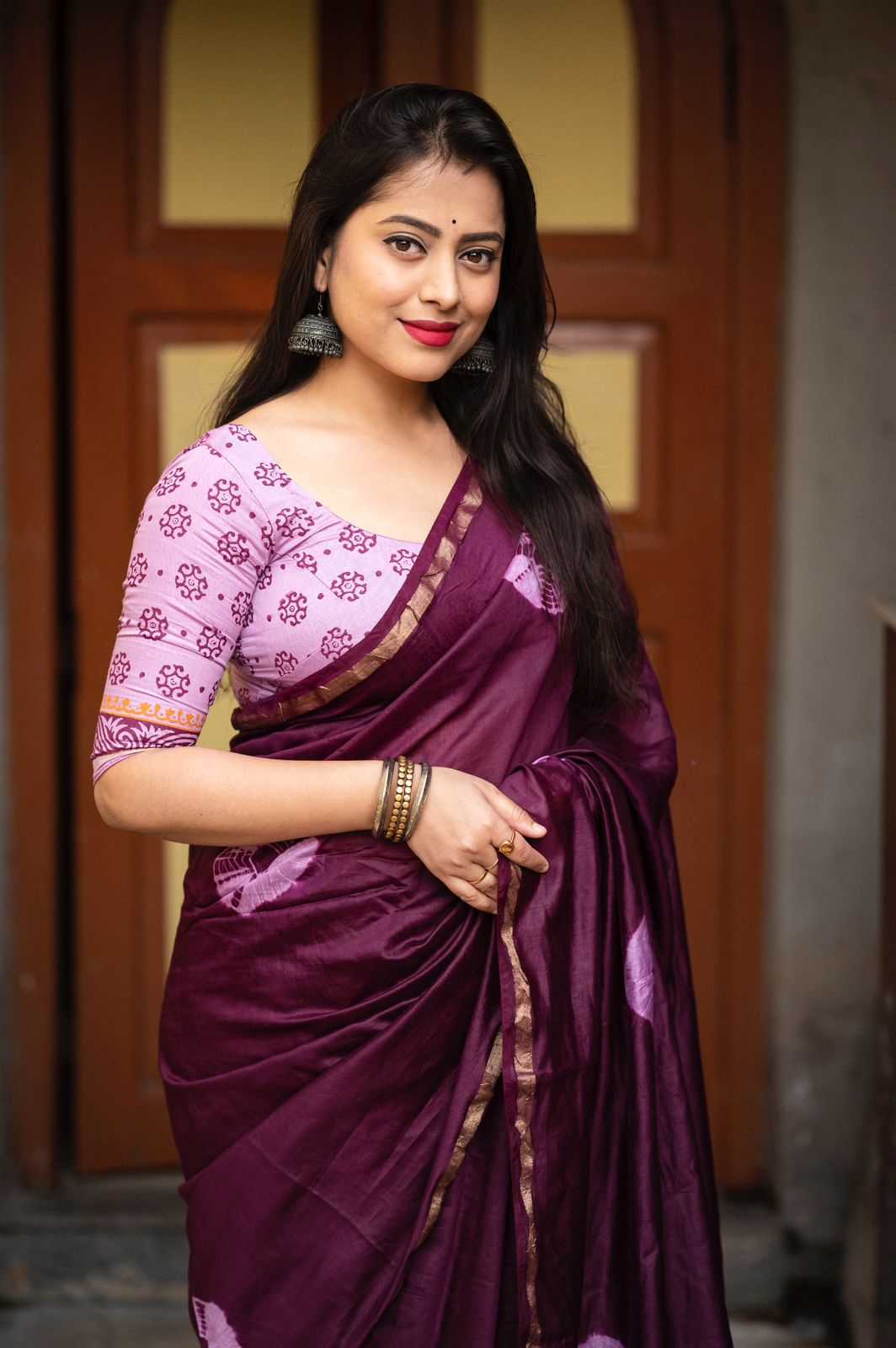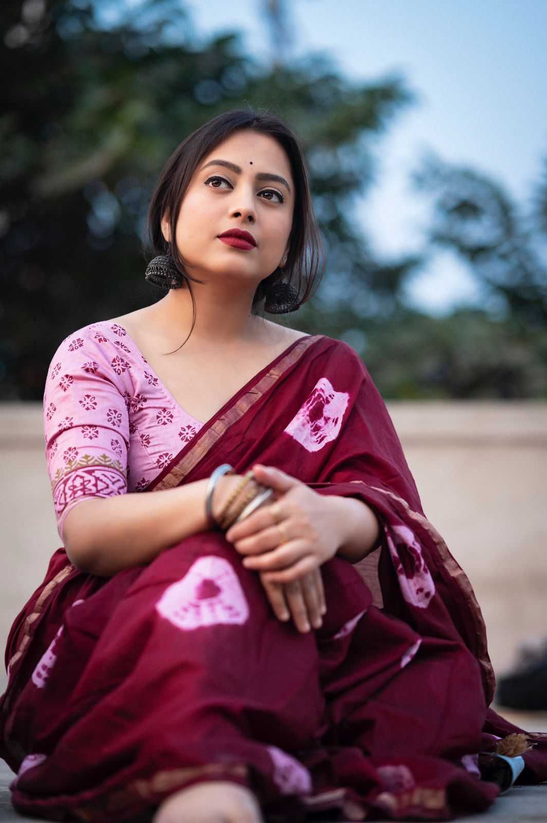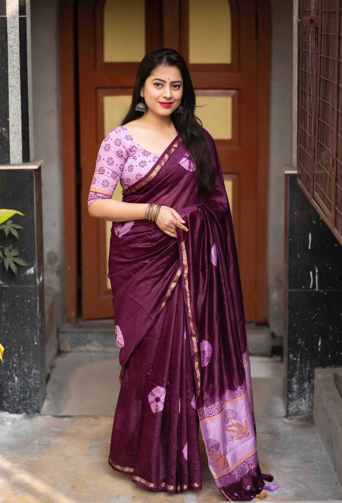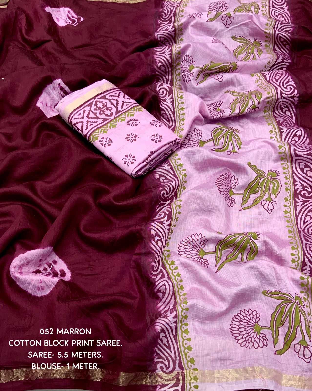 Cotton tassles on pallu. Blouse - pure cotton block print blouse perfectly designed for saree. Rate - 899+ship Top Perimum quality |